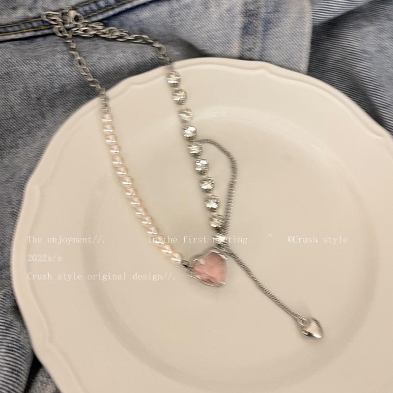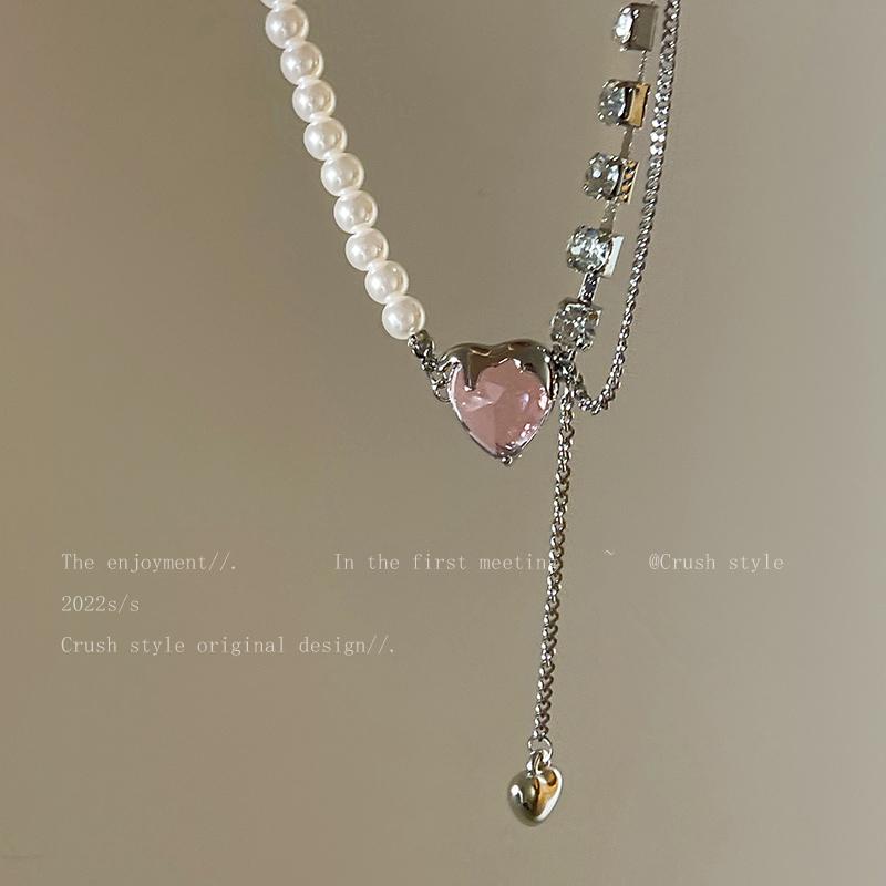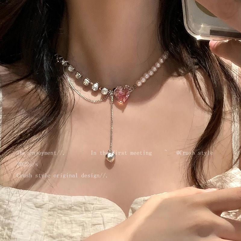 Collar con borlas de circonita y perla de amor para mujer, cadena de clavícula de lujo ligera de verano, accesorios geniales y populares para celebridades de Internet.