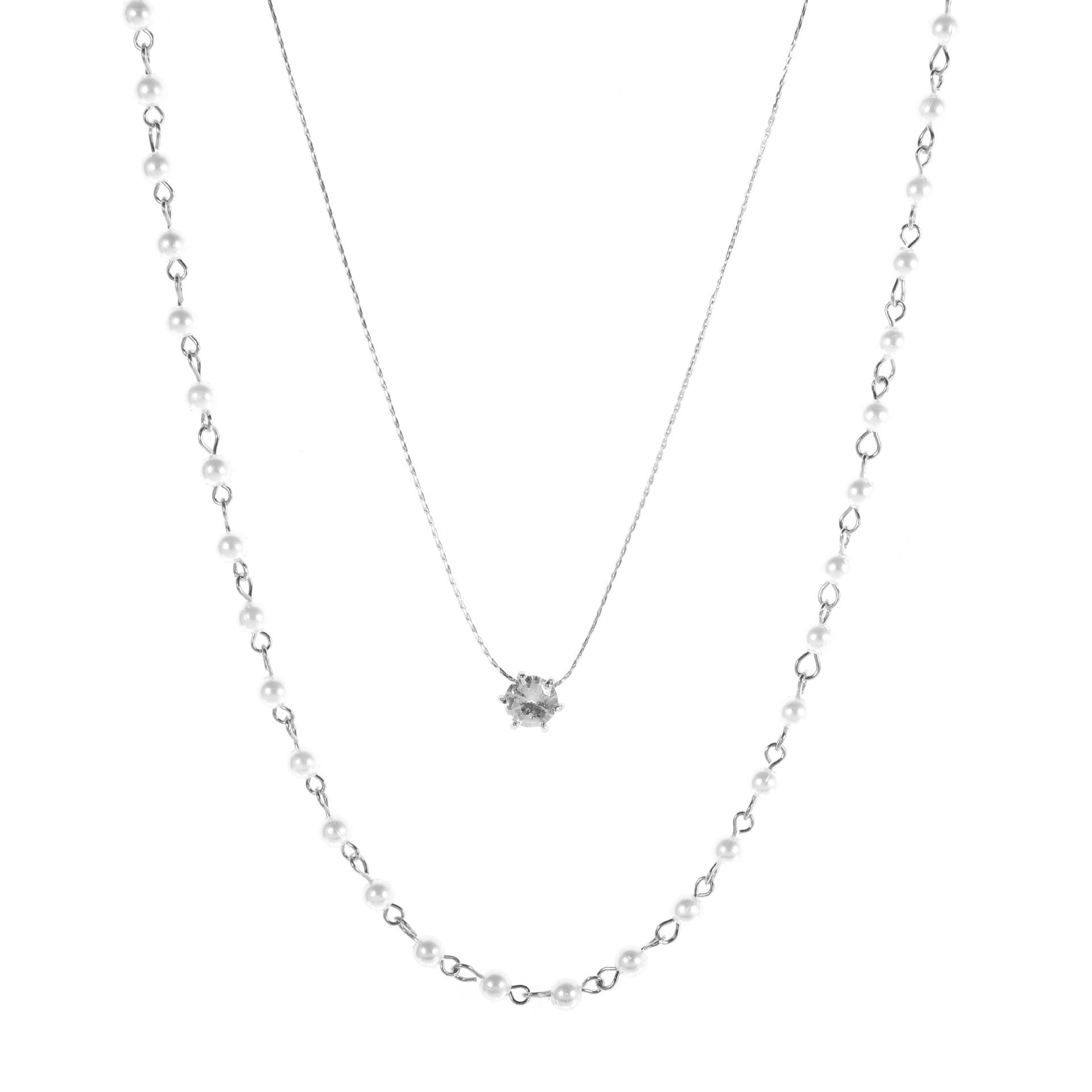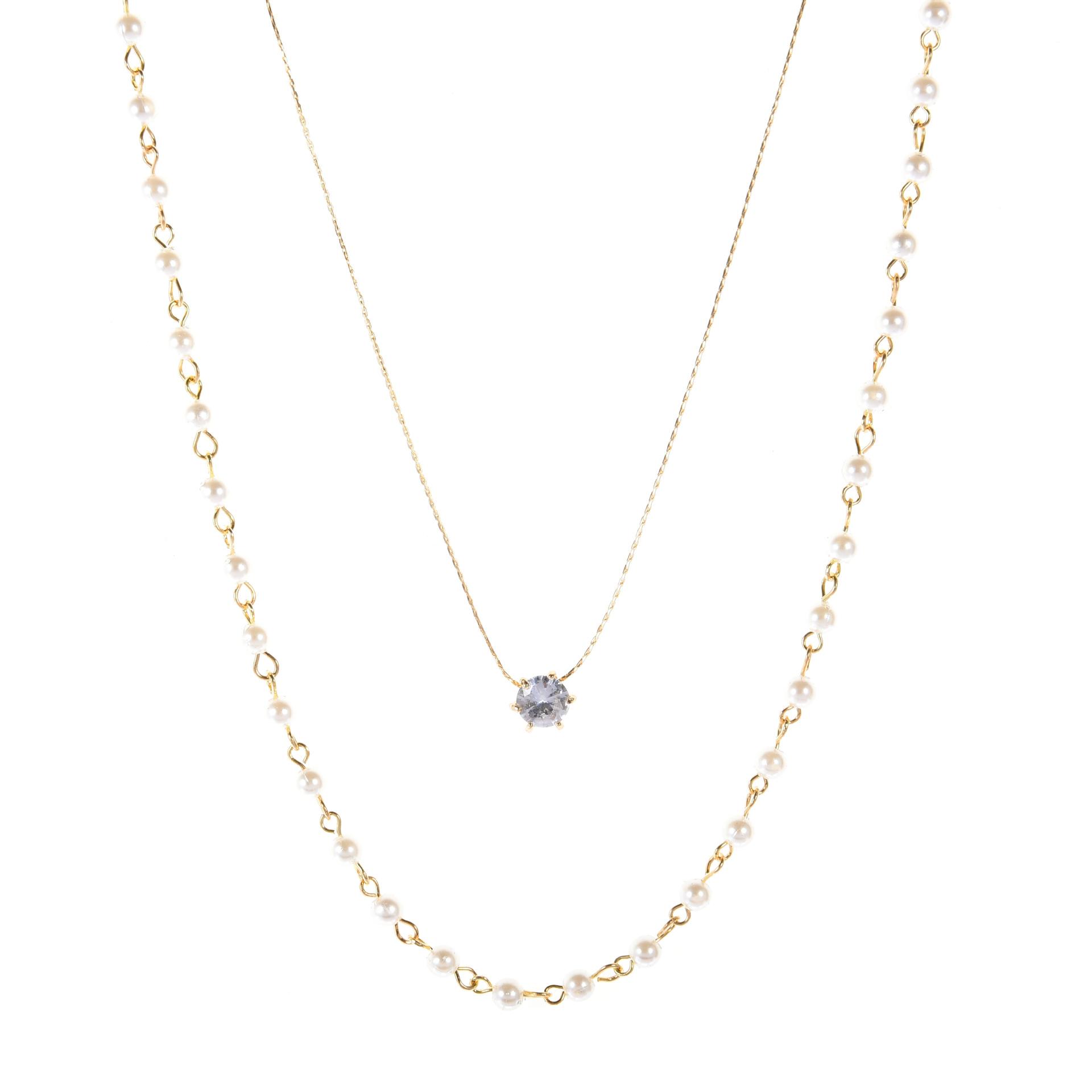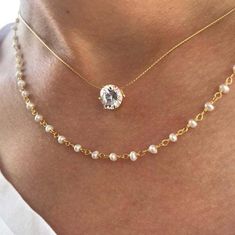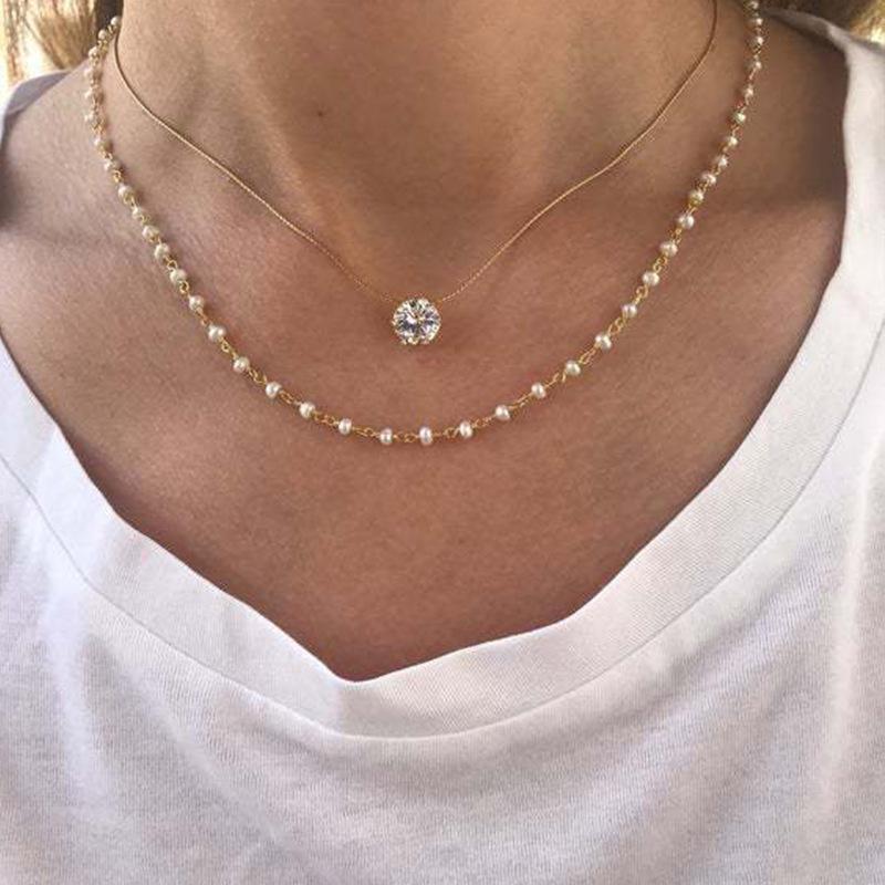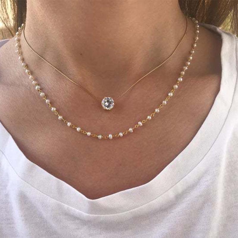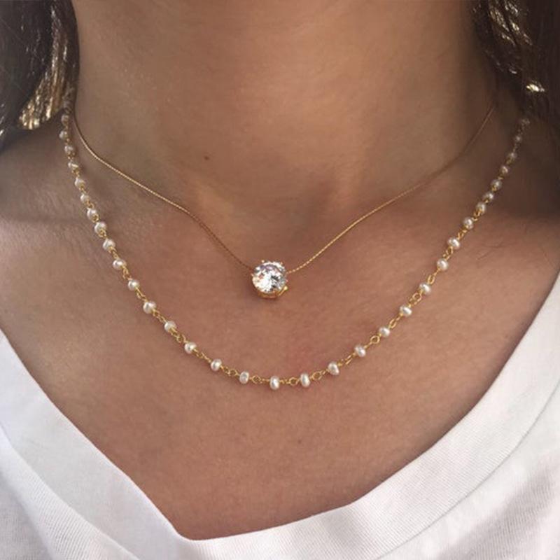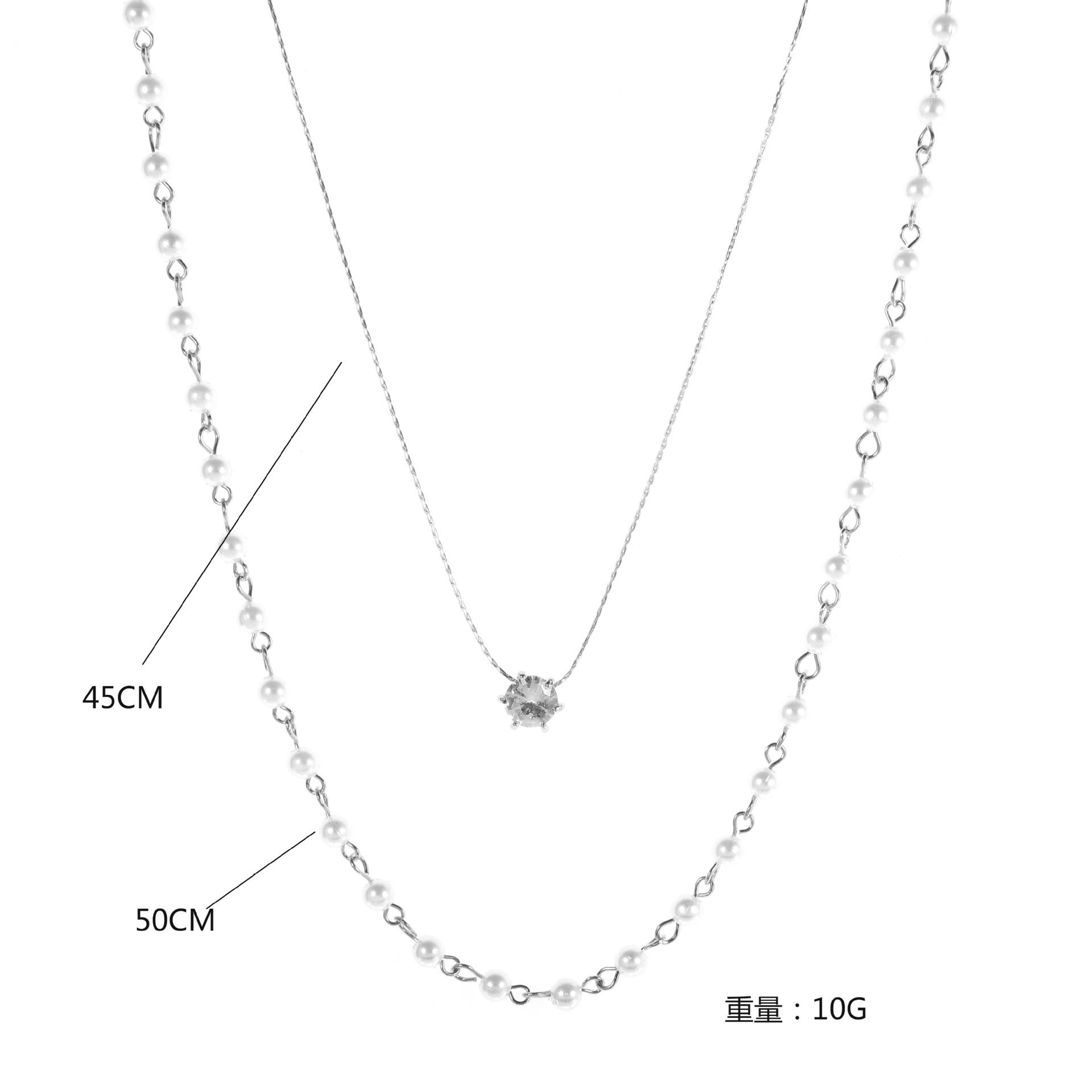 Collar de cadena en capas para mujer con cuentas de perlas de circonita y diamantes con punta de 6 garras transfronterizas de Europa y Estados Unidos