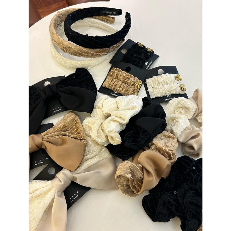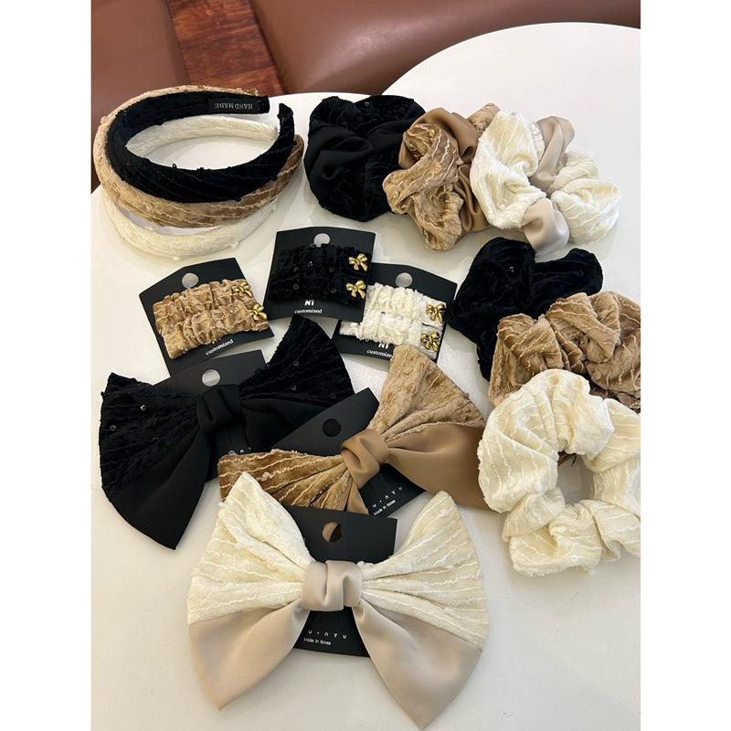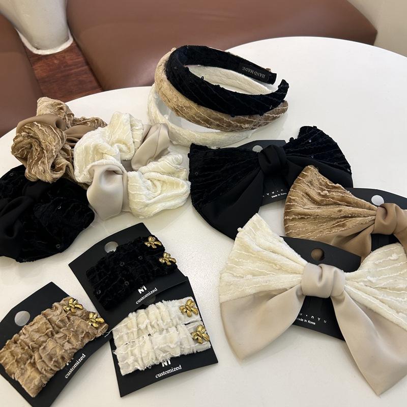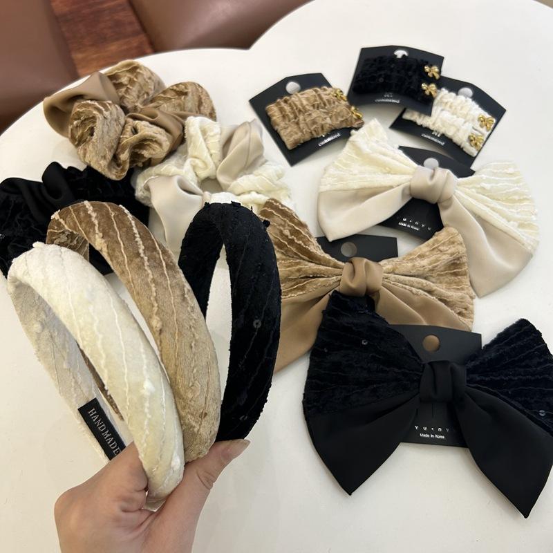 Bow hairpin-Black, Bow hairpin-Brown, Bow hairpin-beige, Solid color hair band-Black, Solid color hair band-be...