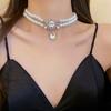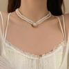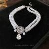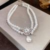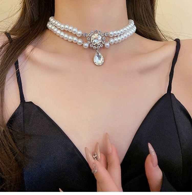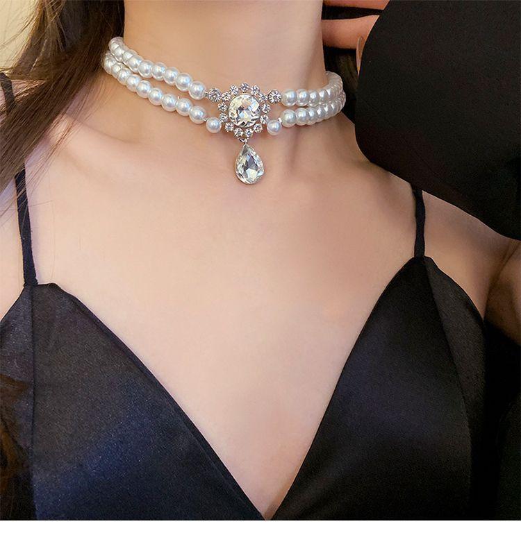 Collar de perlas de doble capa con diamantes franceses, elegante cadena de clavícula, gargantilla a juego, accesorios para mujer