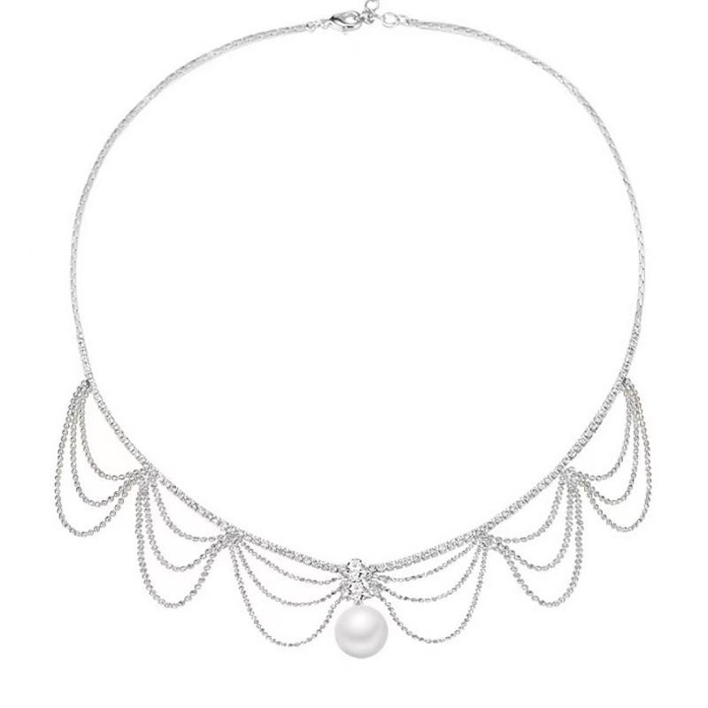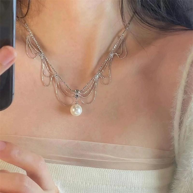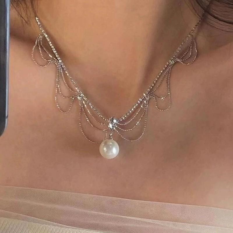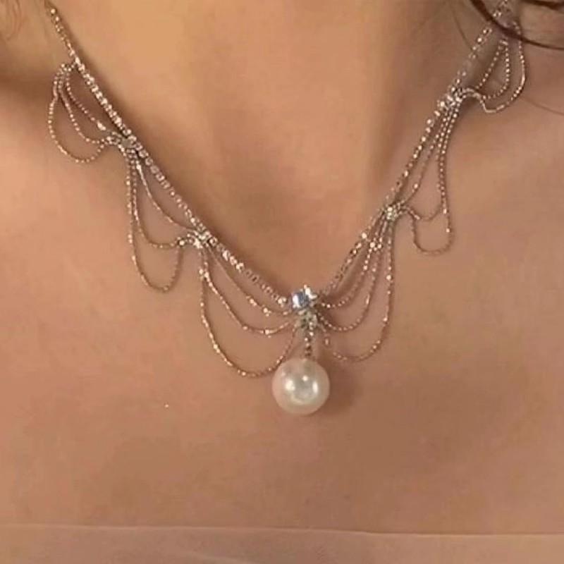 Collar con cadena de clavícula multicapa, de lujo, con diamantes de imitación brillantes y perlas, de alta calidad y con un diseño que combina con todo.