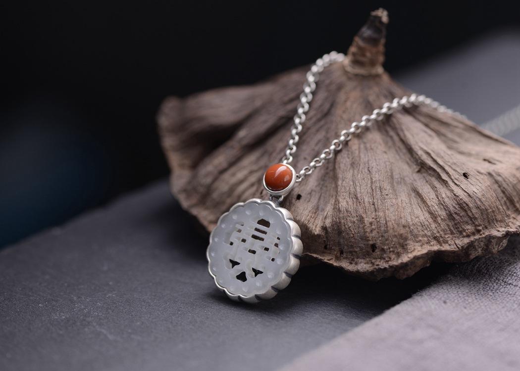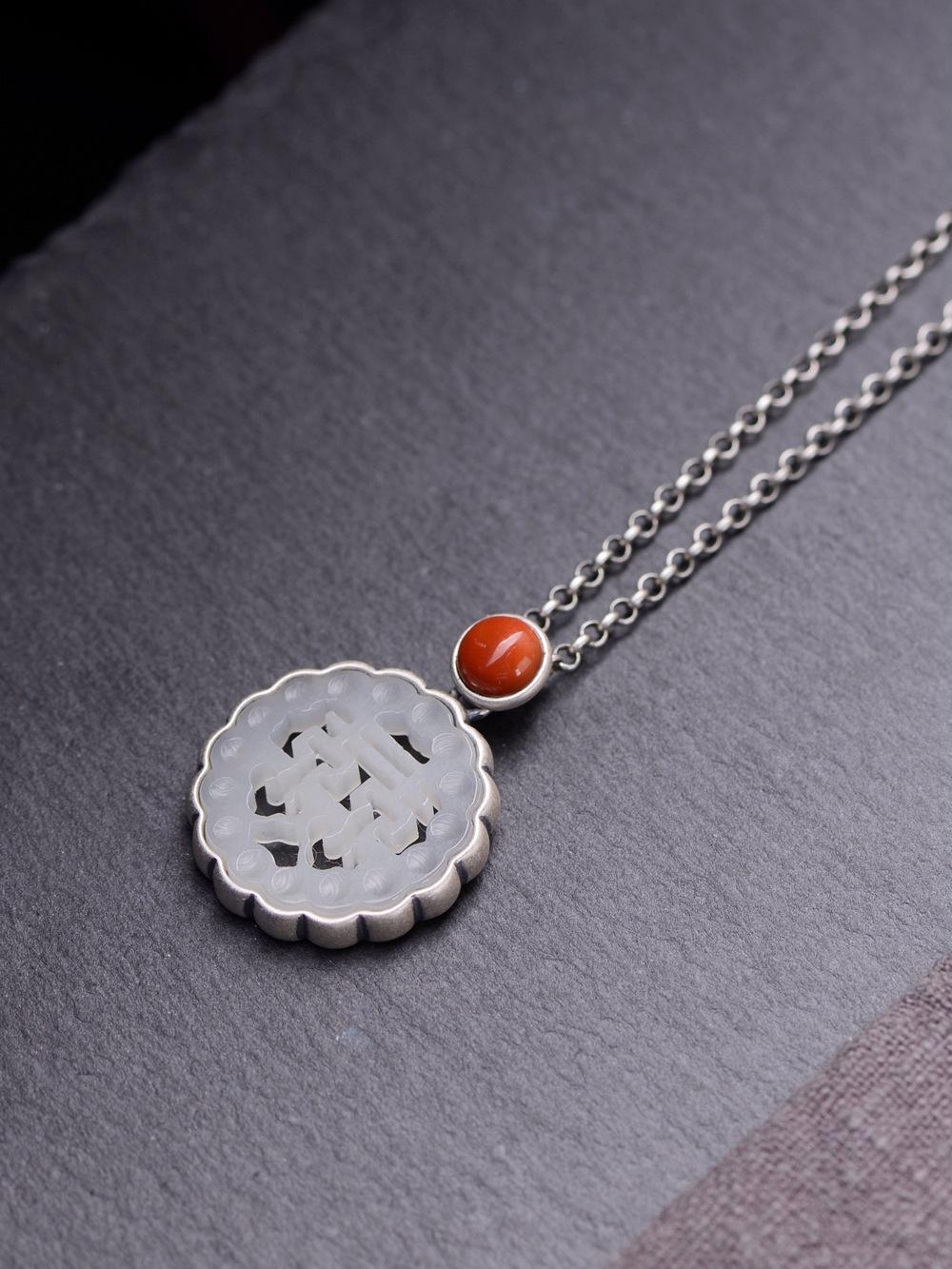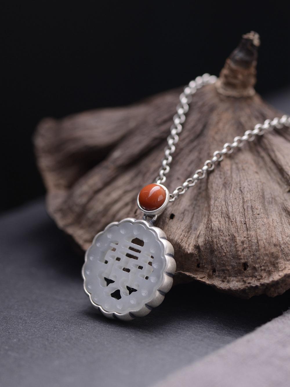 Collar con colgante de plata de ley 925 con diseño de rey ciervo dorado, estilo retro del sur, con ágata roja, jade hetiano y piedra, para mujer, a la moda, para boda.