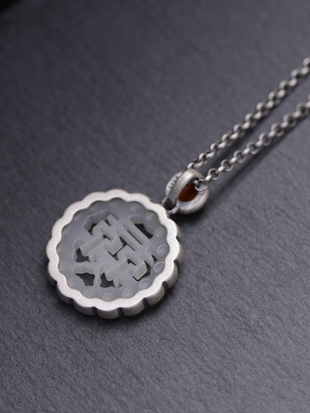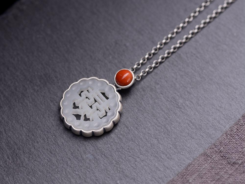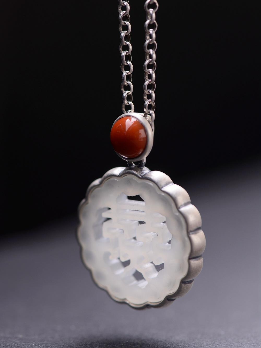 Collar con colgante de plata de ley 925 con diseño de rey ciervo dorado, estilo retro del sur, con ágata roja, jade hetiano y piedra, para mujer, a la moda, para boda.
