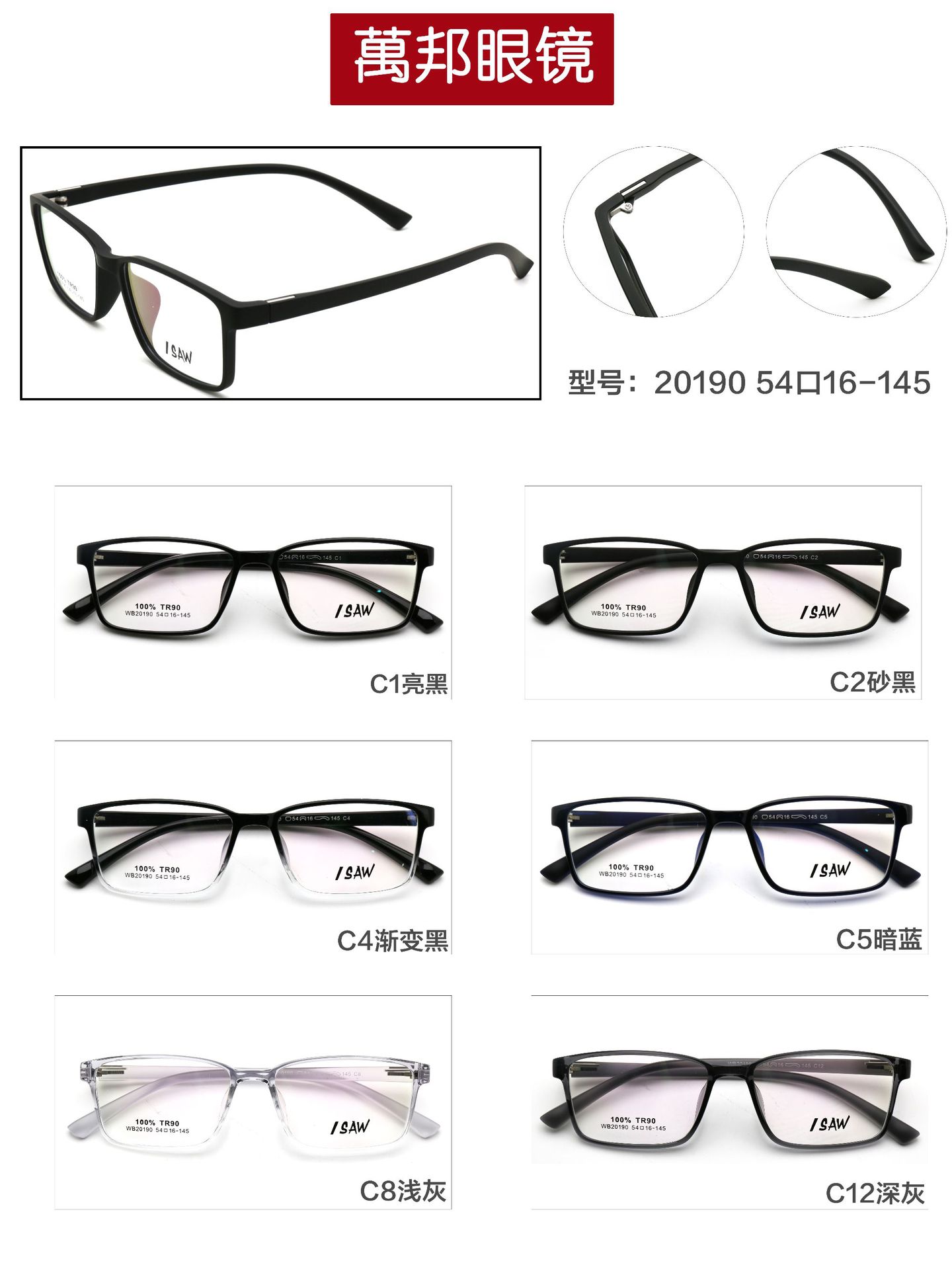 Nueva caja TR90, ultraligera y cómoda, con marco para gafas para estudiantes y jóvenes, se puede equipar con marco grande para miopía, venta al por mayor.