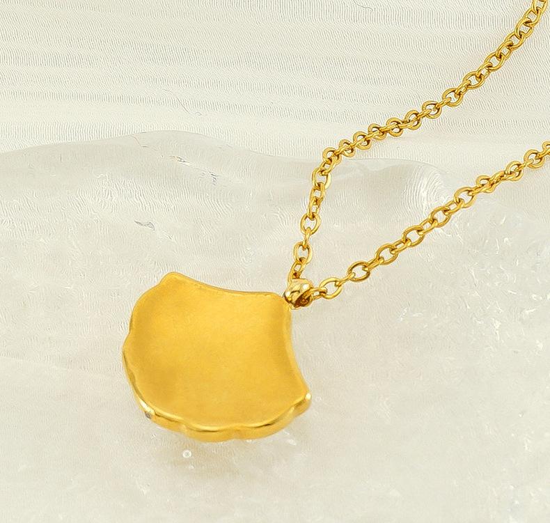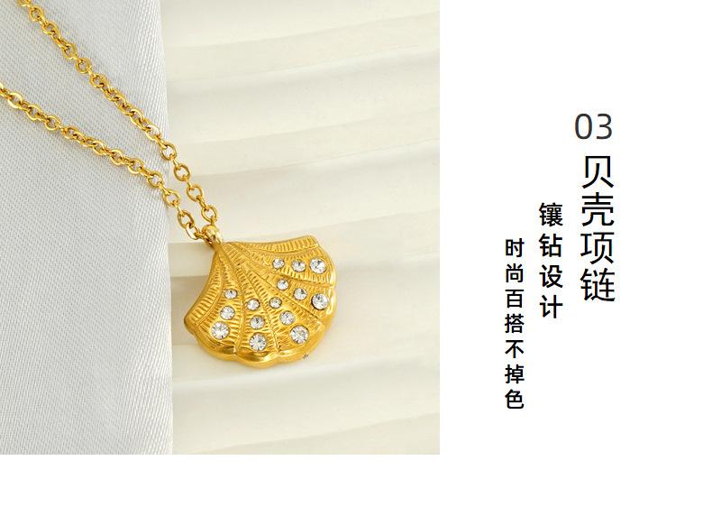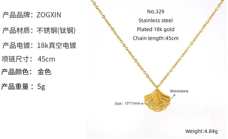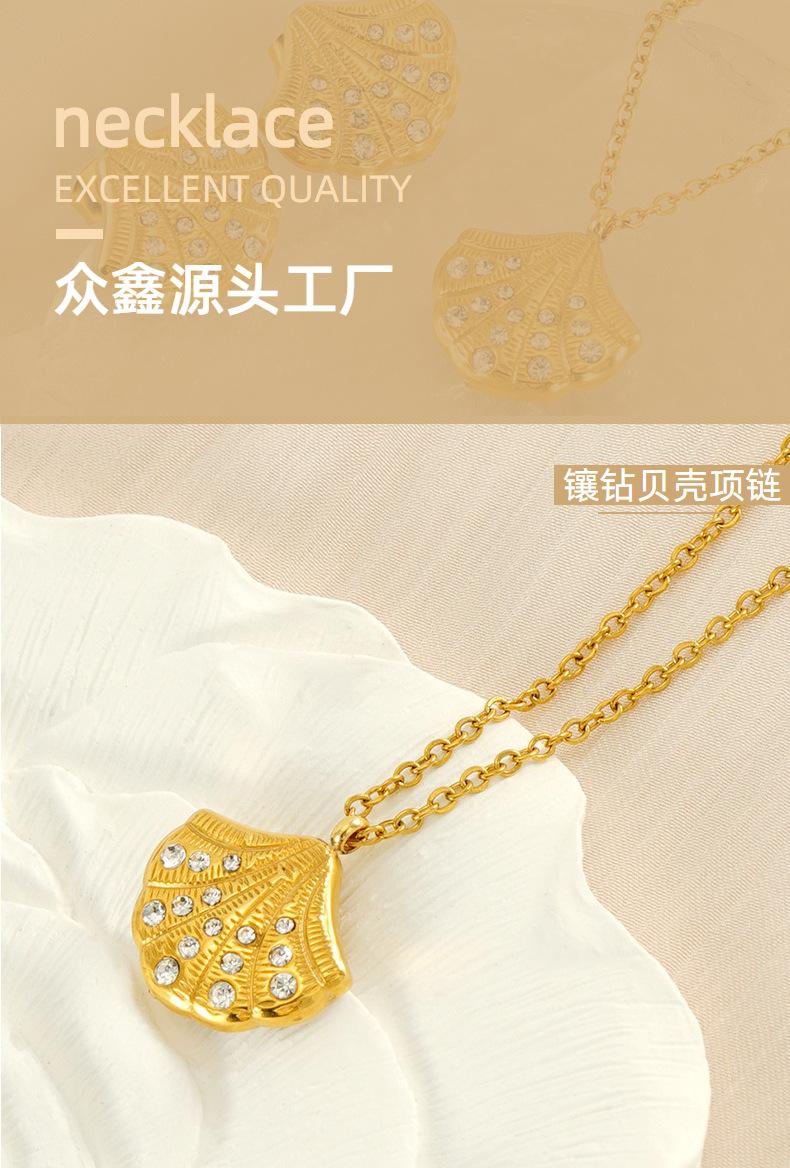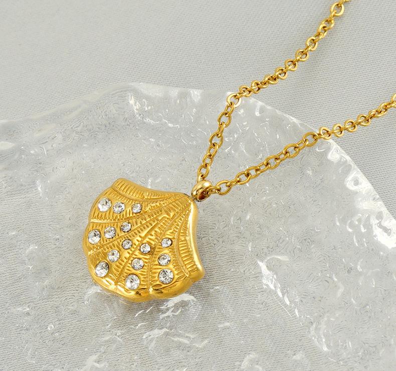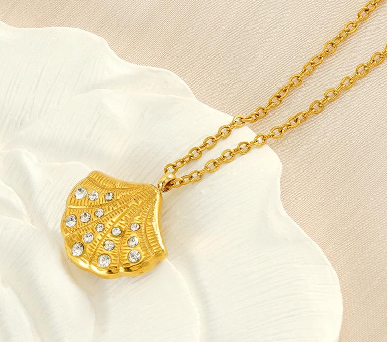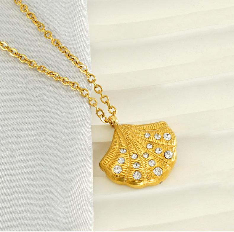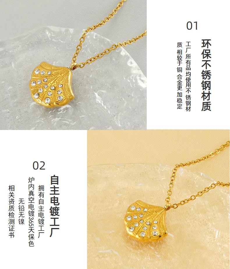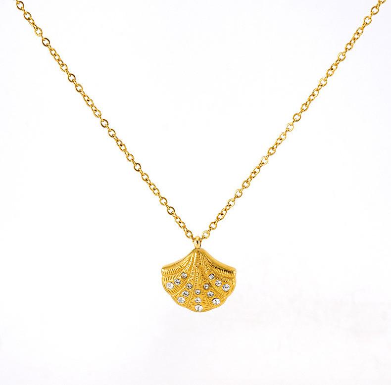 Nuevo collar de concha con incrustaciones de diamantes de alta calidad de acero inoxidable europeo y americano para mujer, diseño de nicho dorado, cadena de clavícula en forma de abanico para mujer
