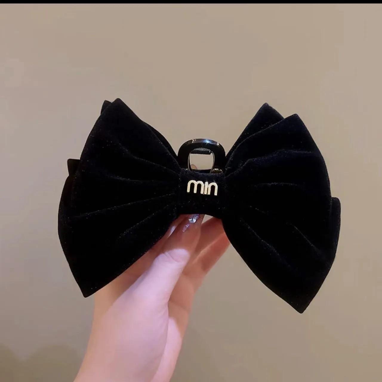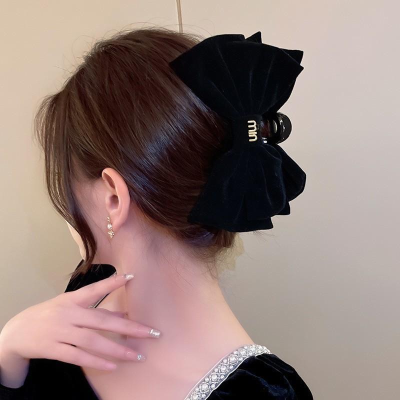 Clip de lazo grande de terciopelo de doble cara para la parte posterior de la cabeza para mujer negro temperamento de alta gama horquilla otoño e invierno Nuevo clip de tiburón