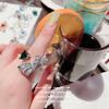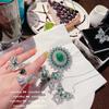 A bright artificial jade butterfly ring, Oil Painting Emerald Drop Bow Zircon Open Ring