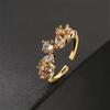 Pintura al Óleo Gema Esmeralda Gotas Anillo Mariposa Chapado en Oro de 18K Circonita Multifaceta Lazo Anillo Abierto
