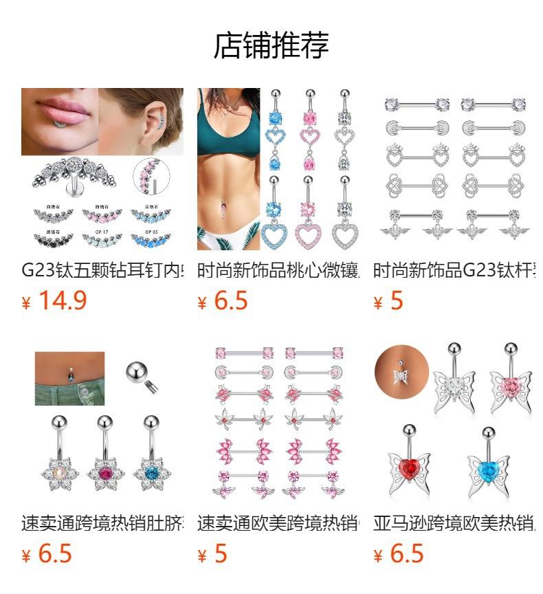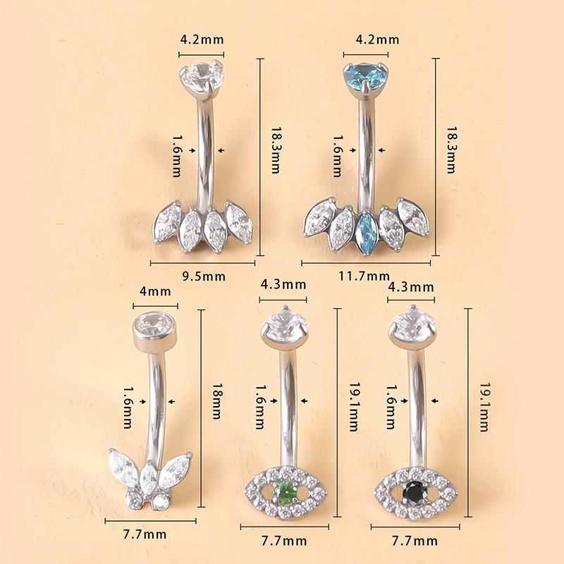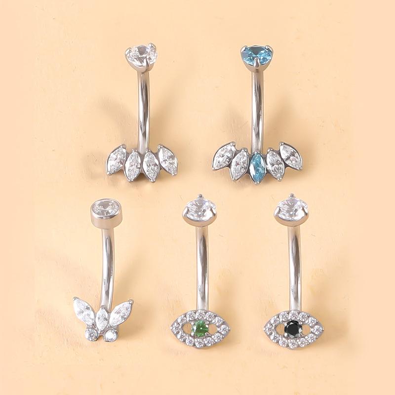 Nueva joyería de moda G23, anillo para ombligo de titanio con forma de abanico, clavo para ombligo, rosca interna, varilla curva de circonita de tres garras, joyería para ombligo