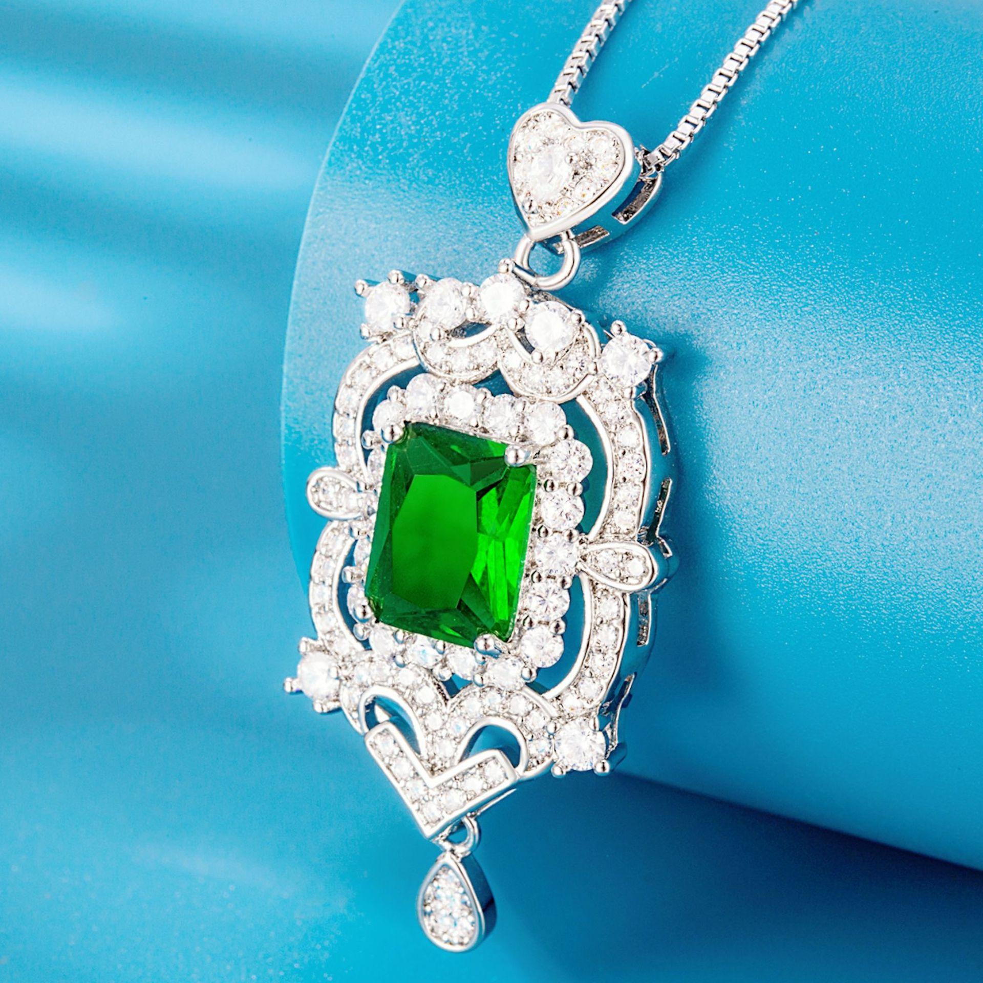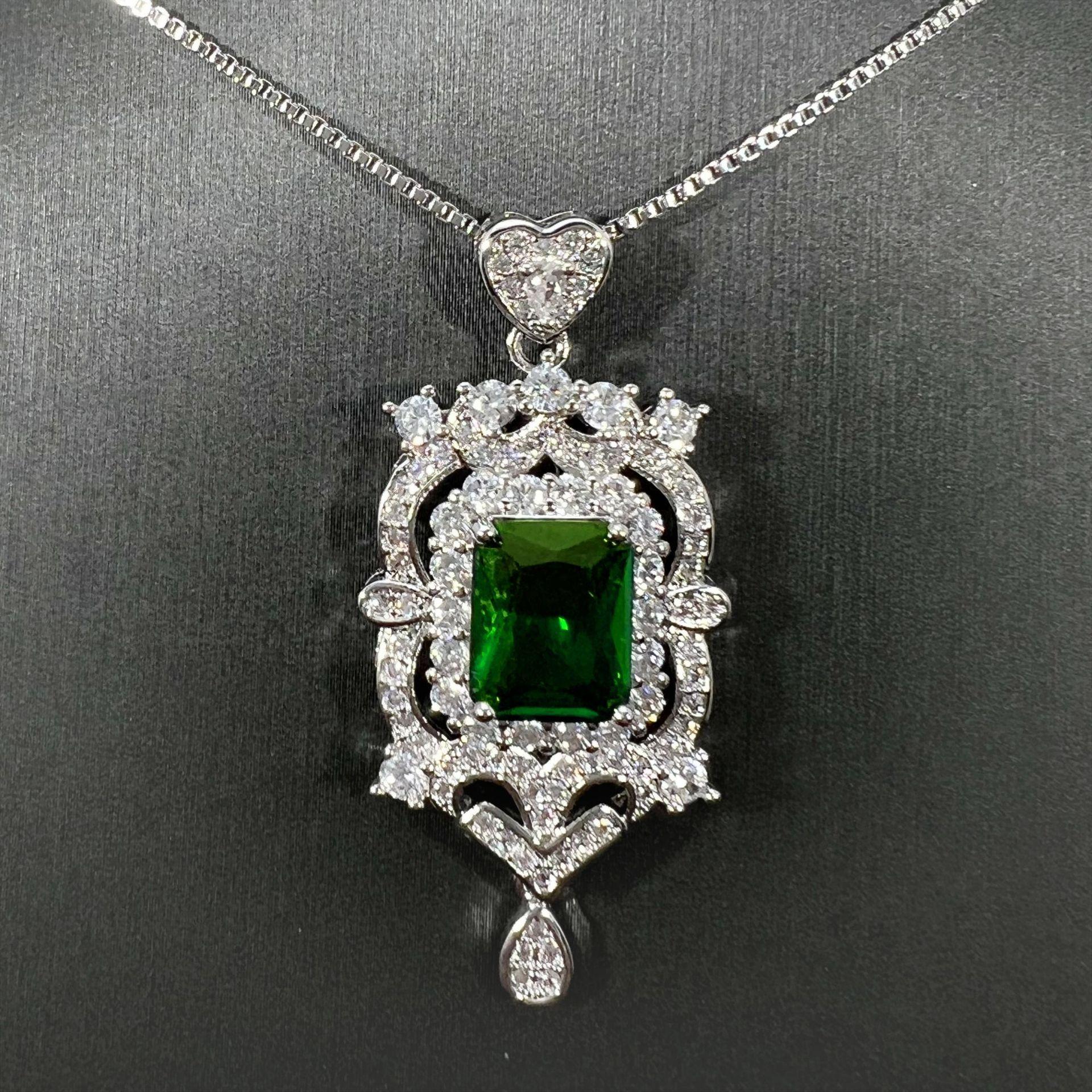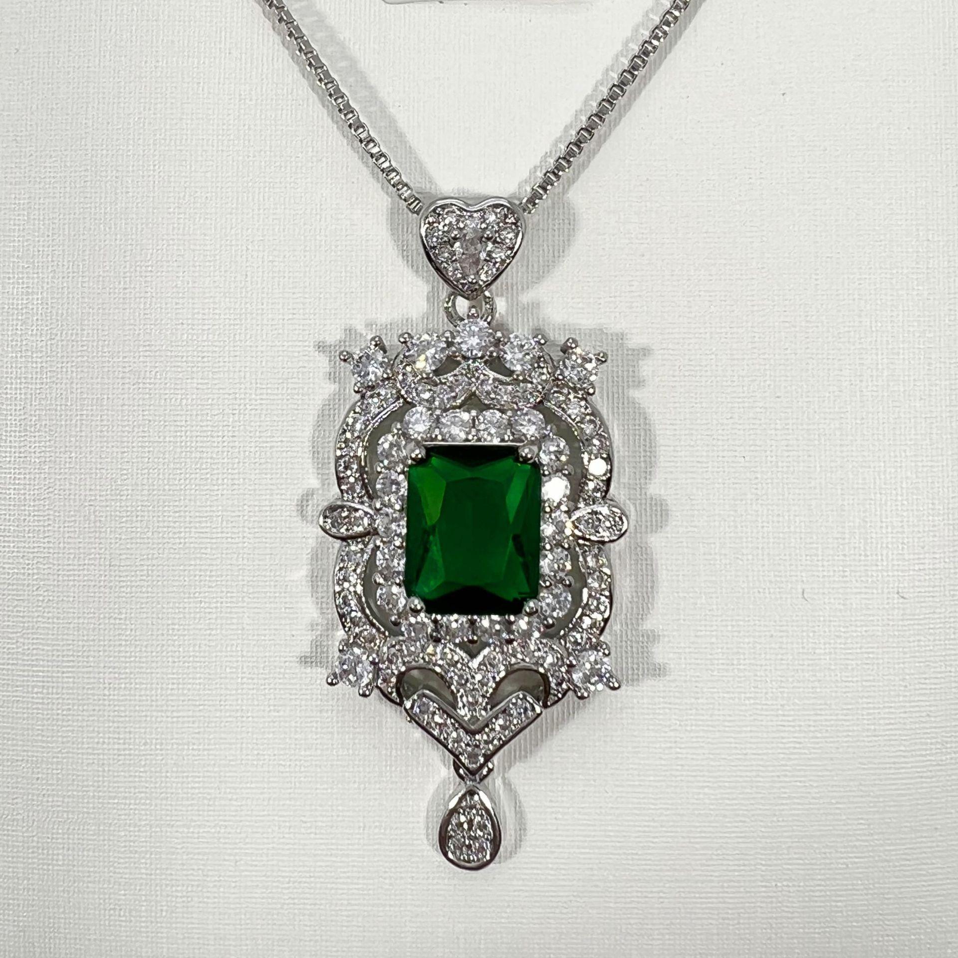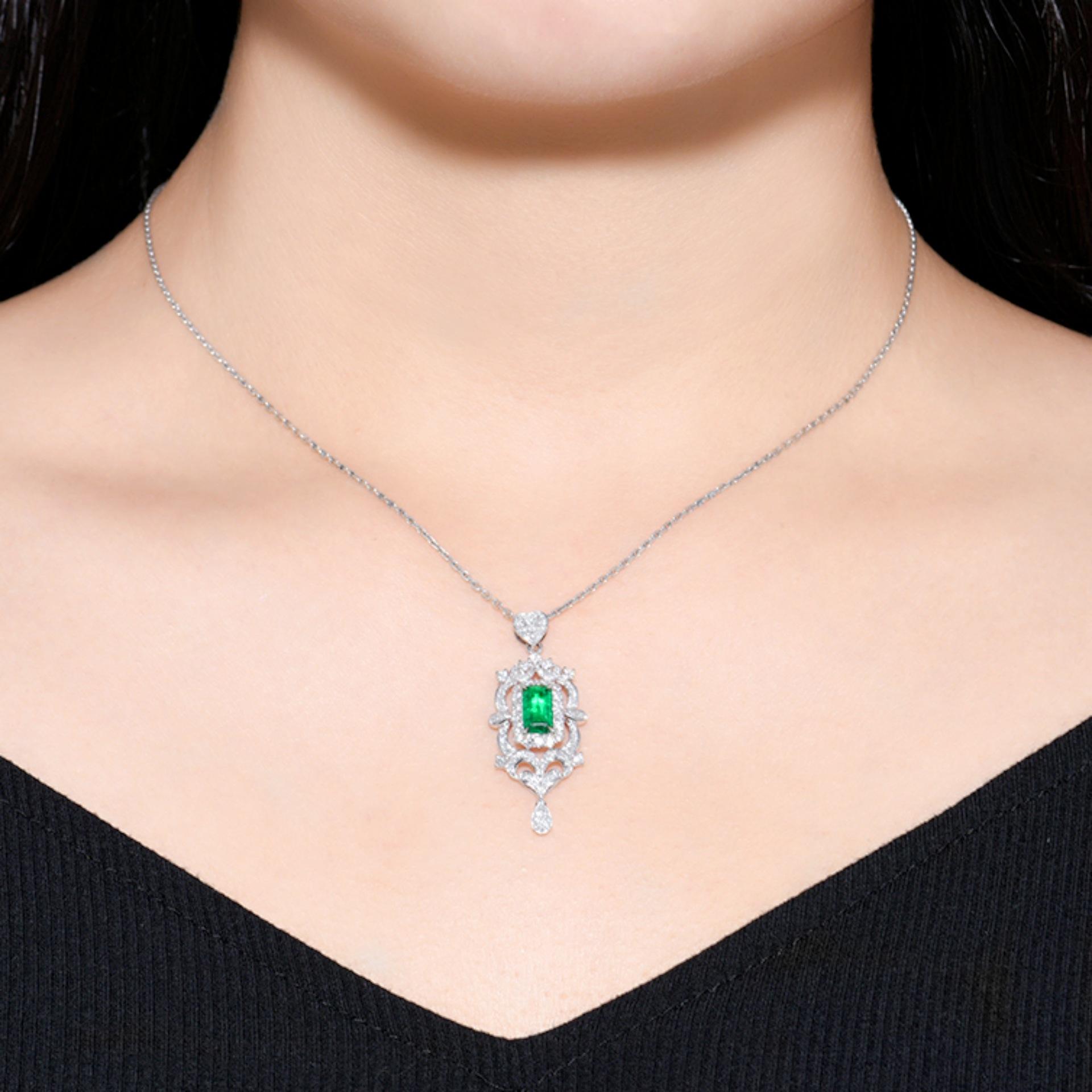Collar con colgante de diamantes cuadrados y colgante de esmeralda, diseño industrial de lujo, colgante de diamantes completo.