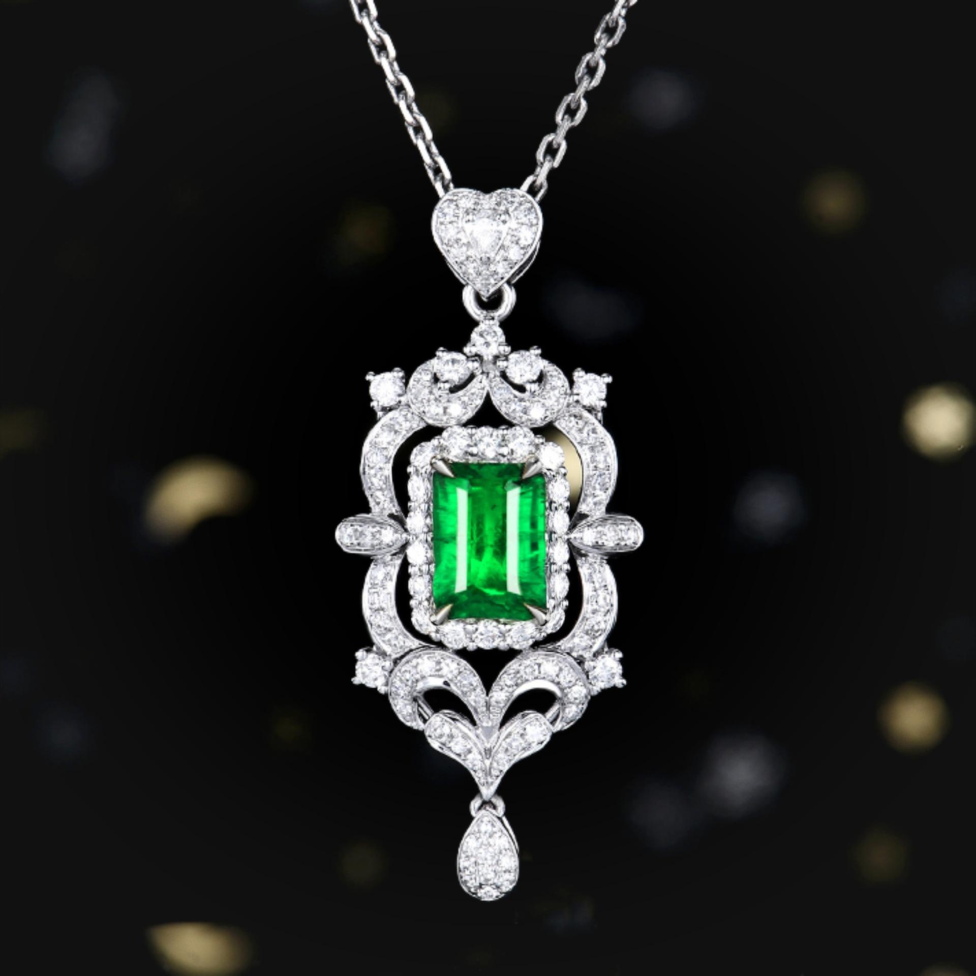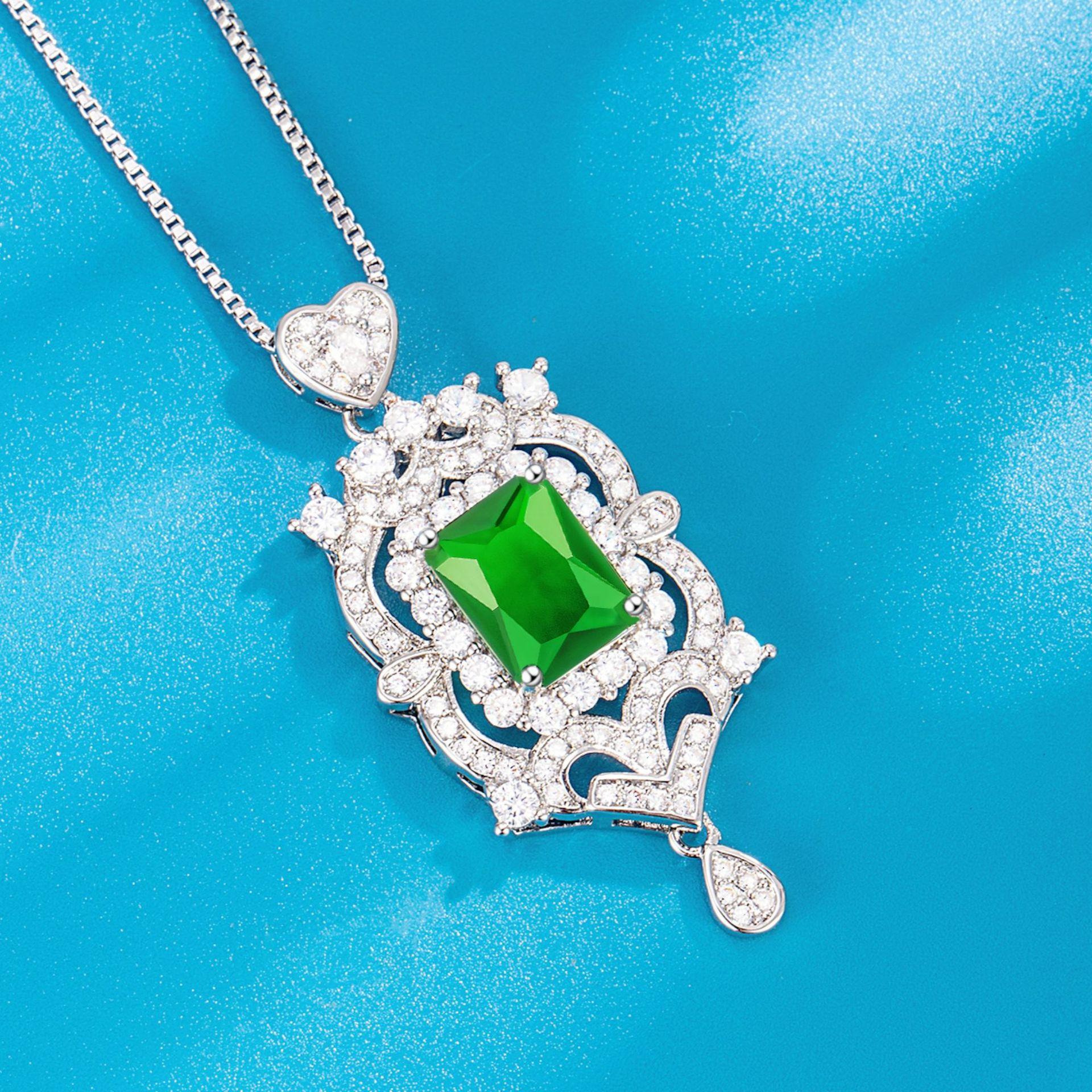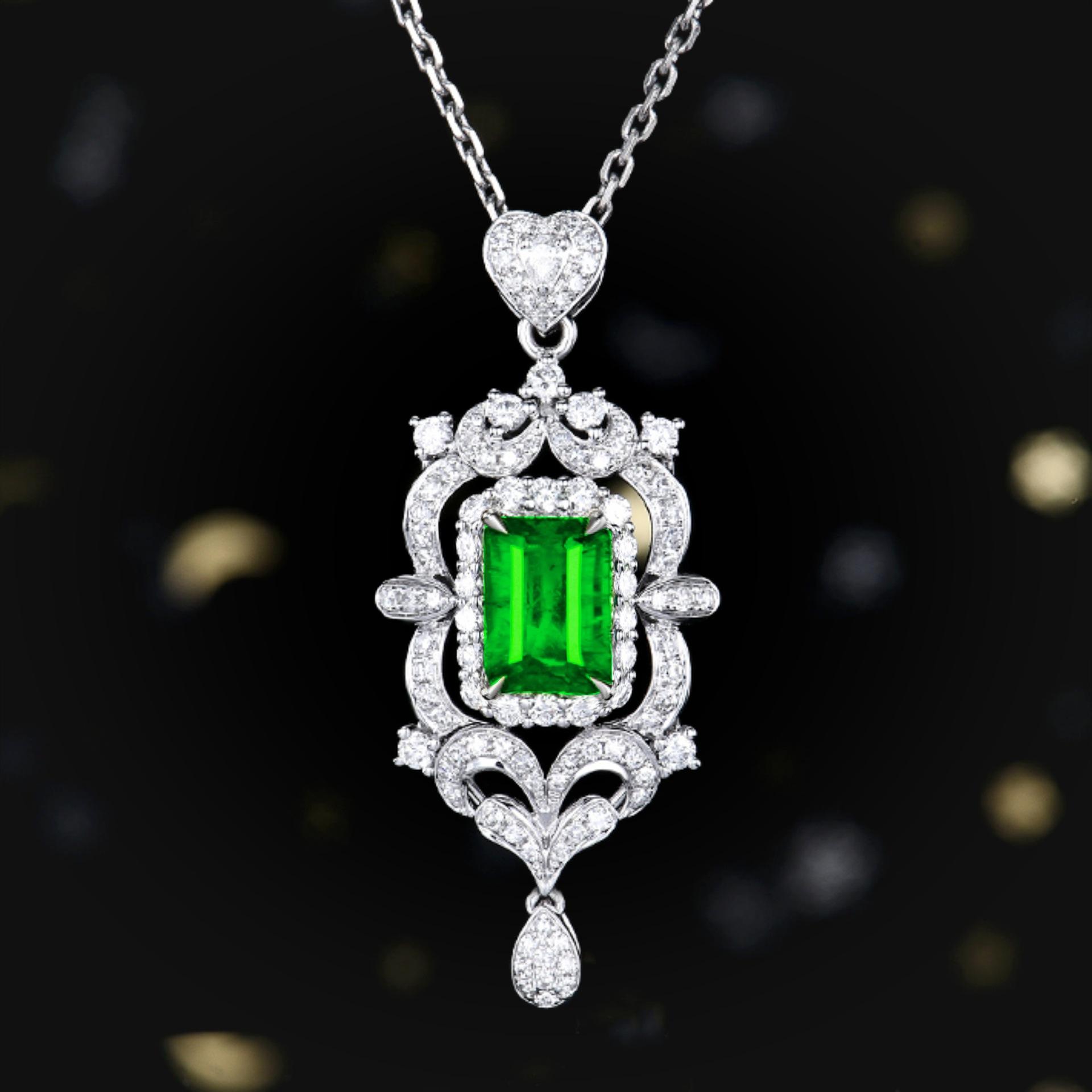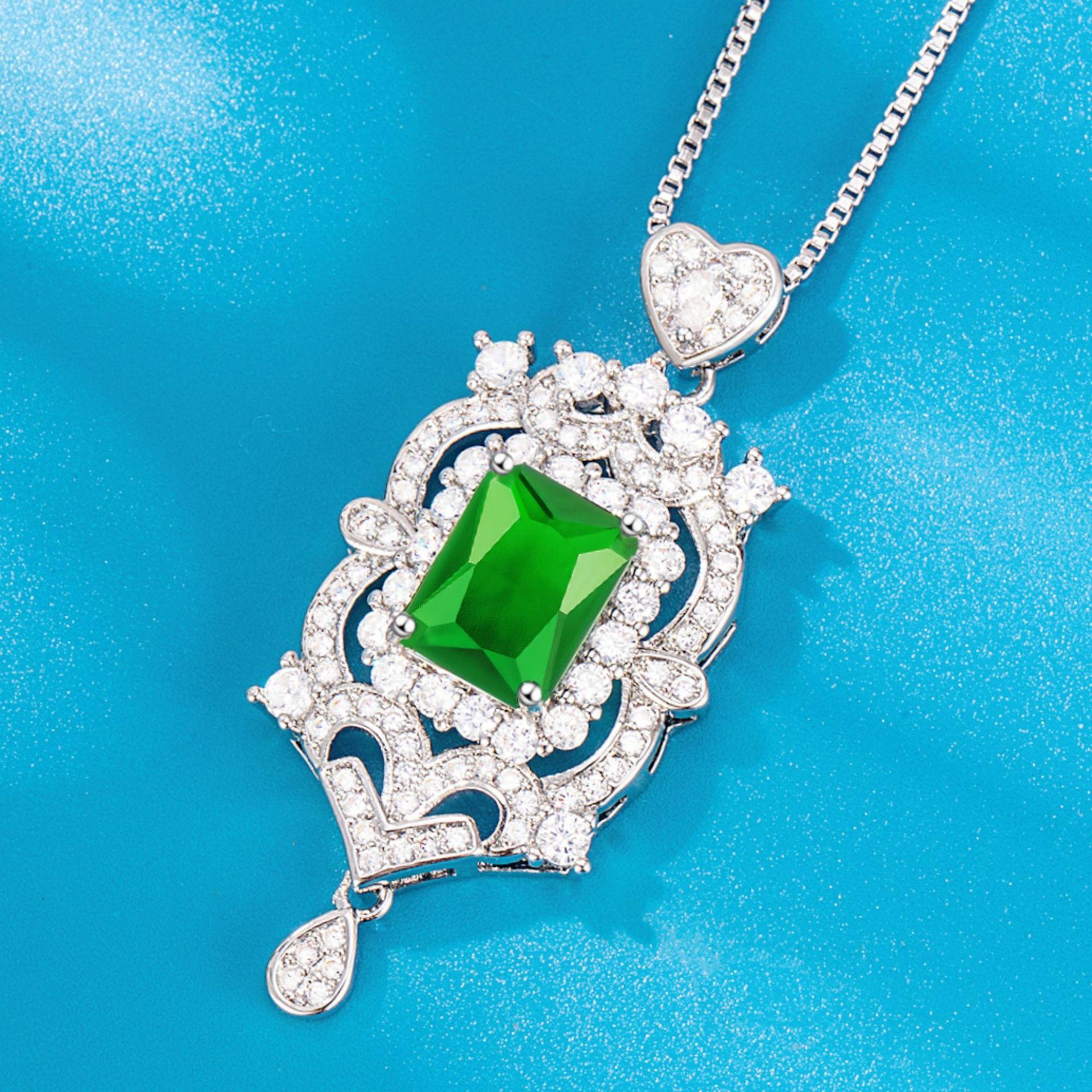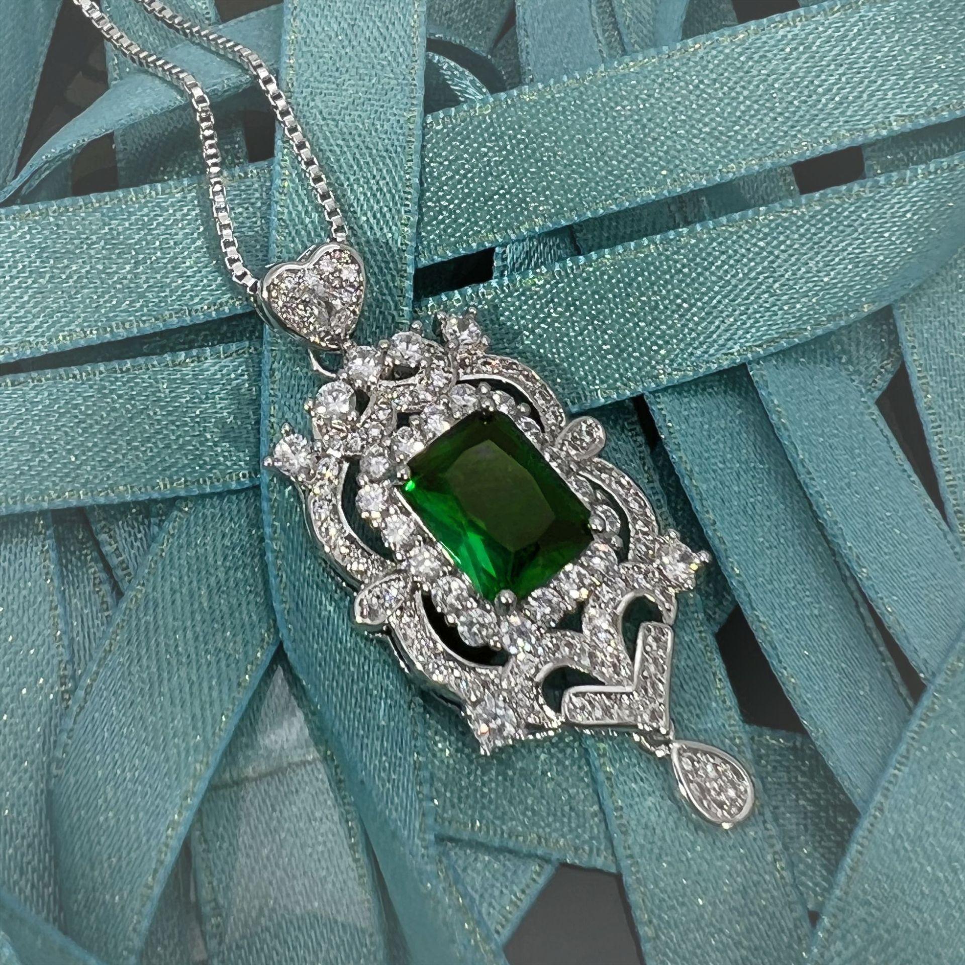 Collar con colgante de diamantes cuadrados y colgante de esmeralda, diseño industrial de lujo, colgante de diamantes completo.