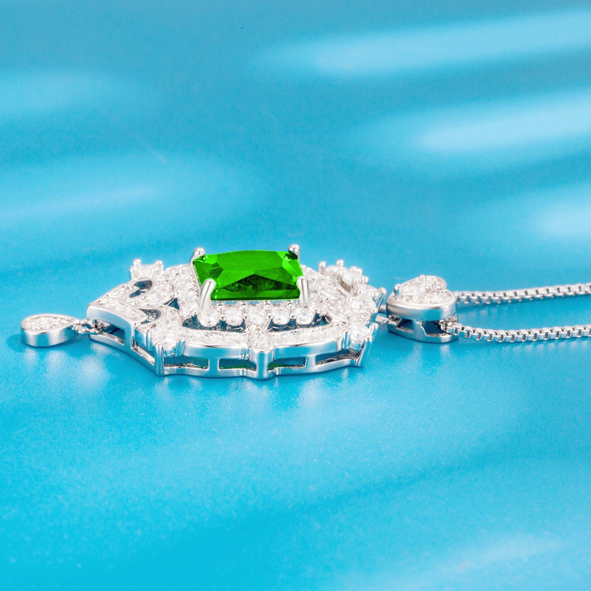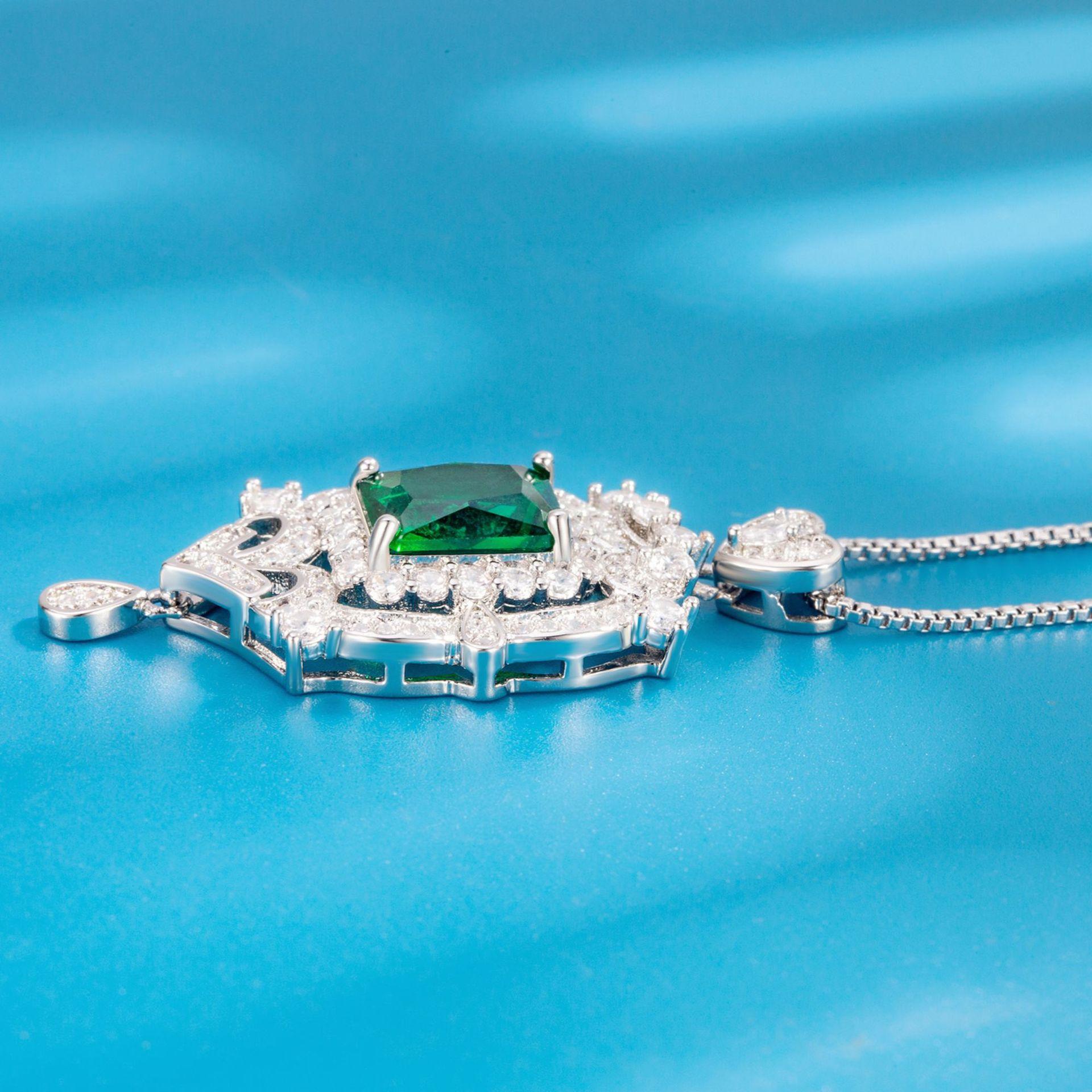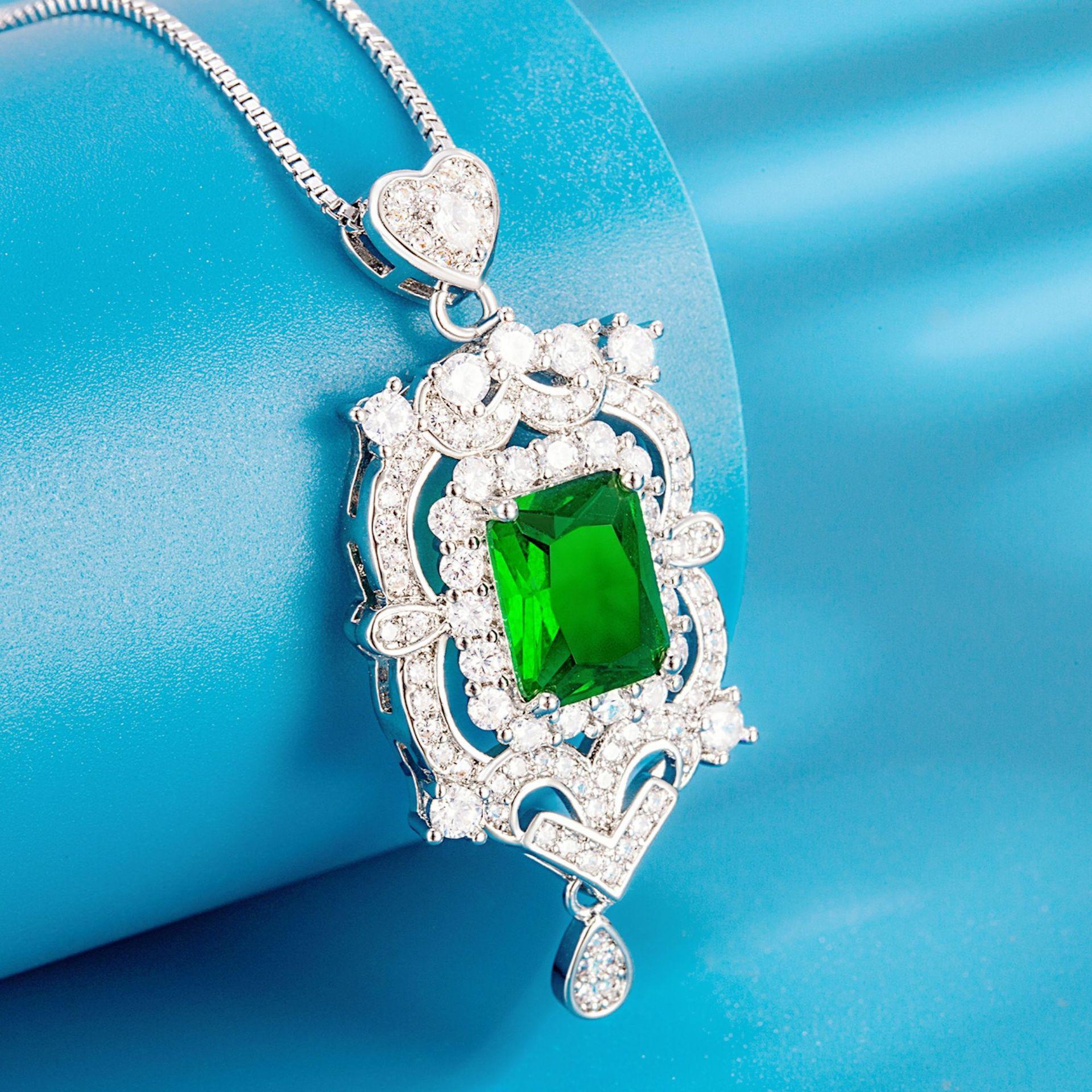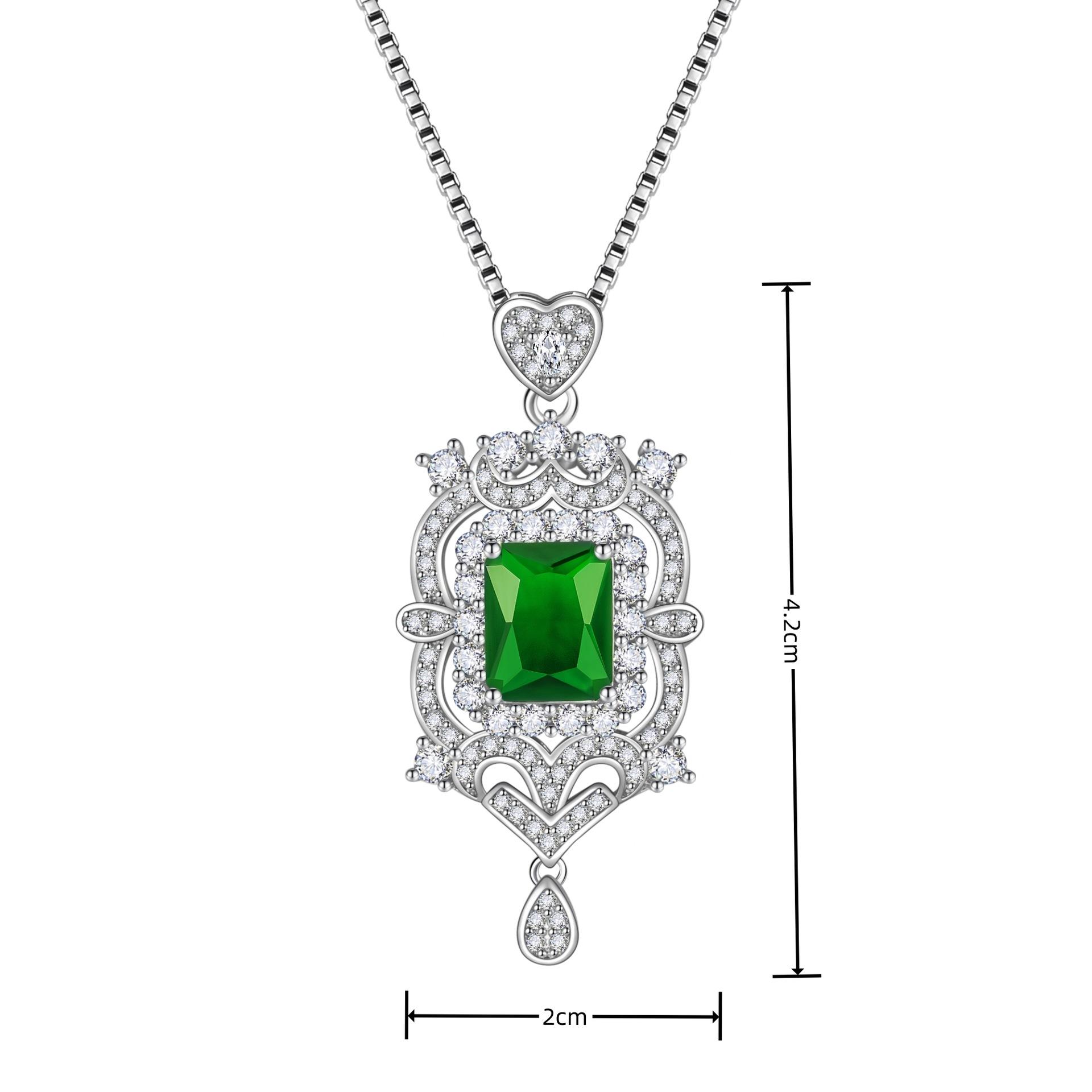 Collar con colgante de diamantes cuadrados y colgante de esmeralda, diseño industrial de lujo, colgante de diamantes completo.