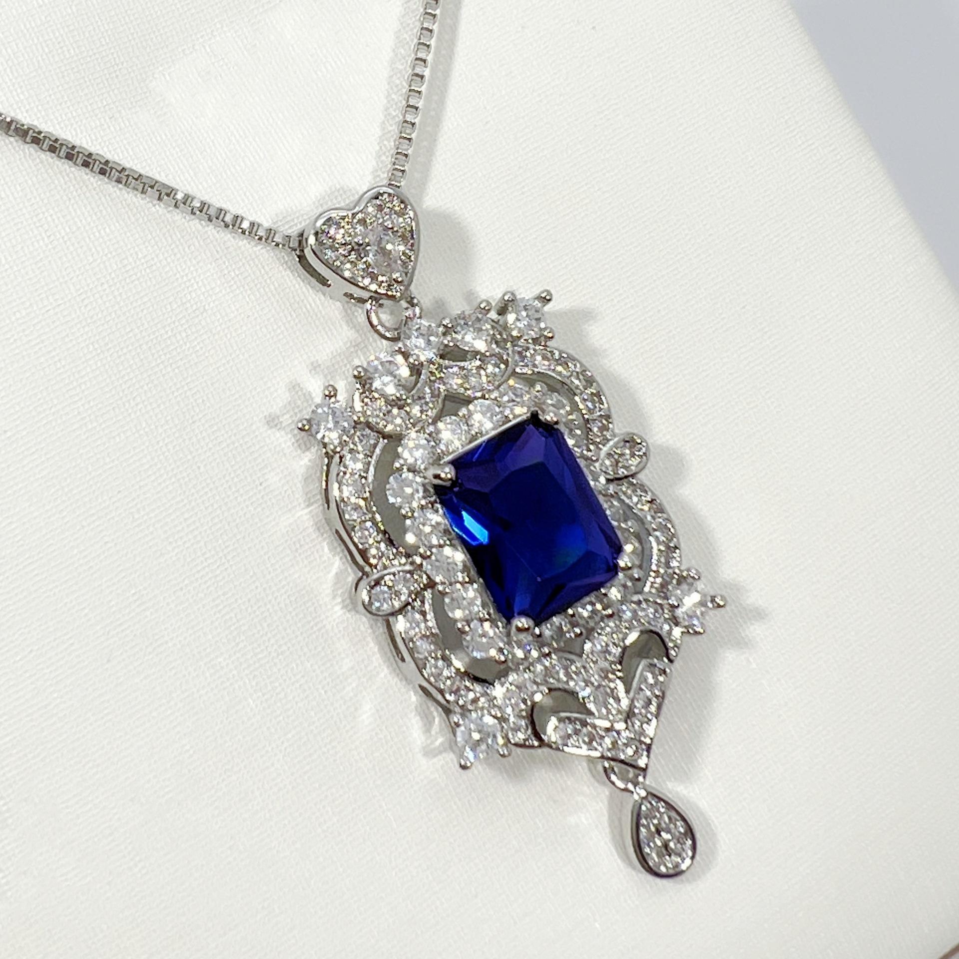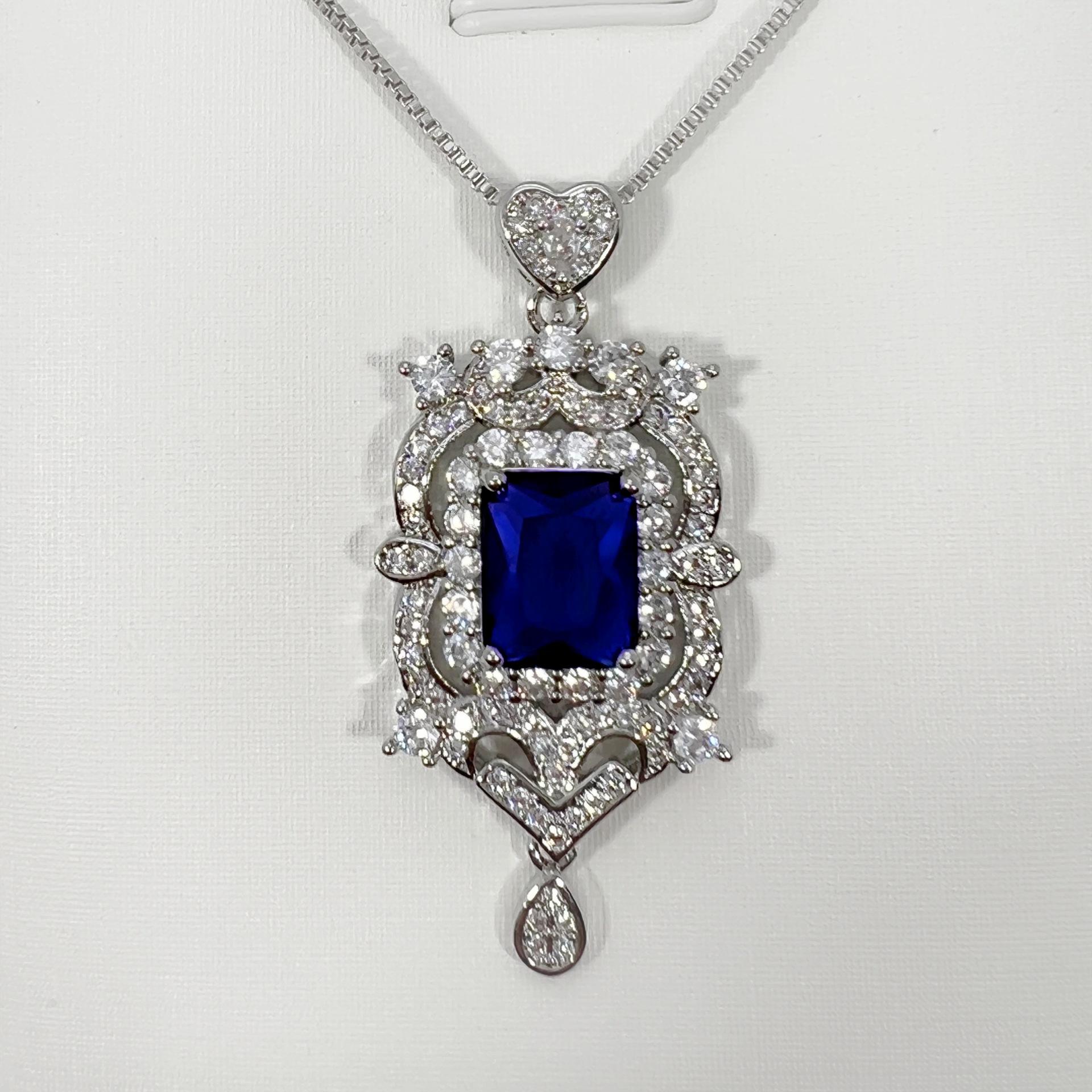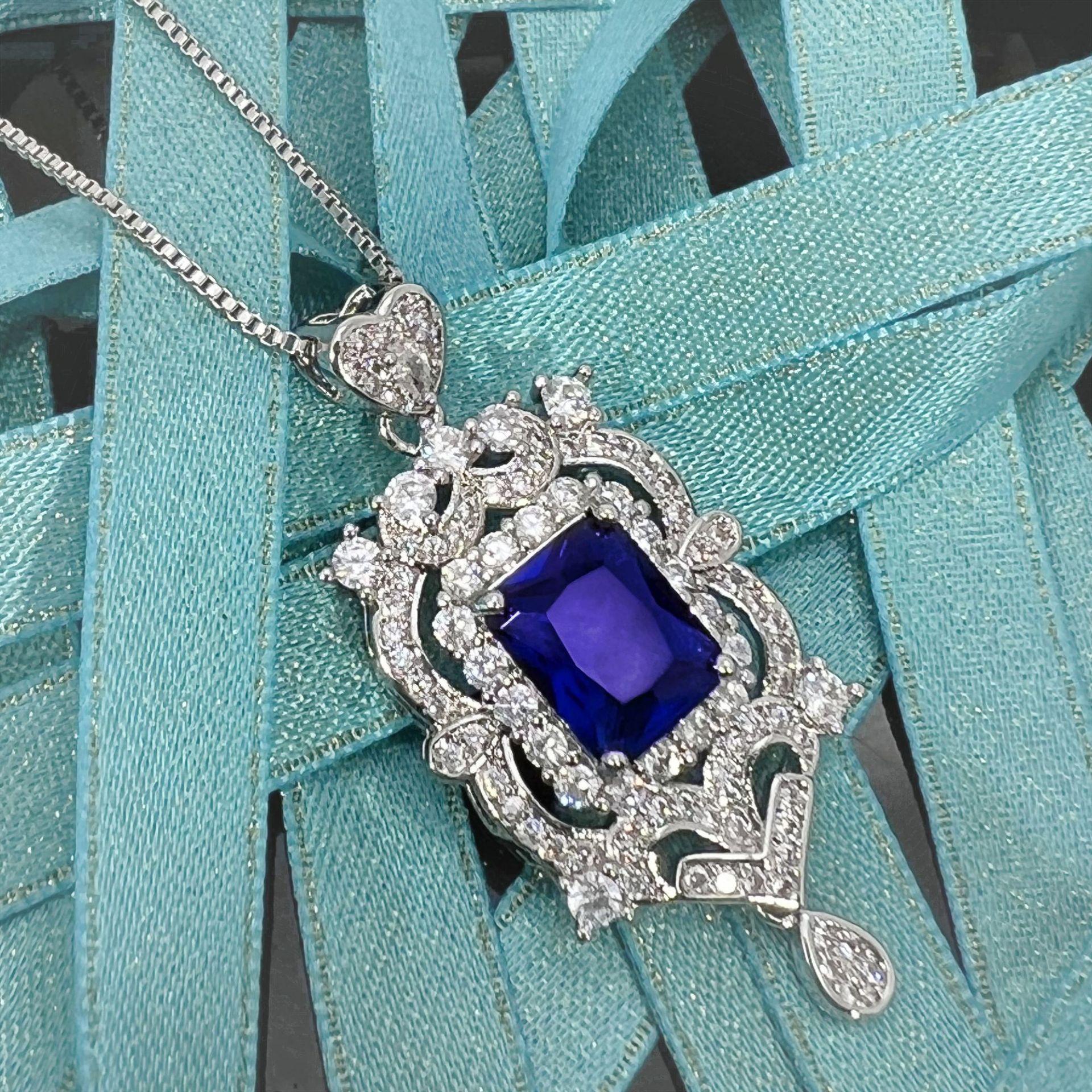 Dark blue diamond pendant + square box chain [one set price]