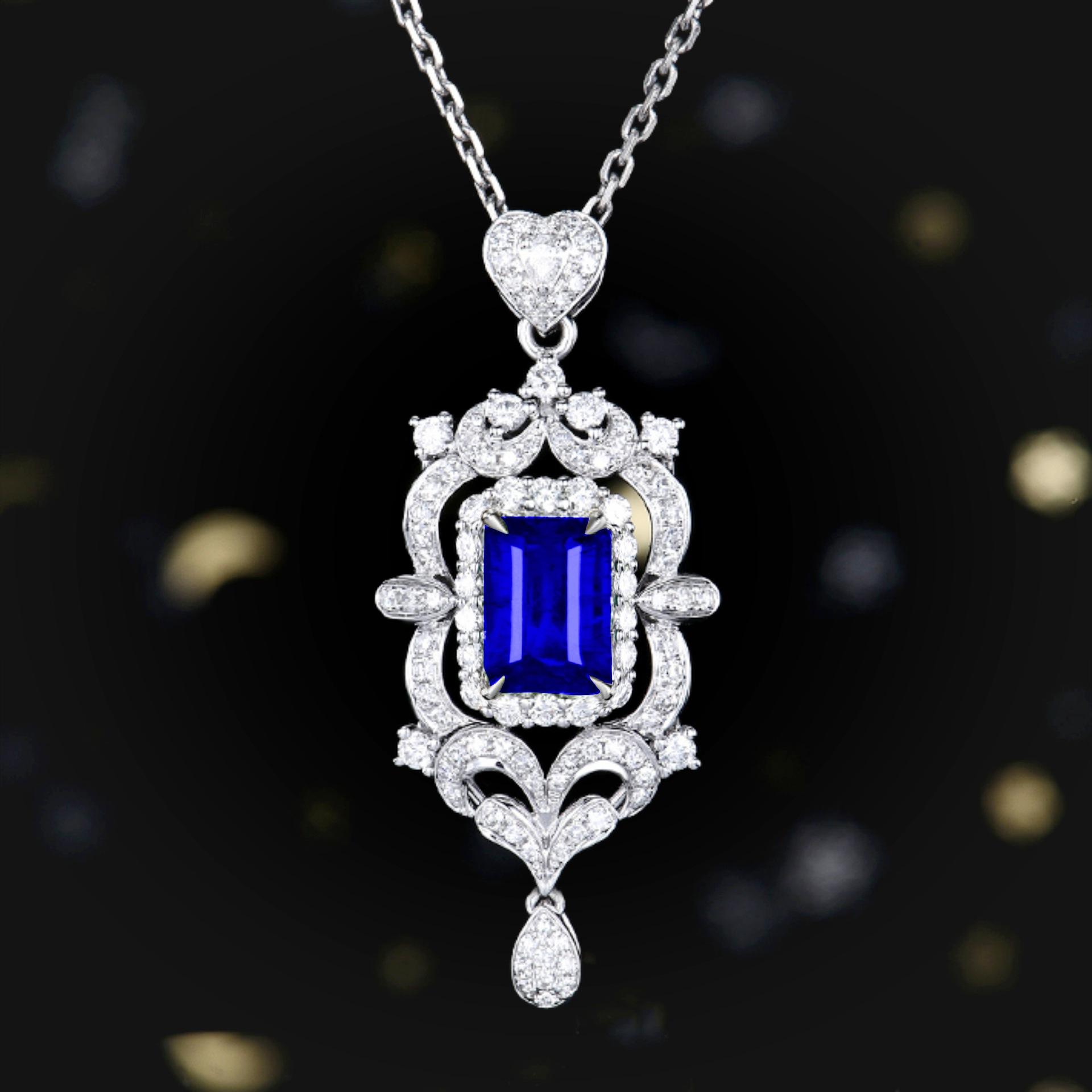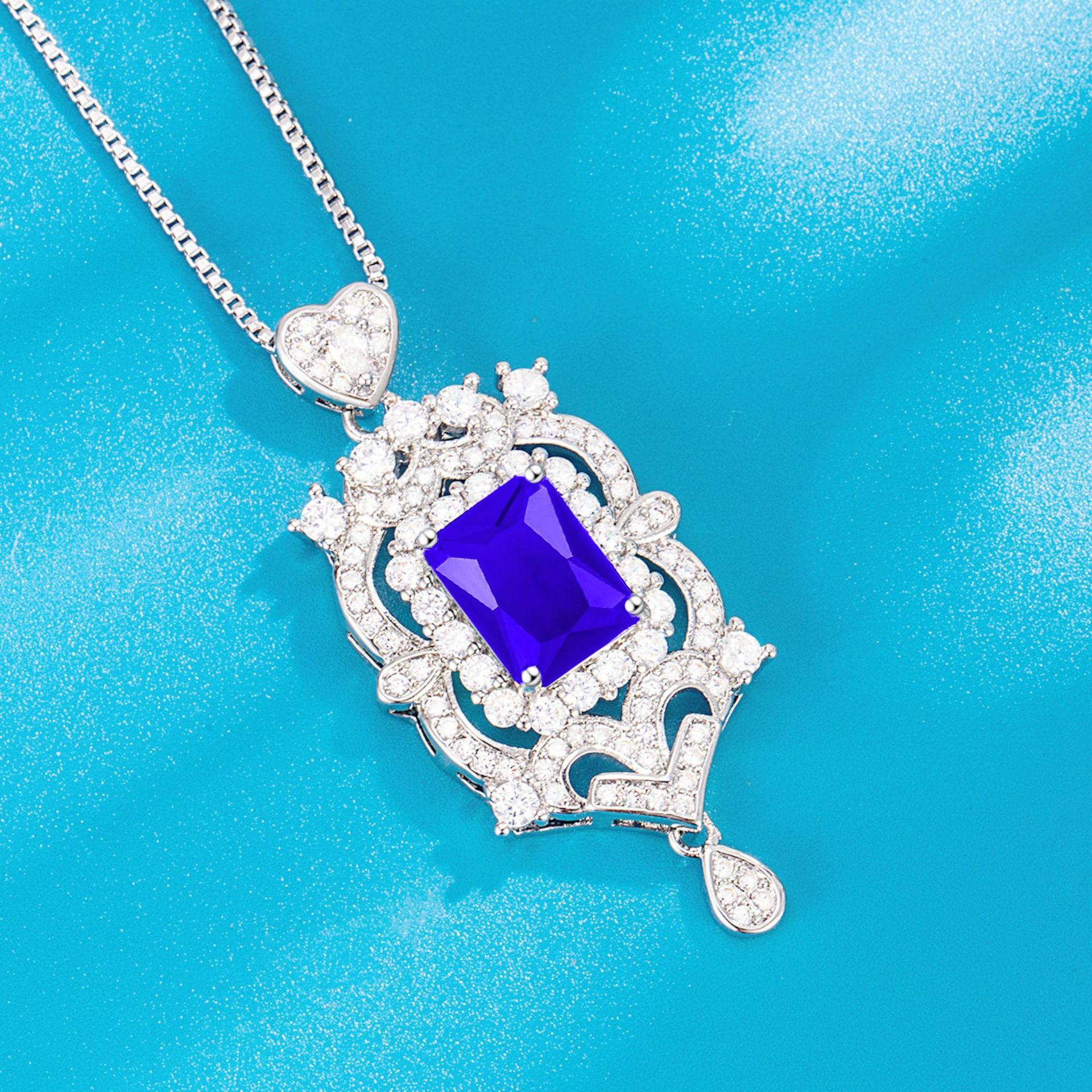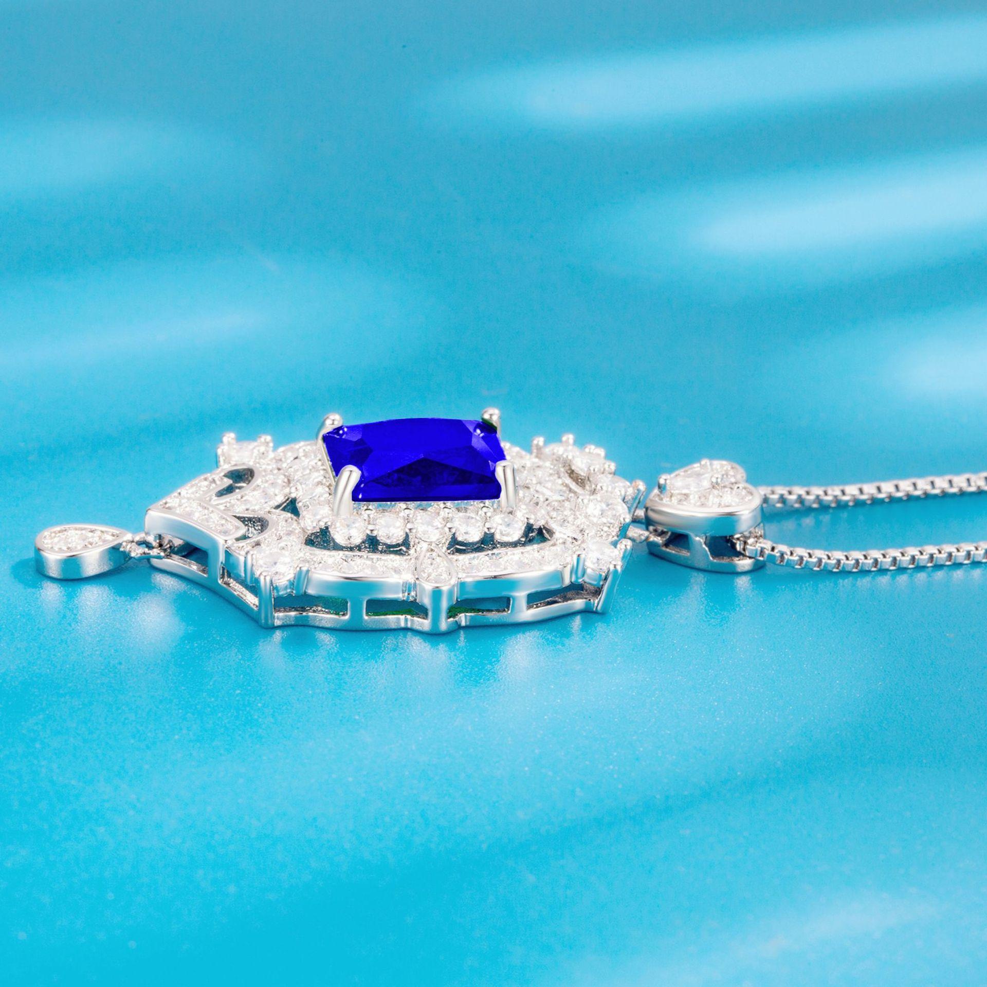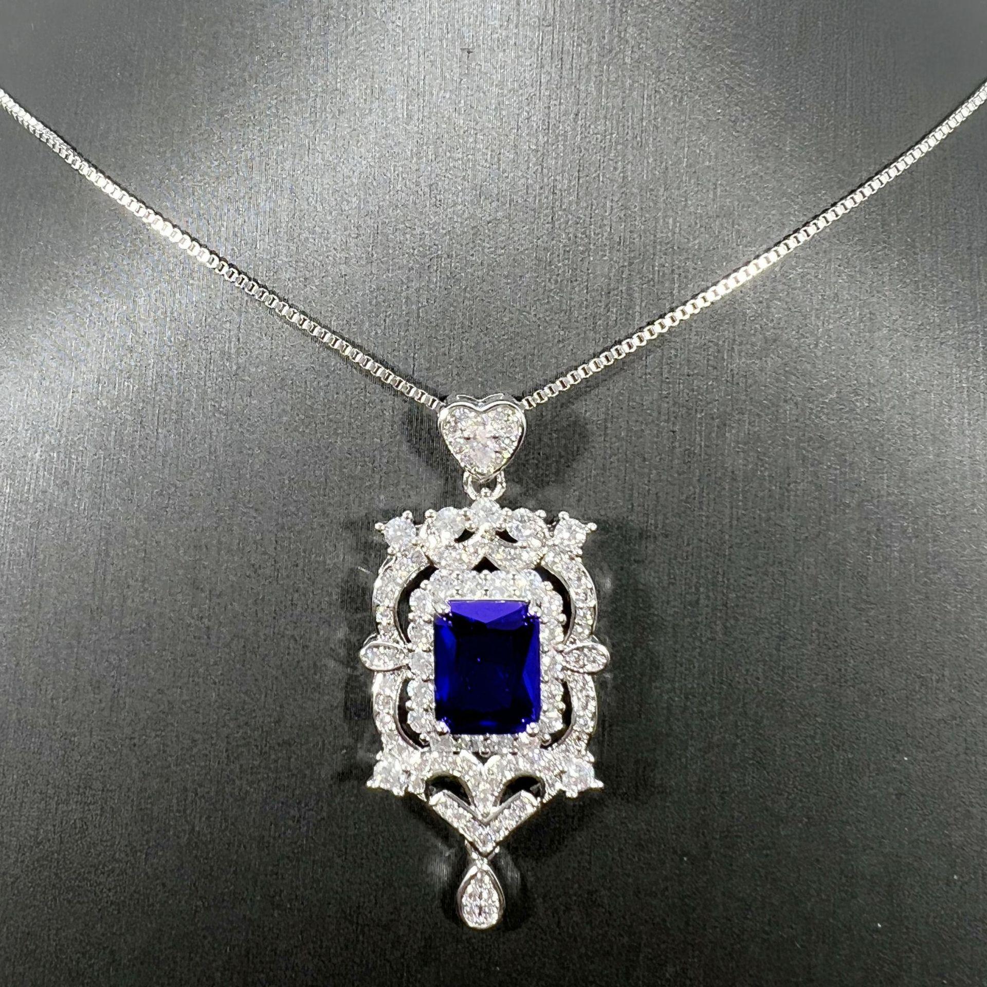 Dark blue diamond pendant + square box chain [one set price]