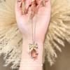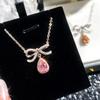 Collar de Piedras Preciosas Heidi Bow Drops Atardecer Intoxicado Chapado en Oro de 18K Polvo Cinta Champán Collar de Circonitas