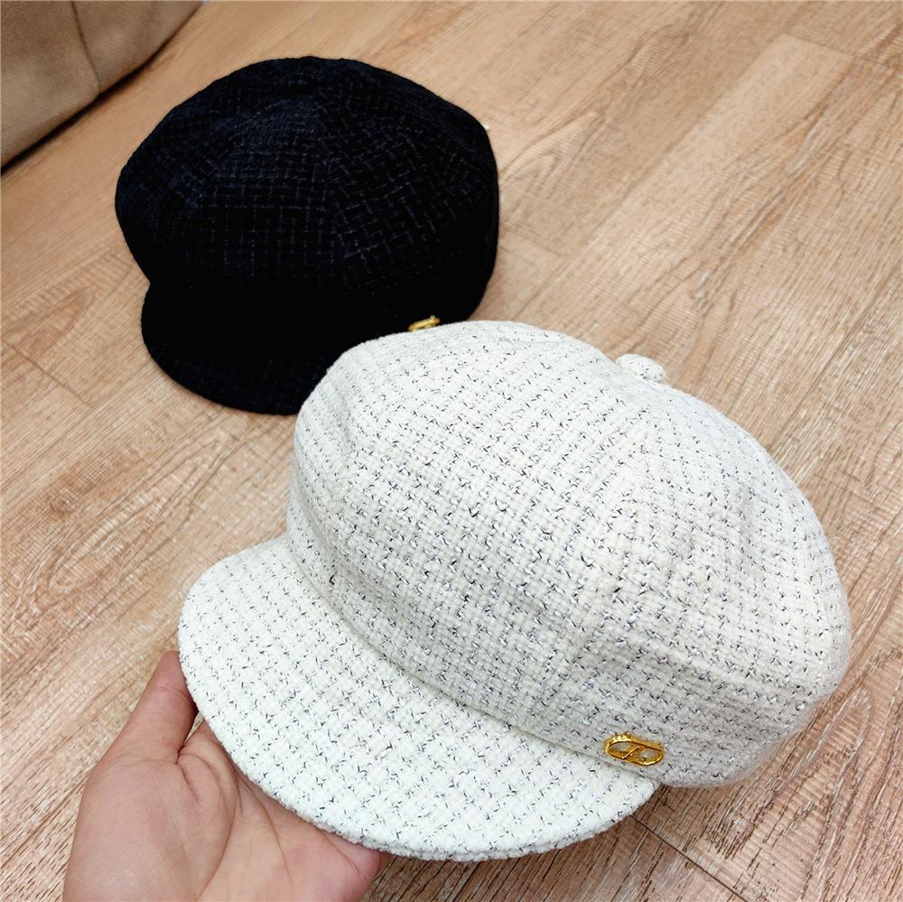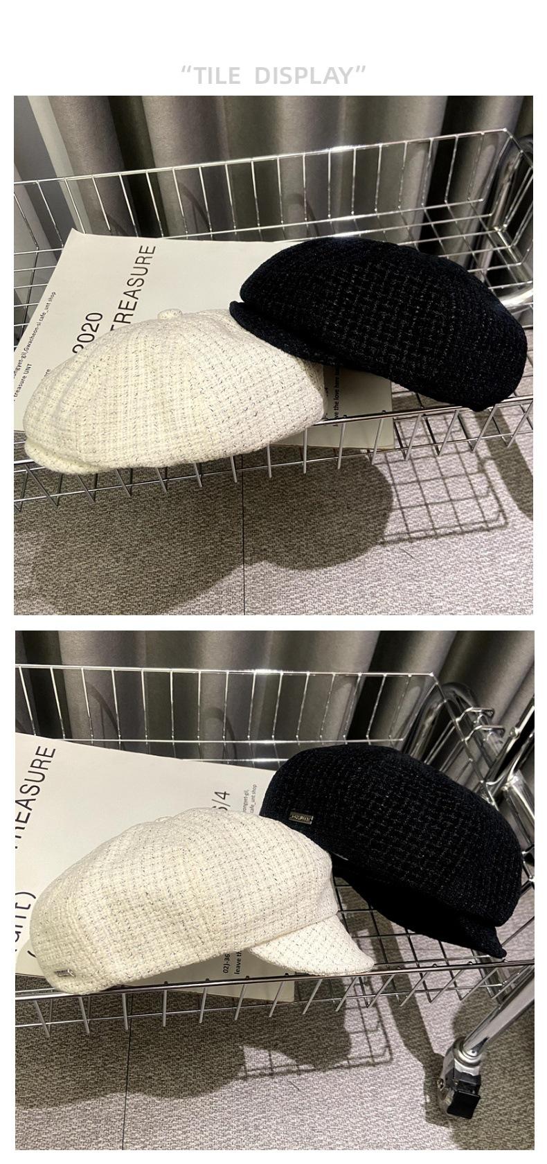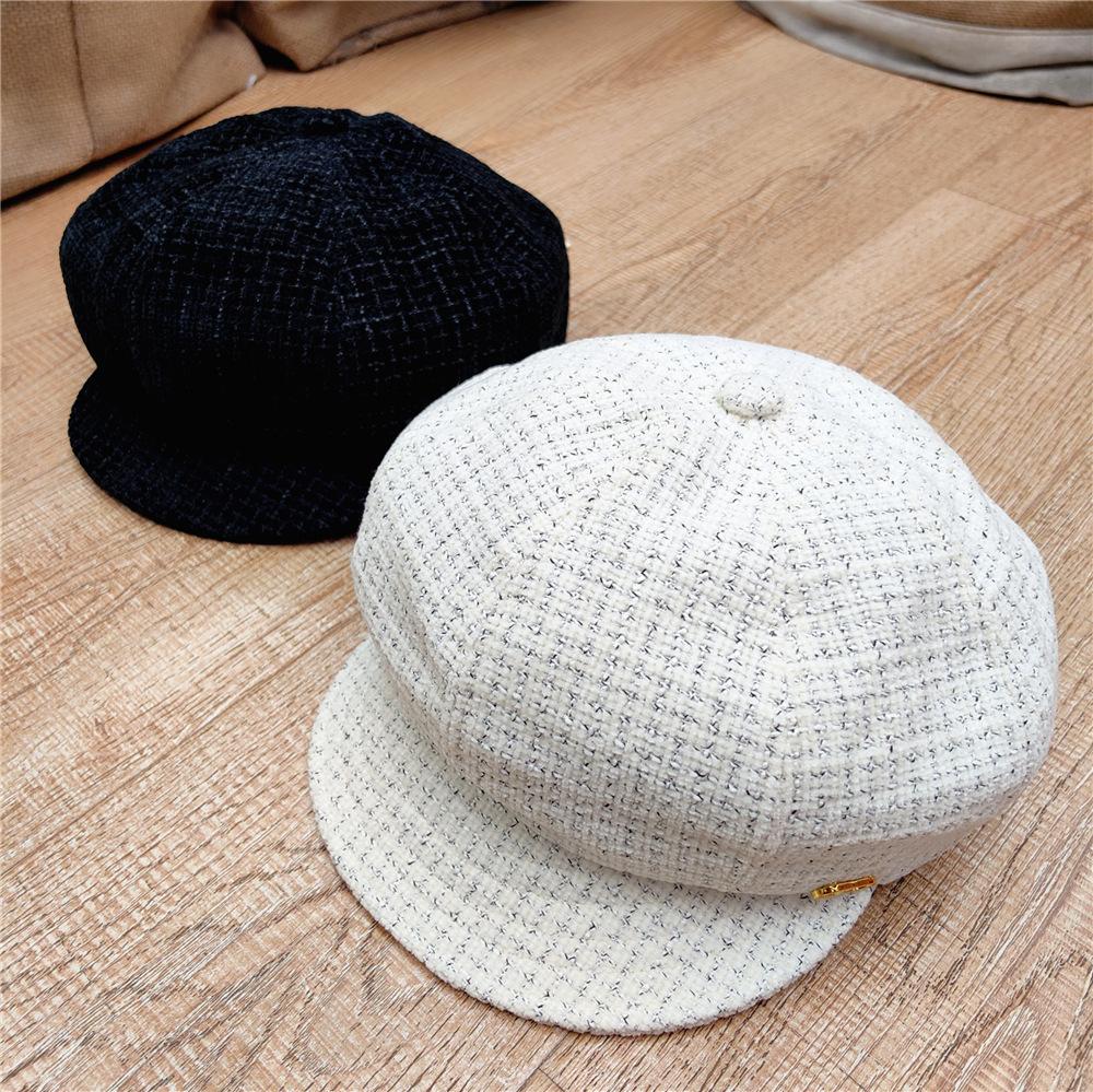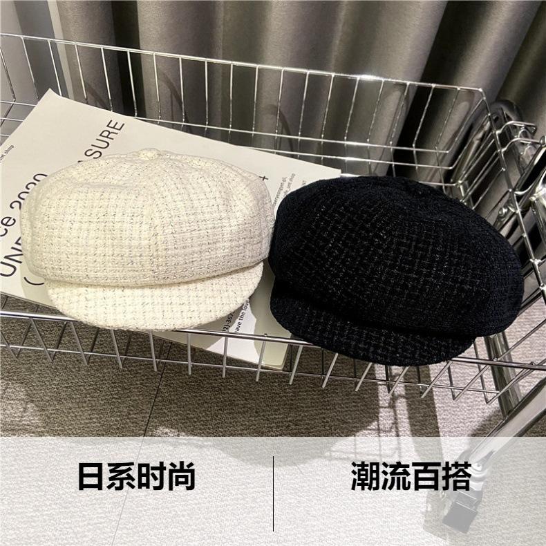 Sombrero octogonal estilo Chanel para mujer, sombrero de pintor de etiqueta pequeña estilo japonés, otoño e invierno, tejido mixto, sombrero de repartidor de noticias, boina moderna que combina con todo