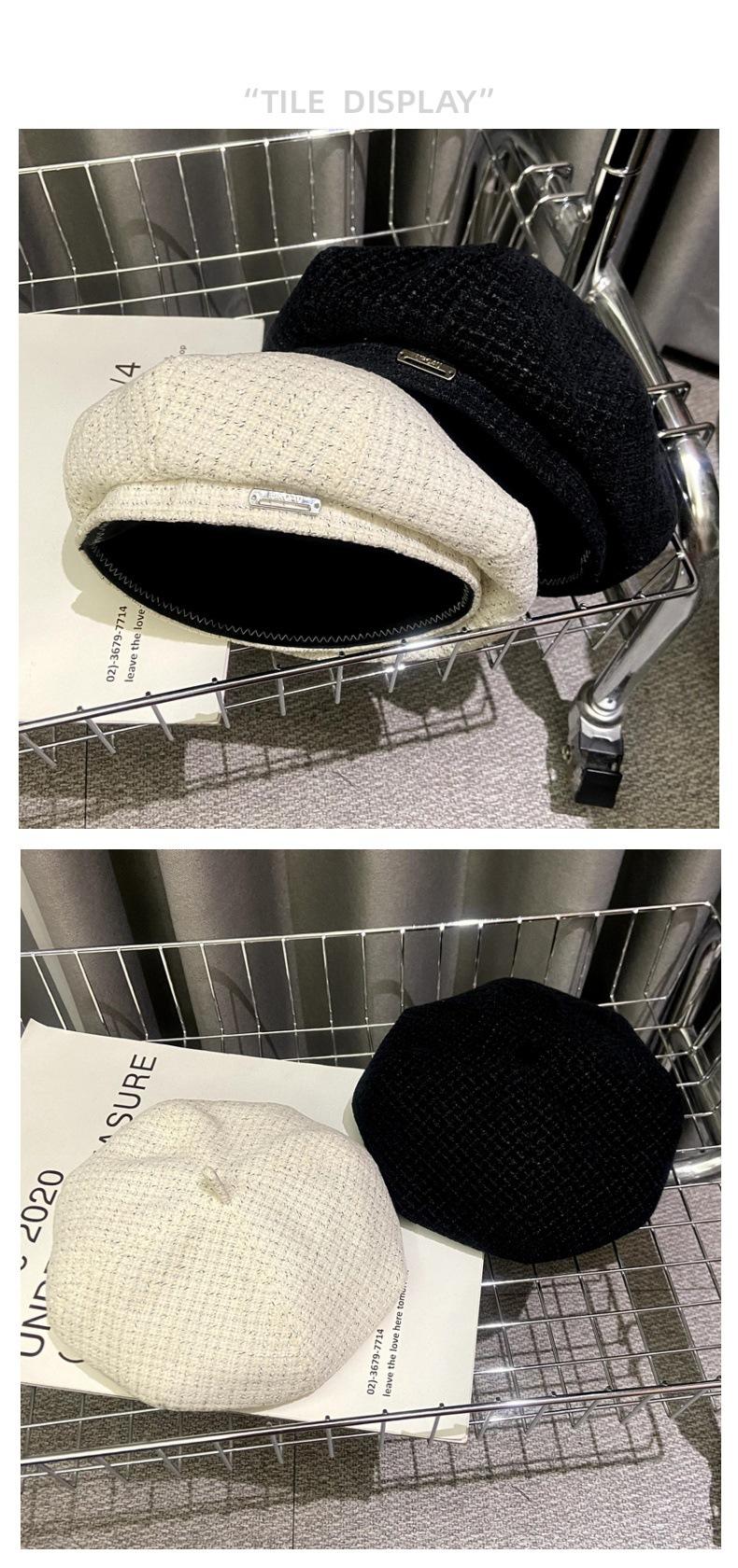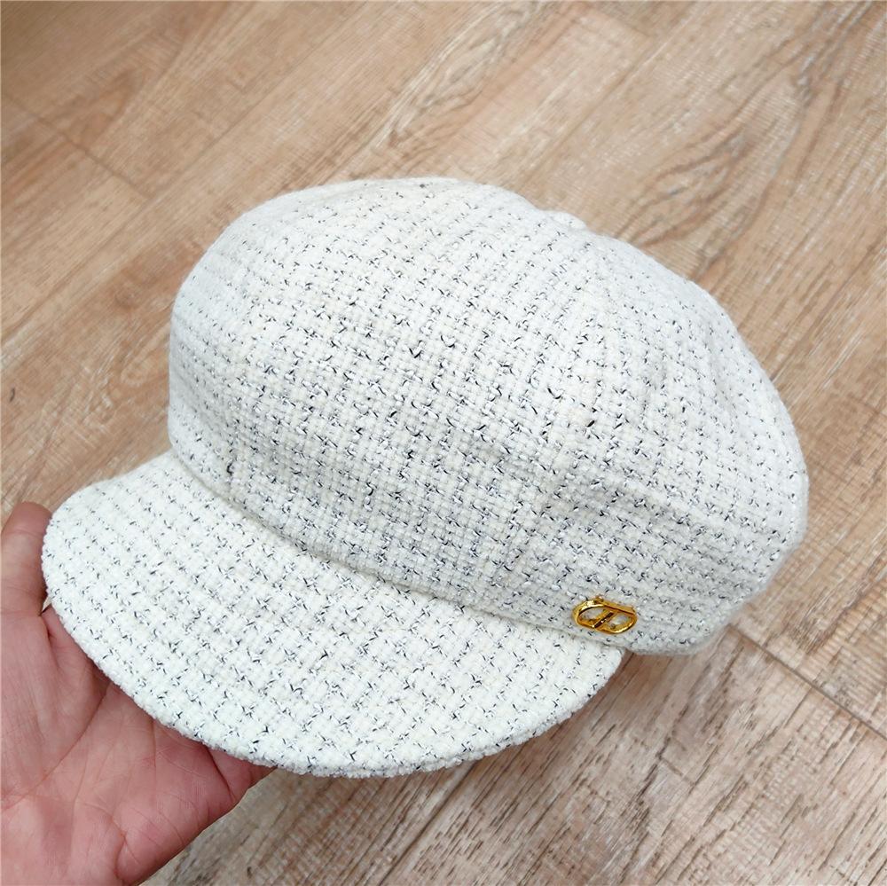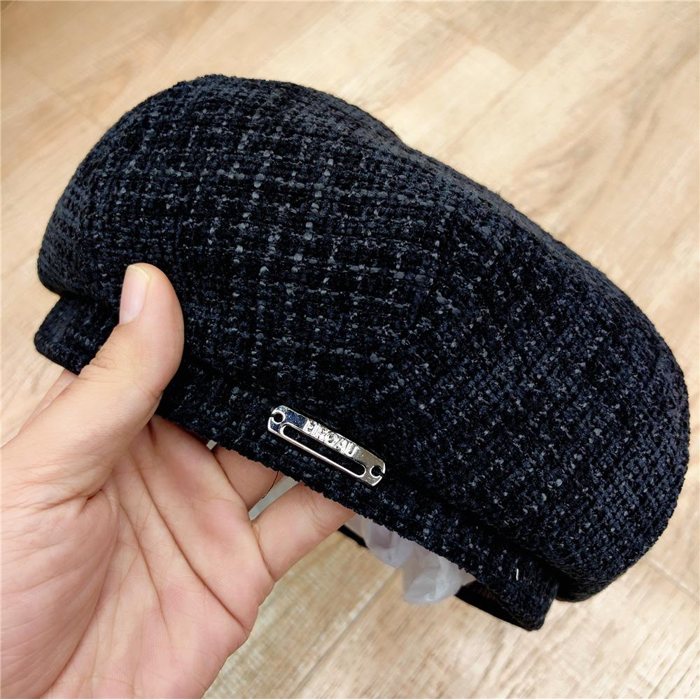Sombrero octogonal estilo Chanel para mujer, sombrero de pintor de etiqueta pequeña estilo japonés, otoño e invierno, tejido mixto, sombrero de repartidor de noticias, boina moderna que combina con todo