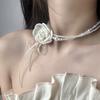 Collar de lazo de camelia de rosa blanco y negro, gargantilla vintage de cadena para clavícula, accesorios