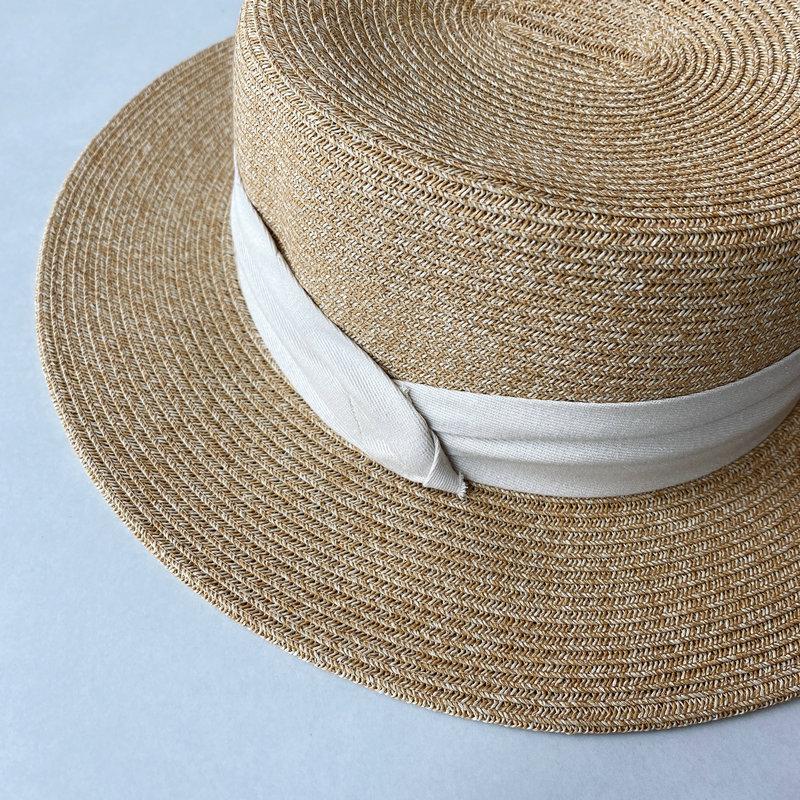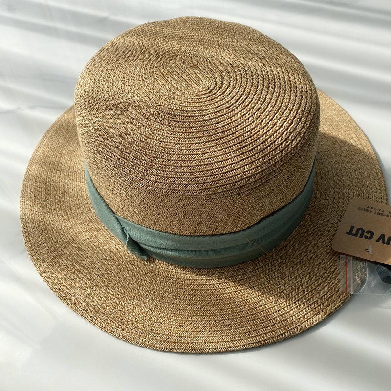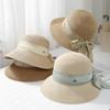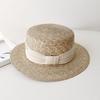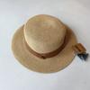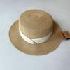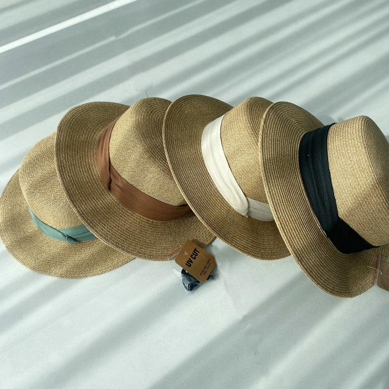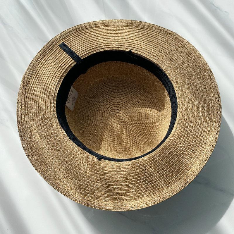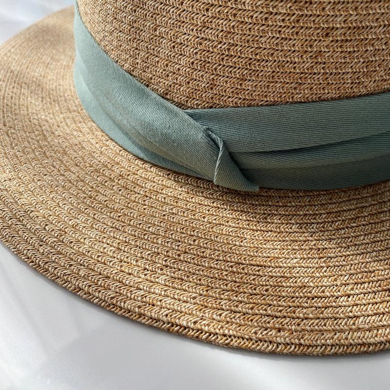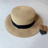 Sombrero de paja de ala plana con tres cintas dobladas para mujer, estilo coreano, para vacaciones en la playa, con borde grande, protector solar, combina con todo.