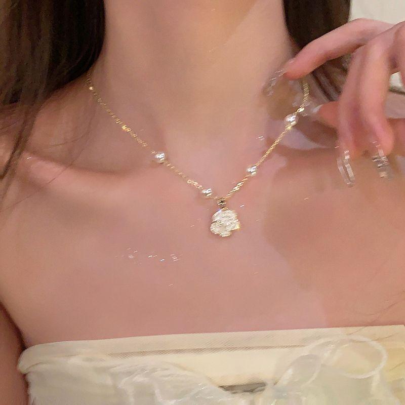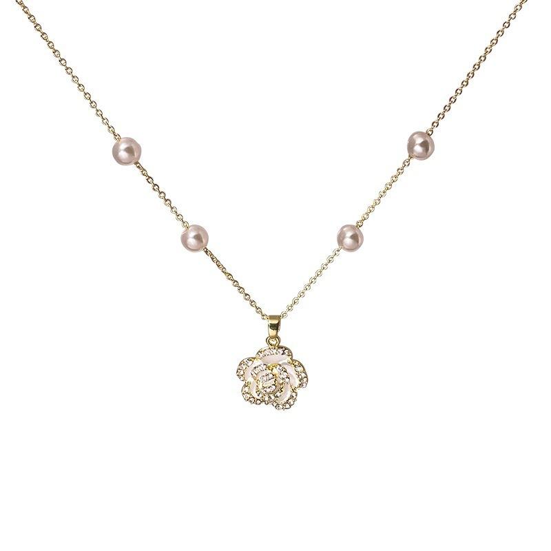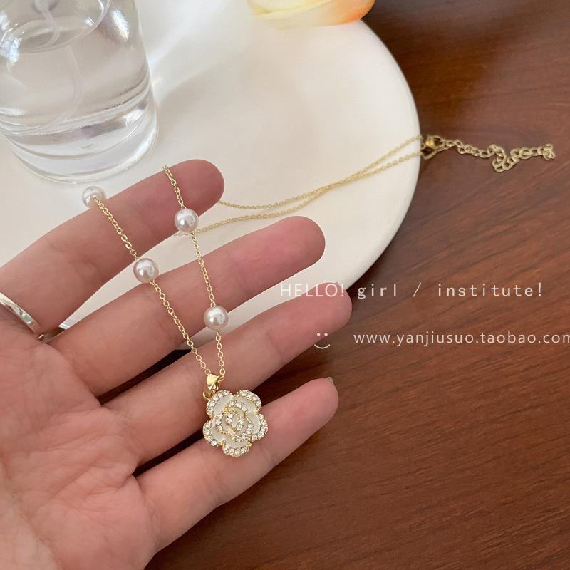 Collar de Perlas Camelia para Mujer 2023 Nuevo Celebridad de Internet Lujo Ligero Nicho Temperamento Cadena Clavícula Accesorios