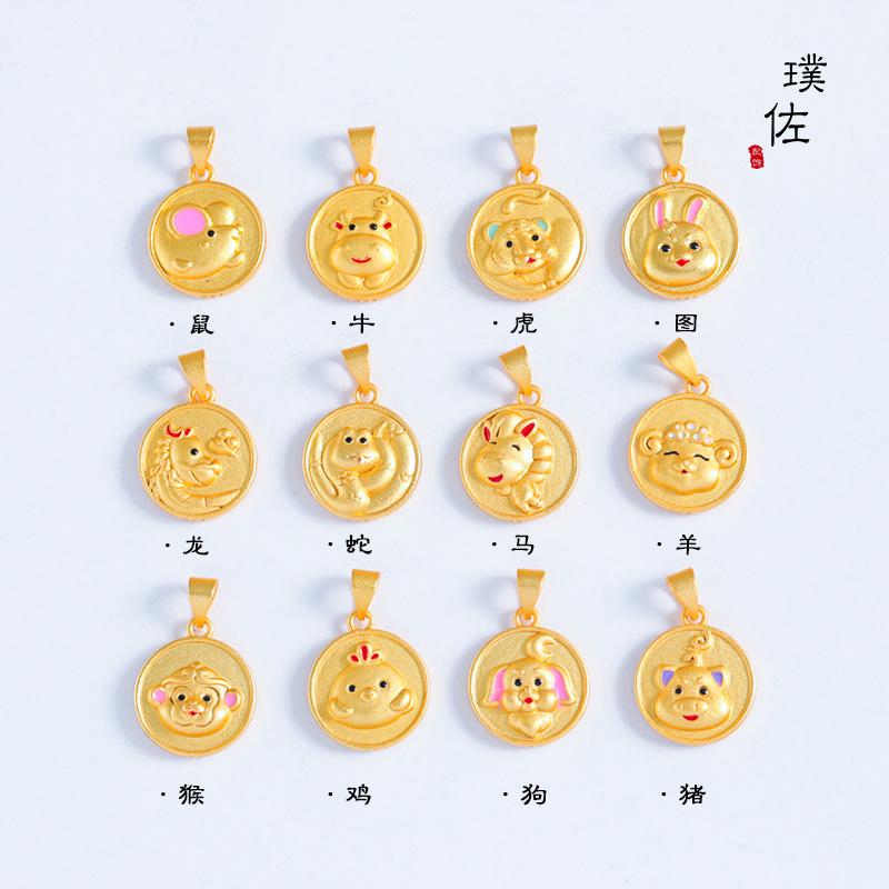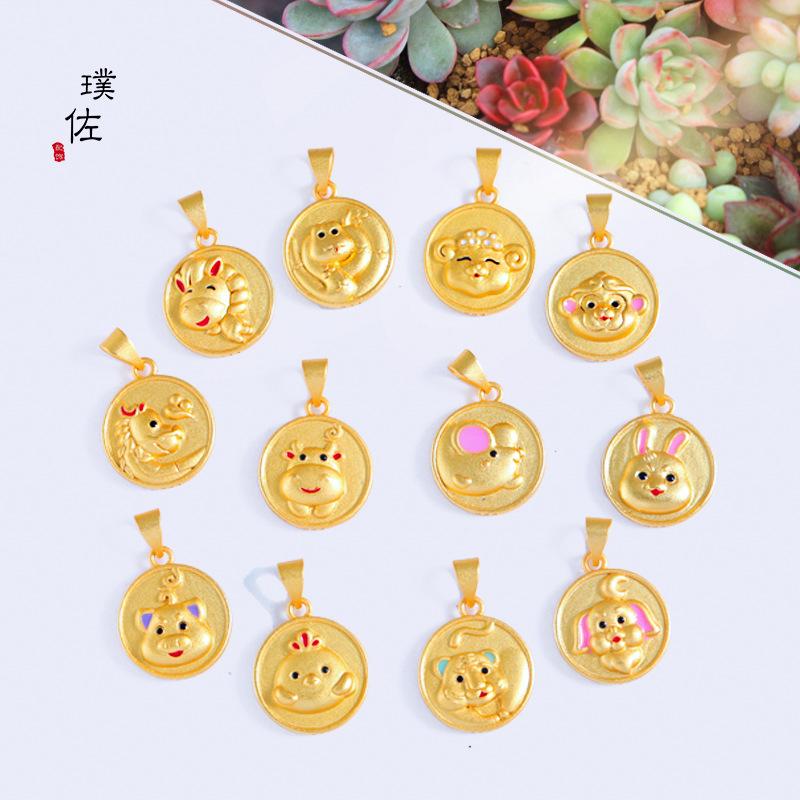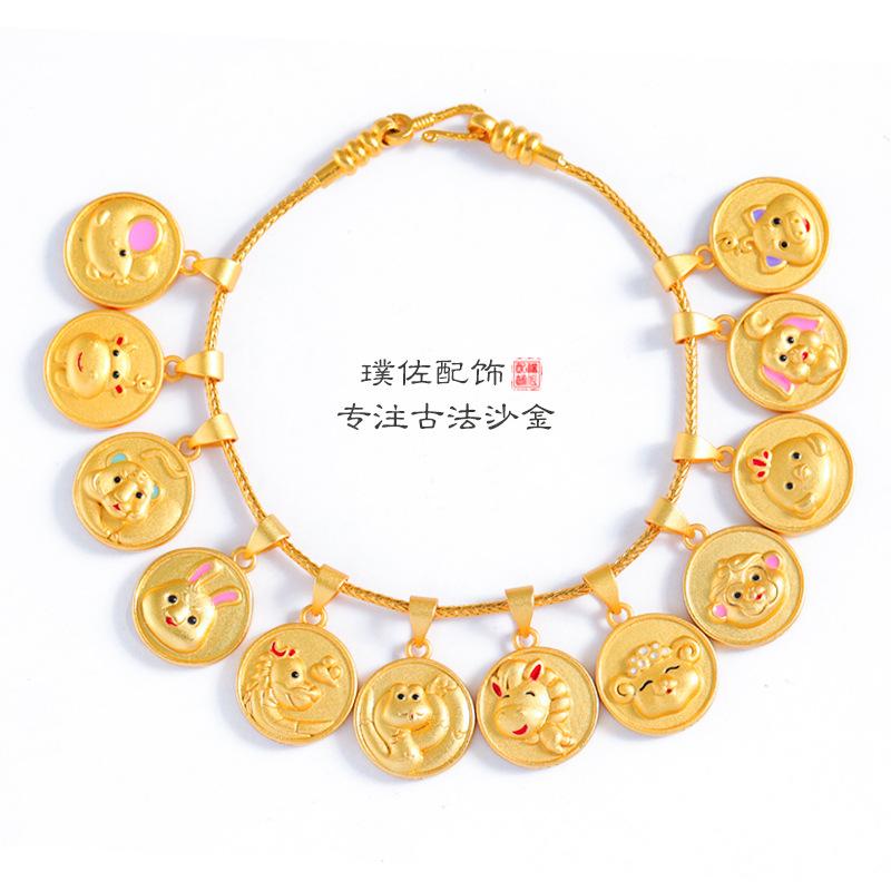Collar con colgante de dibujos animados de la marca del zodíaco de oro y arena de Vietnam, chapado en cobre, con gotas de aceite, pulsera francesa antigua de oro para niños y niñas.