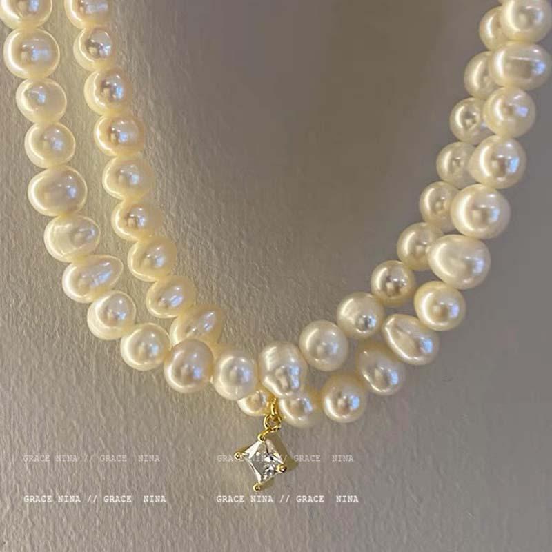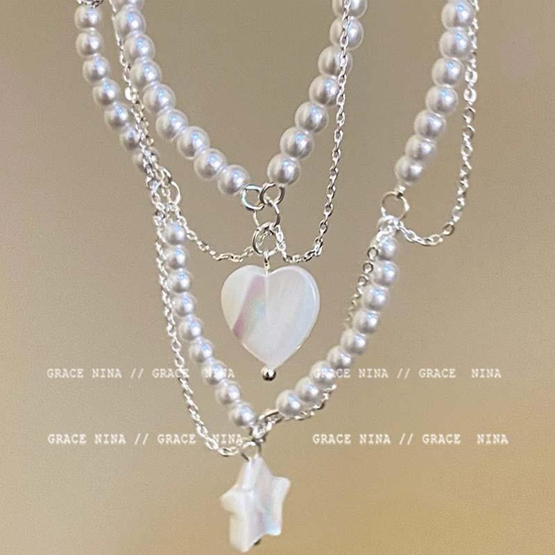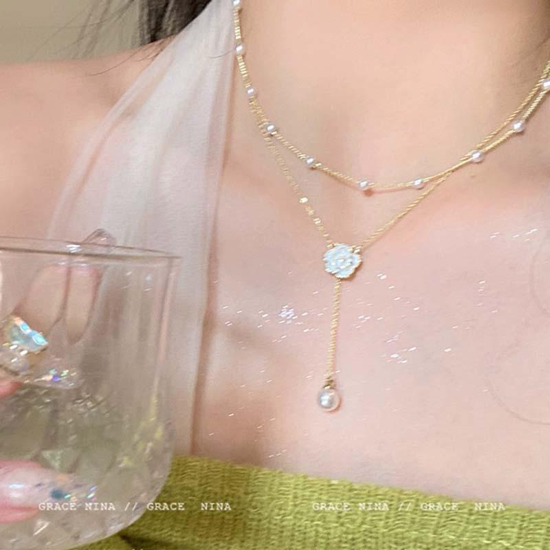 1# necklace-golden camellia flower double layer, 5# Necklace-Silver Broken Silver Pearl, 9# Necklace-White Dia...
