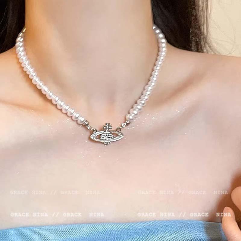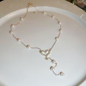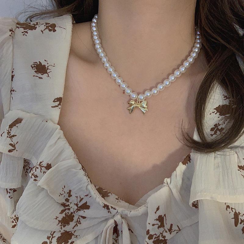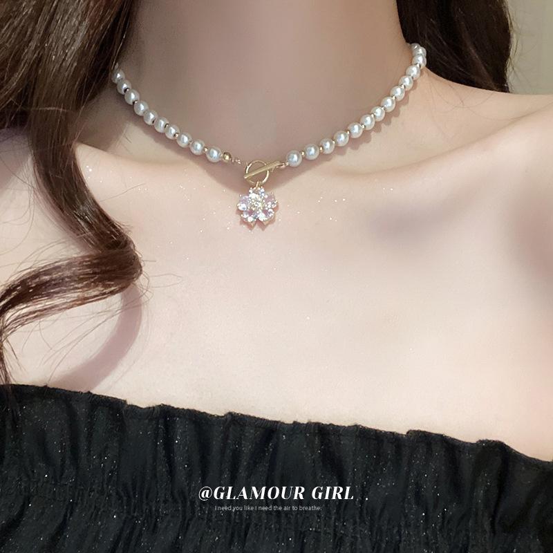 Collar de flores de perla retro francés, elegante, a la moda, con temperamento que combina con todo, cadena de clavícula ligera, de lujo, nuevo collar