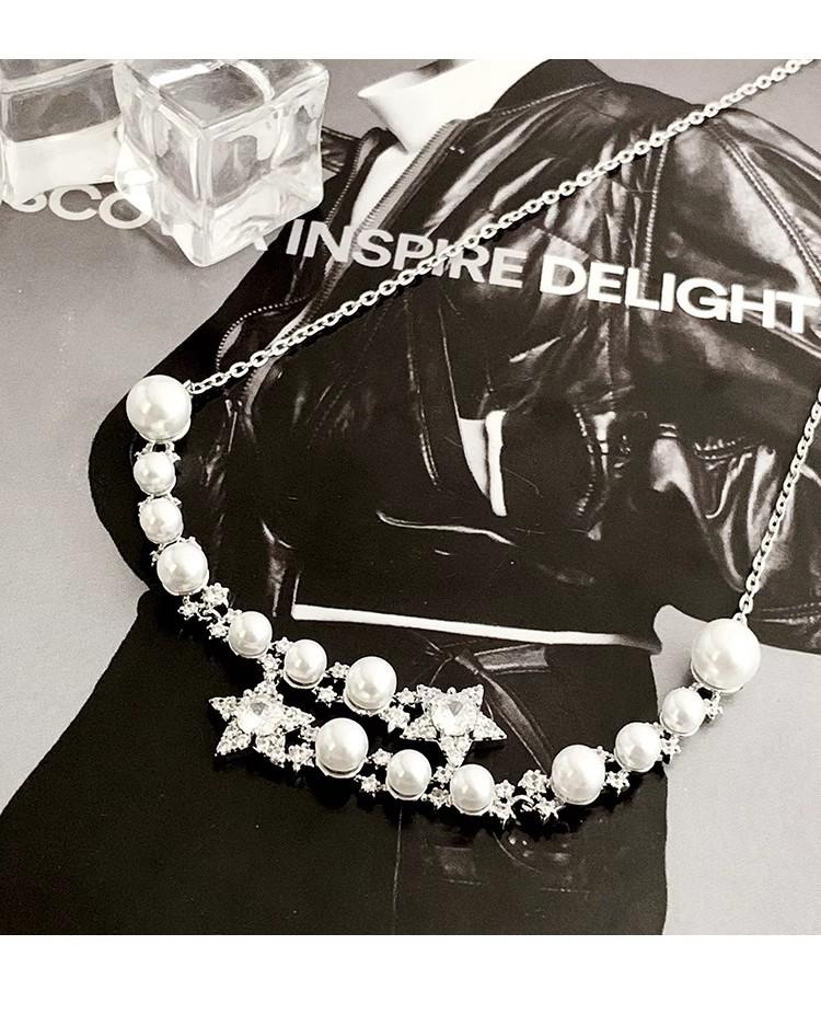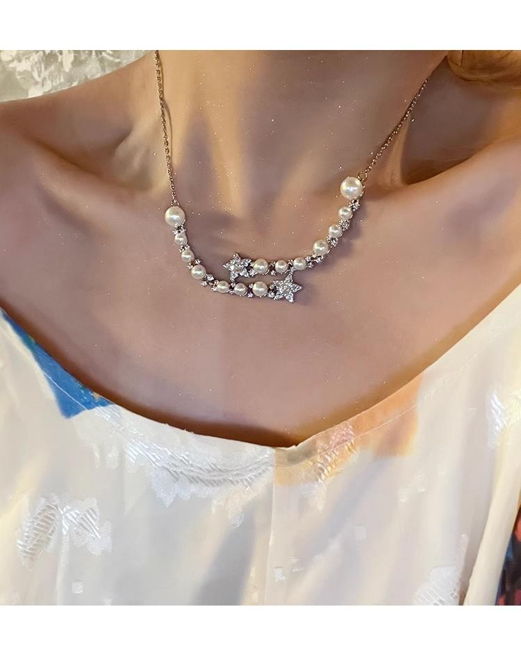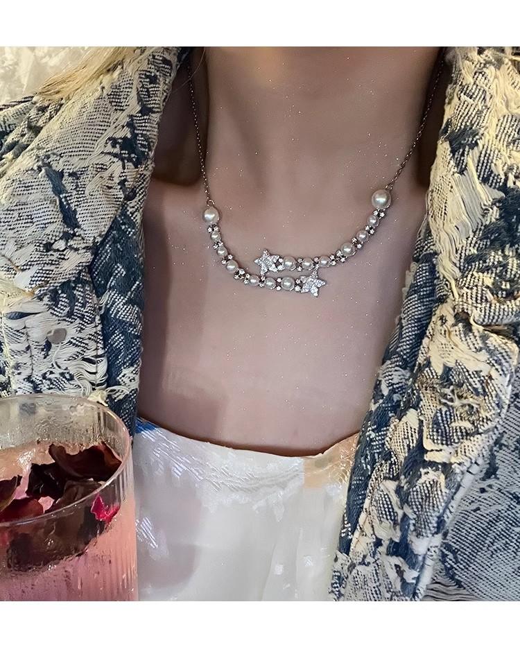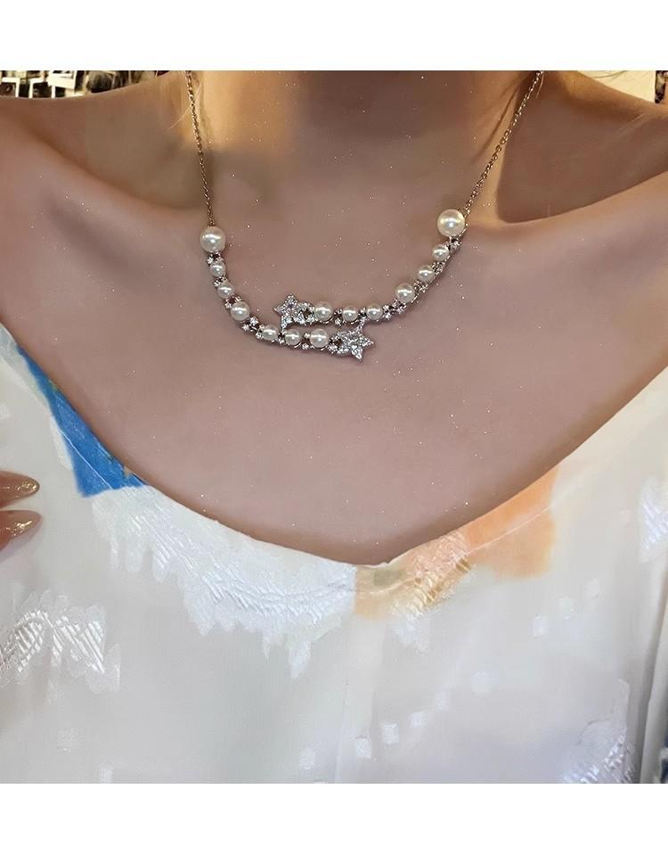 Collar de perlas de estrella de cinco puntas con diamantes de imitación de Moon Splash Star River, collar de estrella elegante de lujo de alta calidad con temperamento femenino, cadena de clavícula