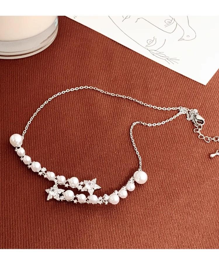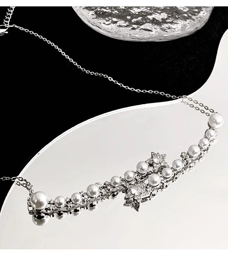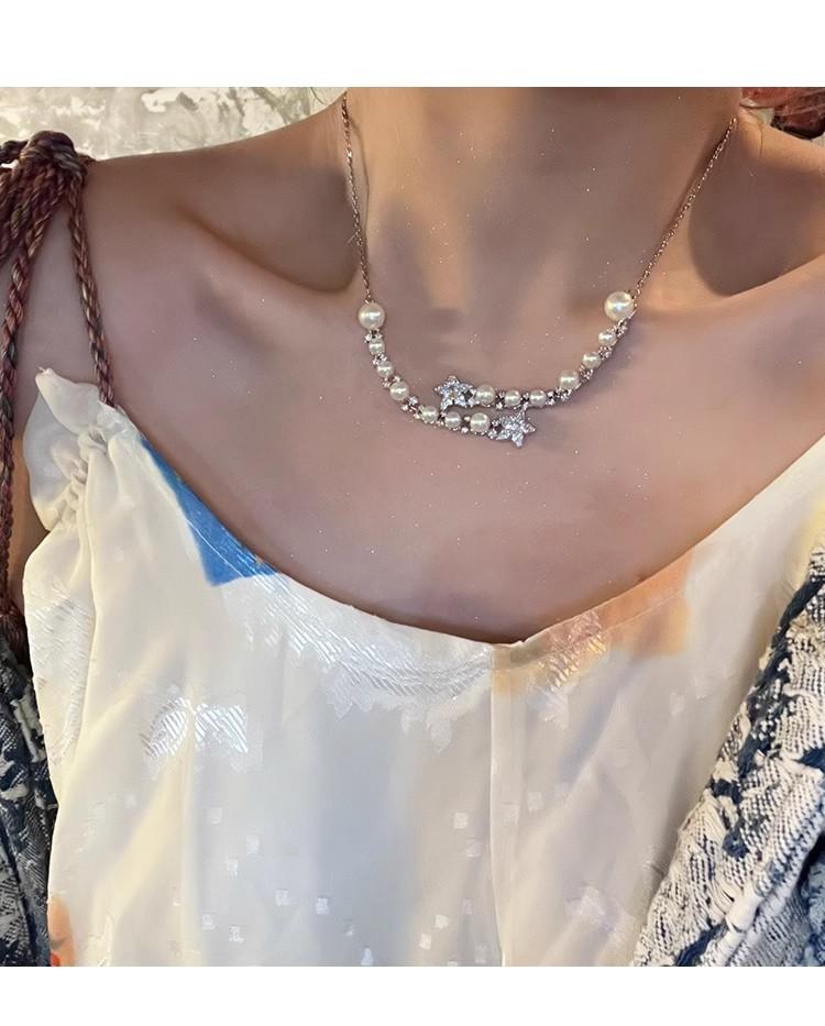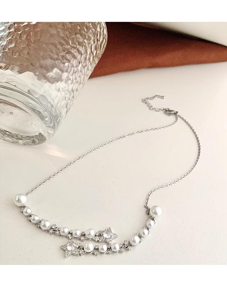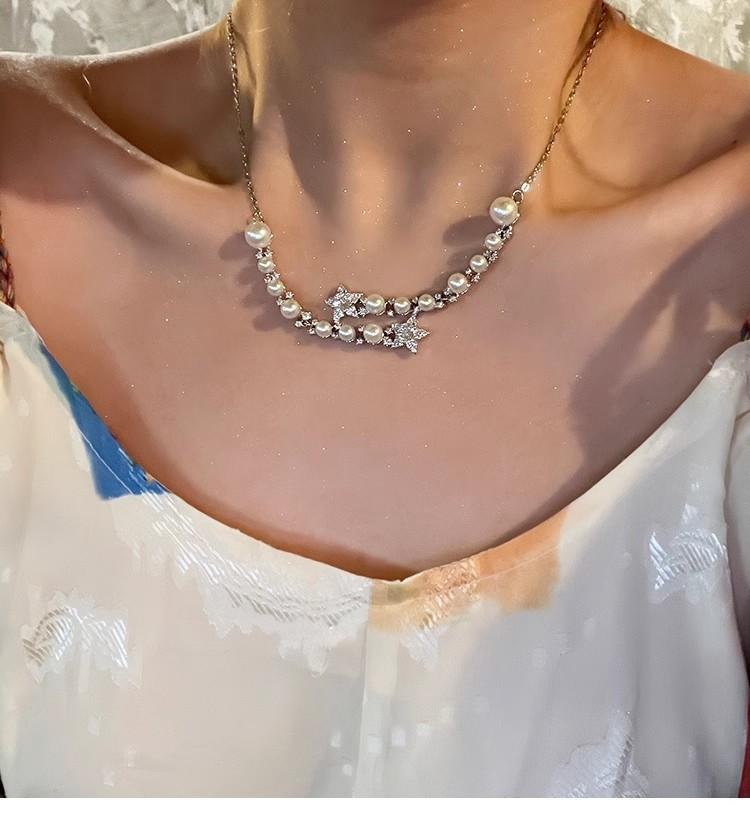 Collar de perlas de estrella de cinco puntas con diamantes de imitación de Moon Splash Star River, collar de estrella elegante de lujo de alta calidad con temperamento femenino, cadena de clavícula