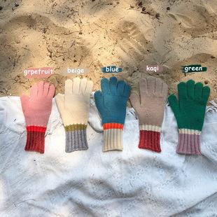 | Guantes de punto contrastantes, populares en otoño e invierno, tipo B, con pantalla táctil, de lana de color sólido y cinco dedos, para hombres y mujeres. |