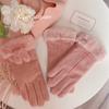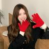 | Guantes de felpa coloridos de estilo coreano para mujer en invierno, bonitos guantes de lana de punto grueso con cinco dedos para estudiantes que montan en bicicleta. |