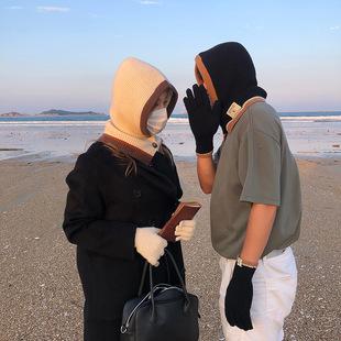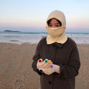 | Gorro de punto coreano de invierno con máscara, gorro de una pieza, gorro de color sólido, orejeras de lana para mujer, gorro de lana con máscara al por mayor |