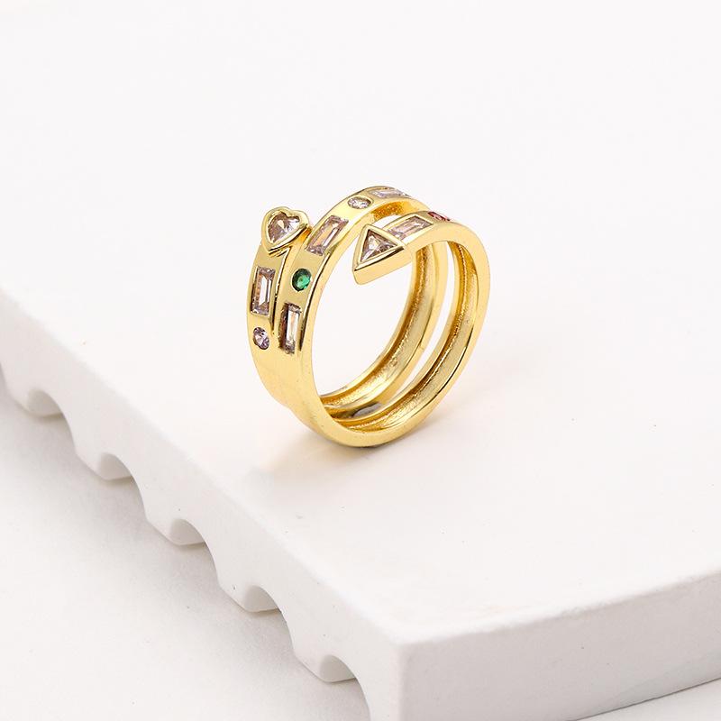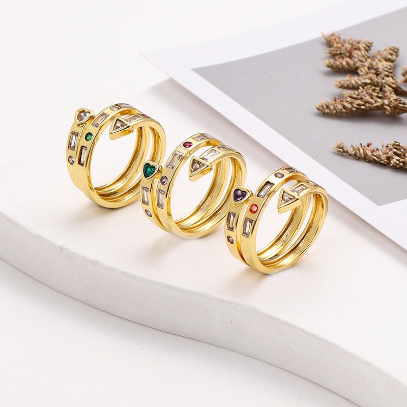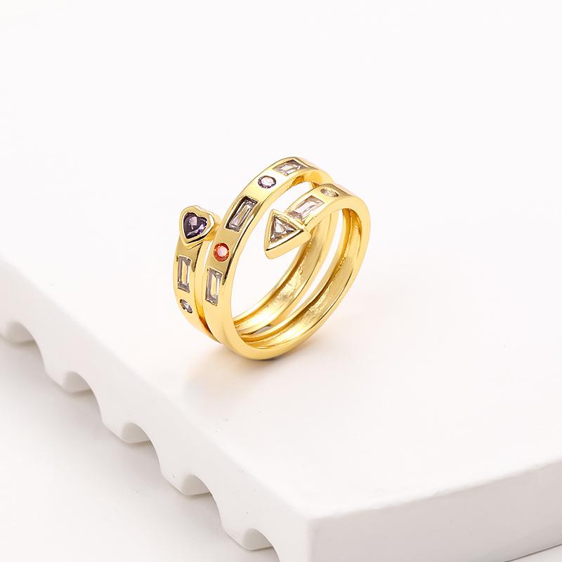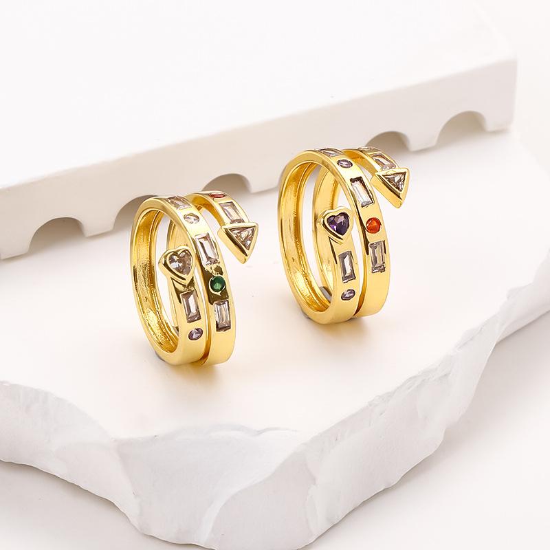 Nuevo anillo abierto de flecha de amor de circonita microincrustada multicapa color cobre chapado en oro anillo de personalidad creativa europea y americana