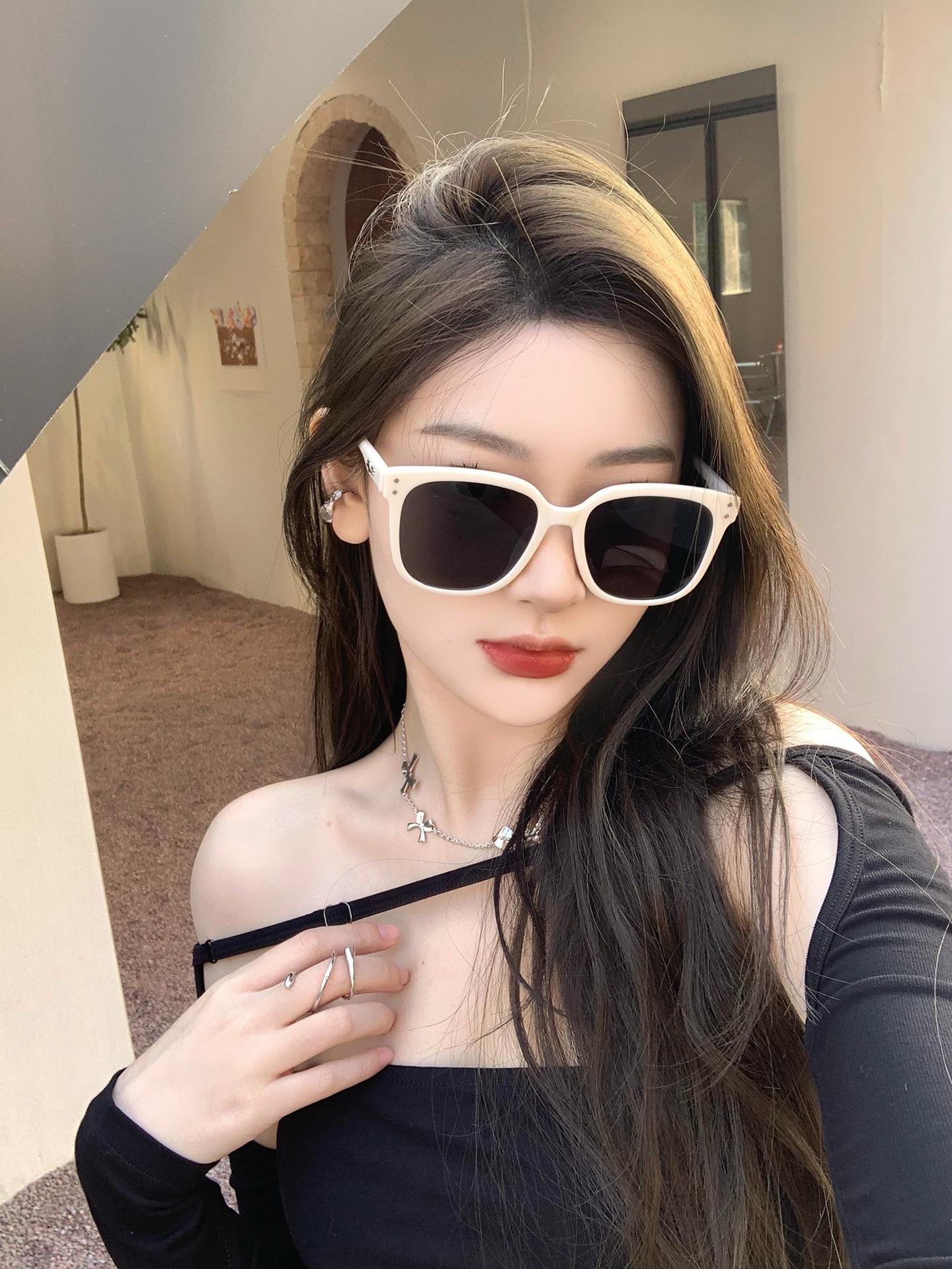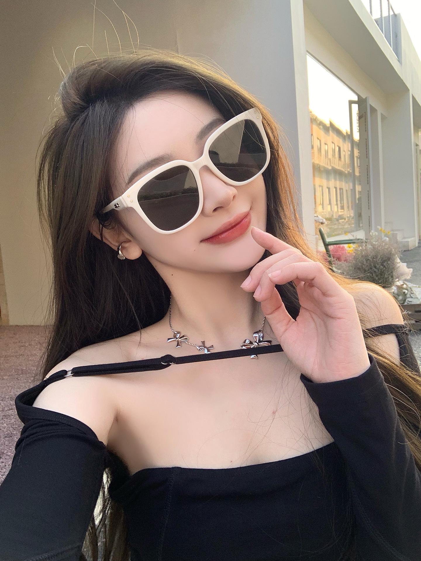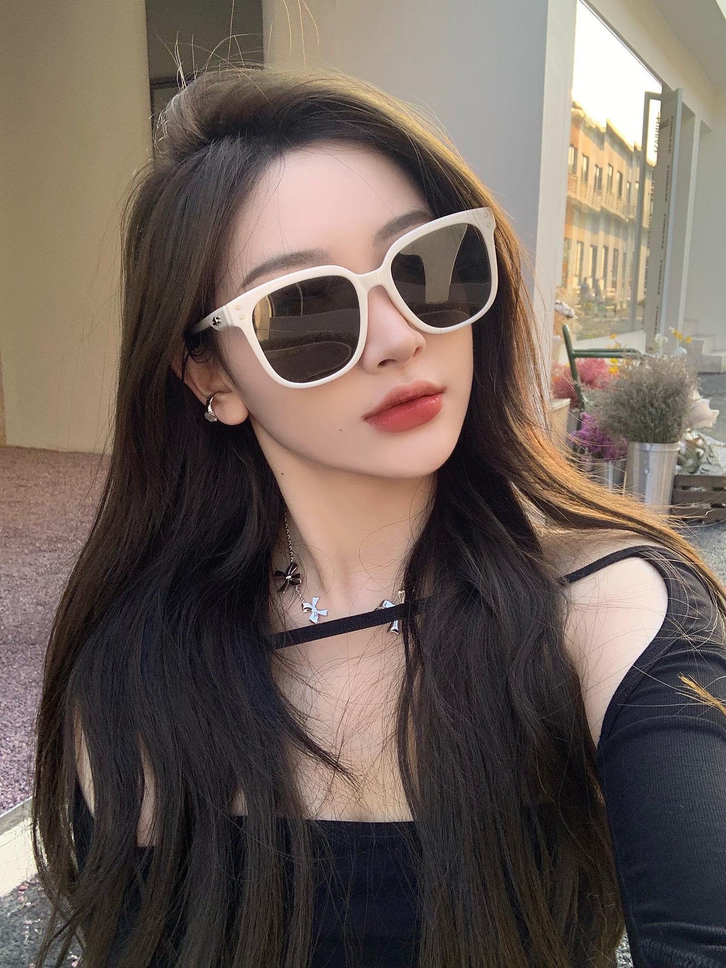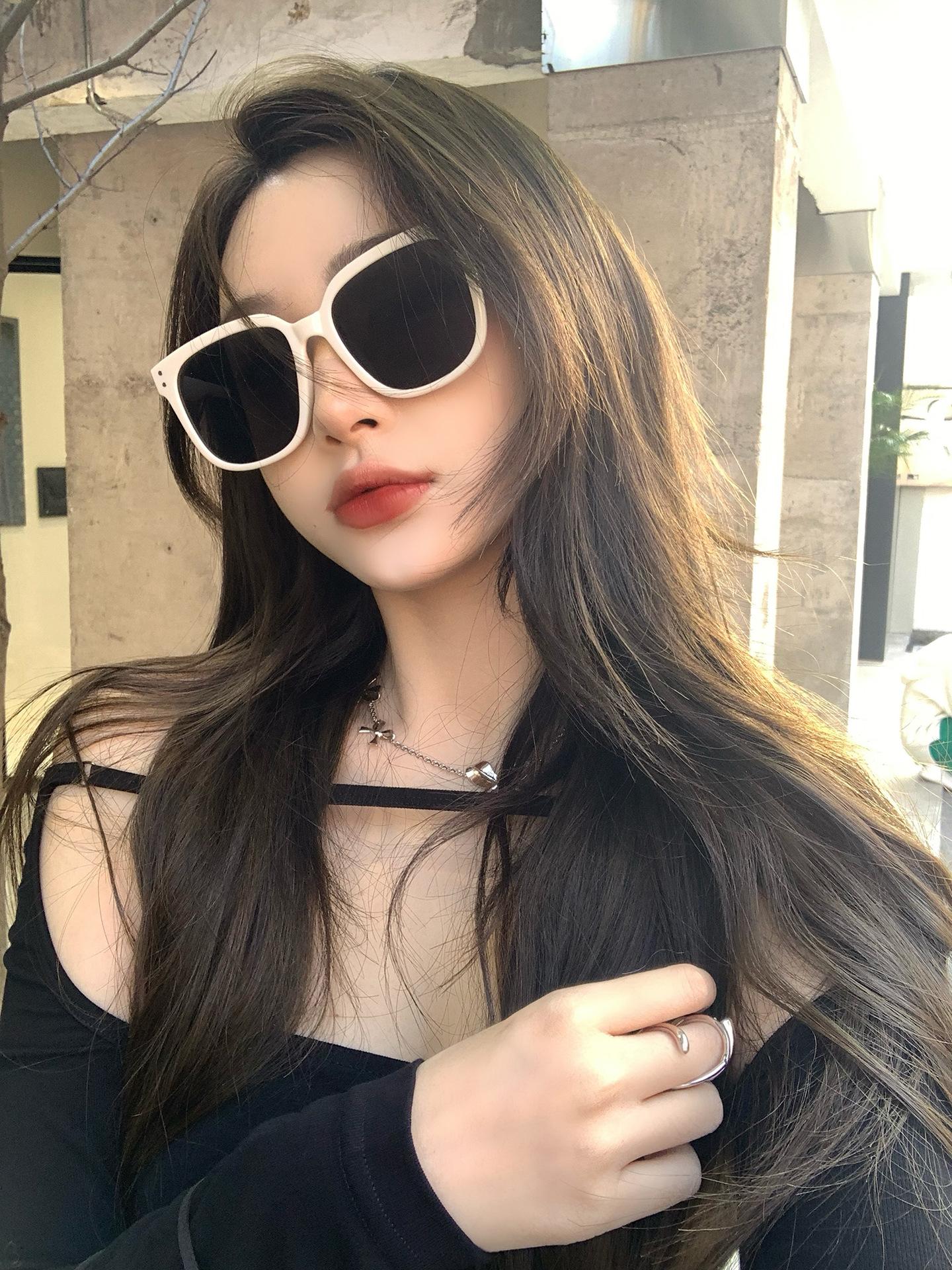 Lentes de Sol de Montura Blanca para Mujer, Lentes de Sol Nuevos de Alta Gama 2024, Gafas Anti-UV Adecuadas para Rostros Cuadrados y Redondos, Montura Grande