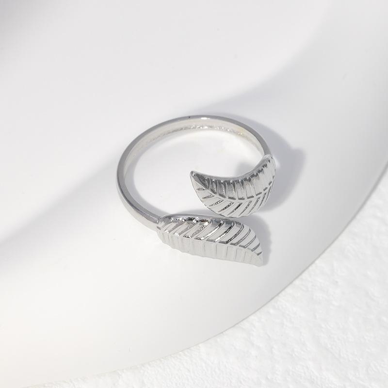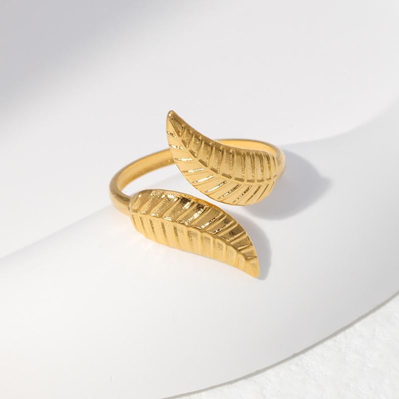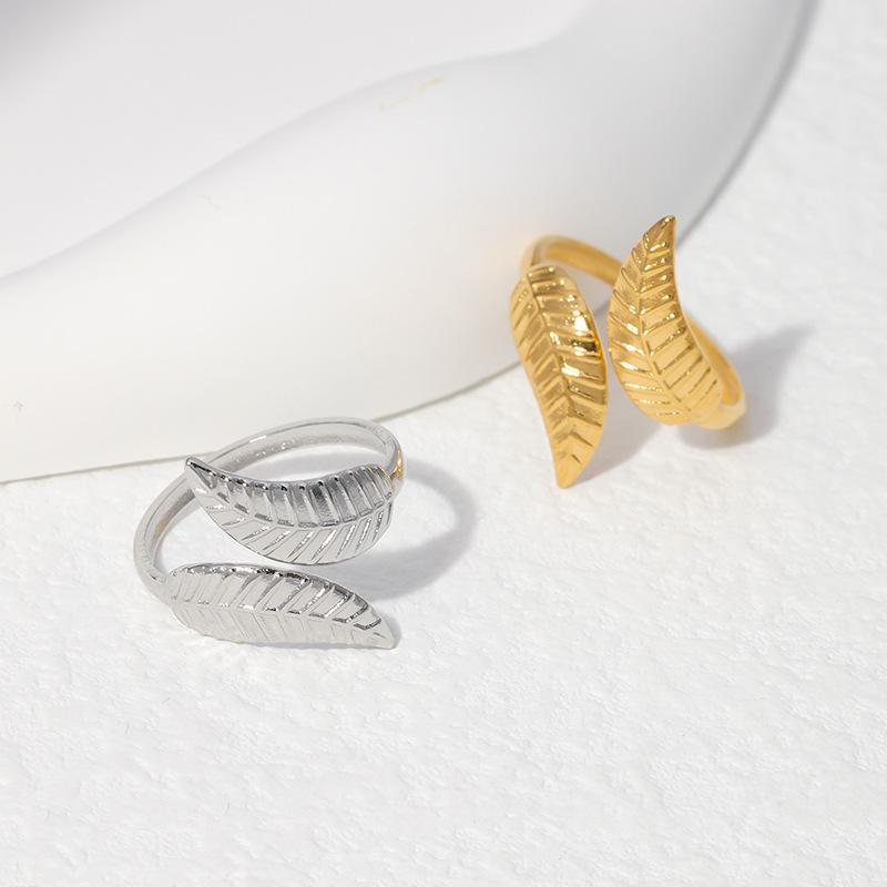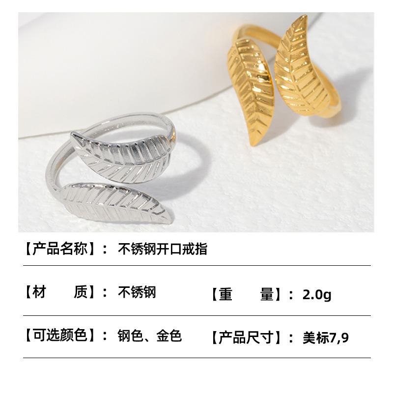 Anillo Abierto de Acero Inoxidable Europeo y Americano Transfronterizo para Mujer, Anillo que No se Desvanece, Diseño de Nicho de Hoja, Anillo de Acero de Titanio al por Mayor