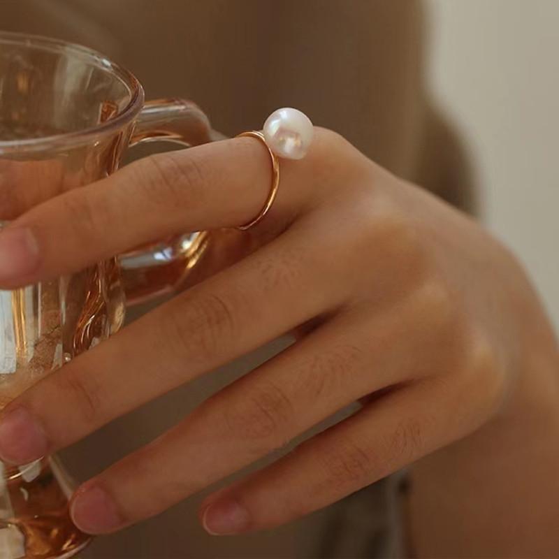 Anillo de perla con personalidad de moda para mujer, diseño de nicho, anillo sencillo para pareja, anillo de dedo con luz de moda, anillo de lujo de alta calidad con sentido