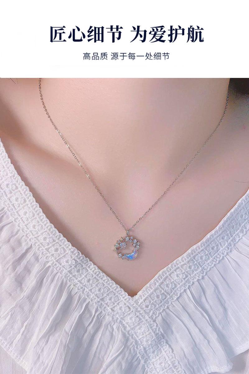 Star Moon Necklace (Stainless Steel Plated Platinum)