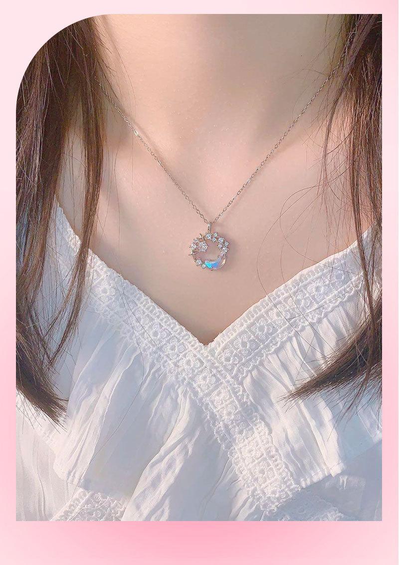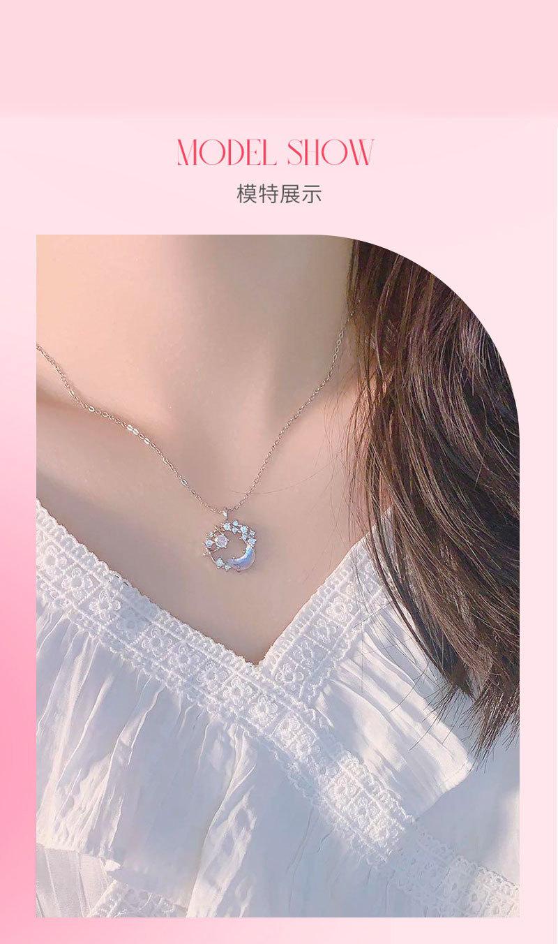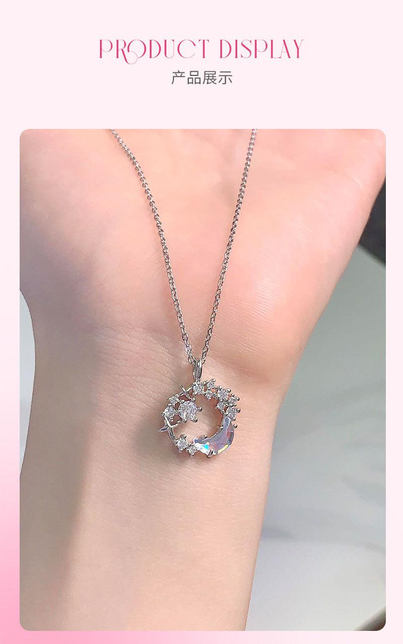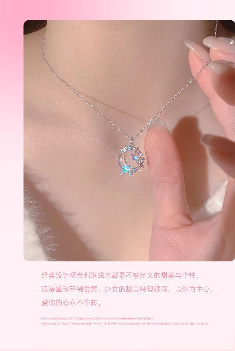 Collar de luna y estrella de fantasía de diseño original para mujer, ligero, de lujo, elegante, con colgante de circón, cadena de clavícula de acero inoxidable con estrella y luna, a la moda.
