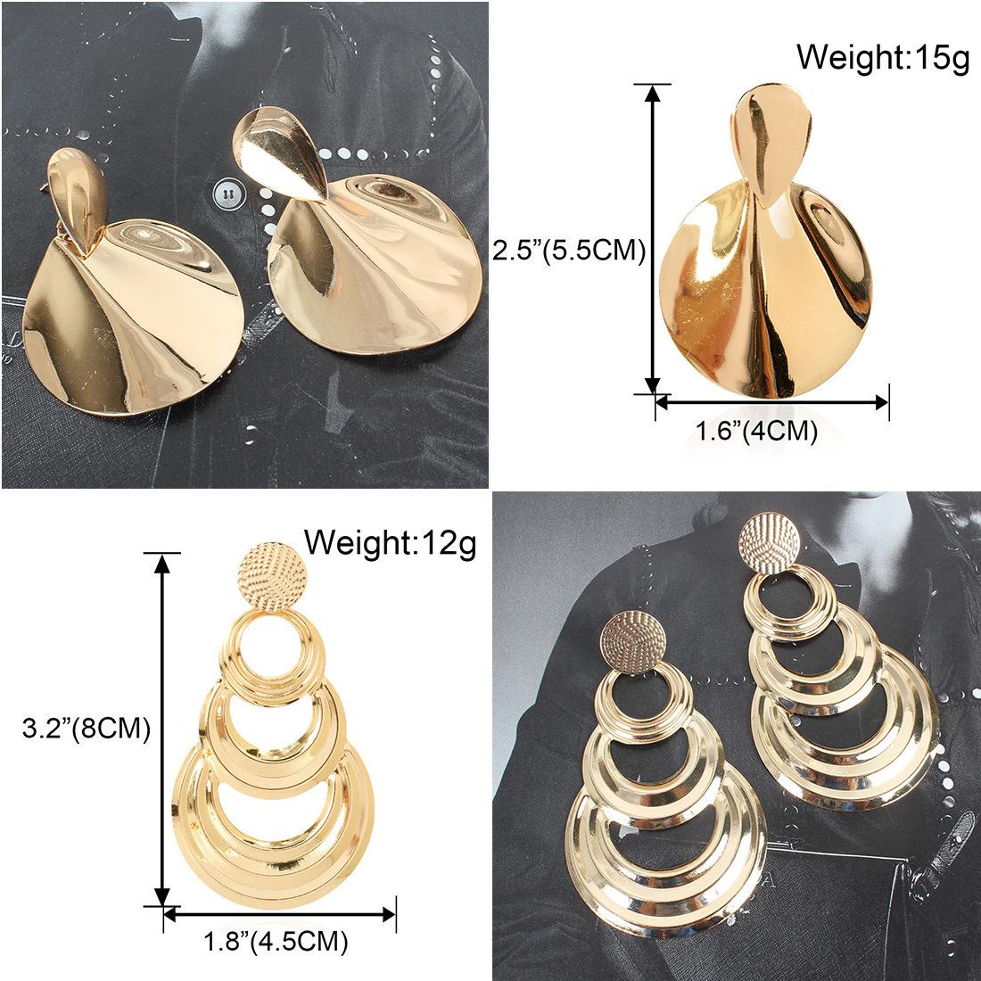 | Pendientes largos de metal exagerados, redondos y geométricos de comercio exterior transfronterizo, pendientes dorados para mujer, pendientes europeos y americanos F16050 yenes5.0 Compre ya |