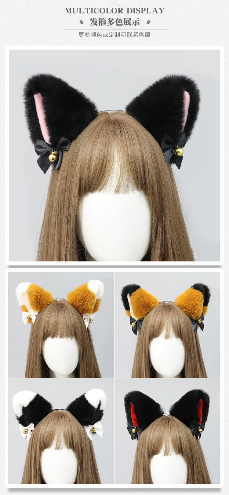 Diadema con orejas de gato de peluche hecha a mano, divertida, con lazo y orejas de gato, accesorios para el cabello, diadema con orejas de gato de imitación japonesa.
