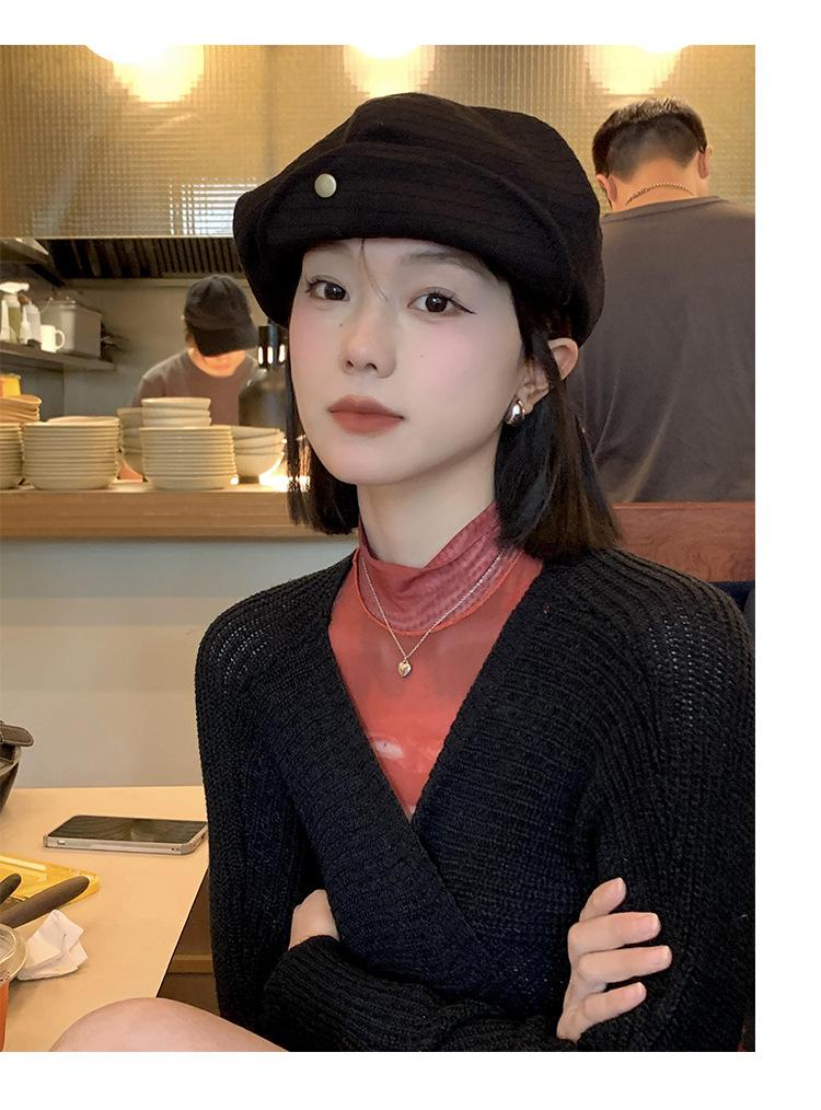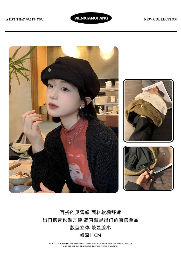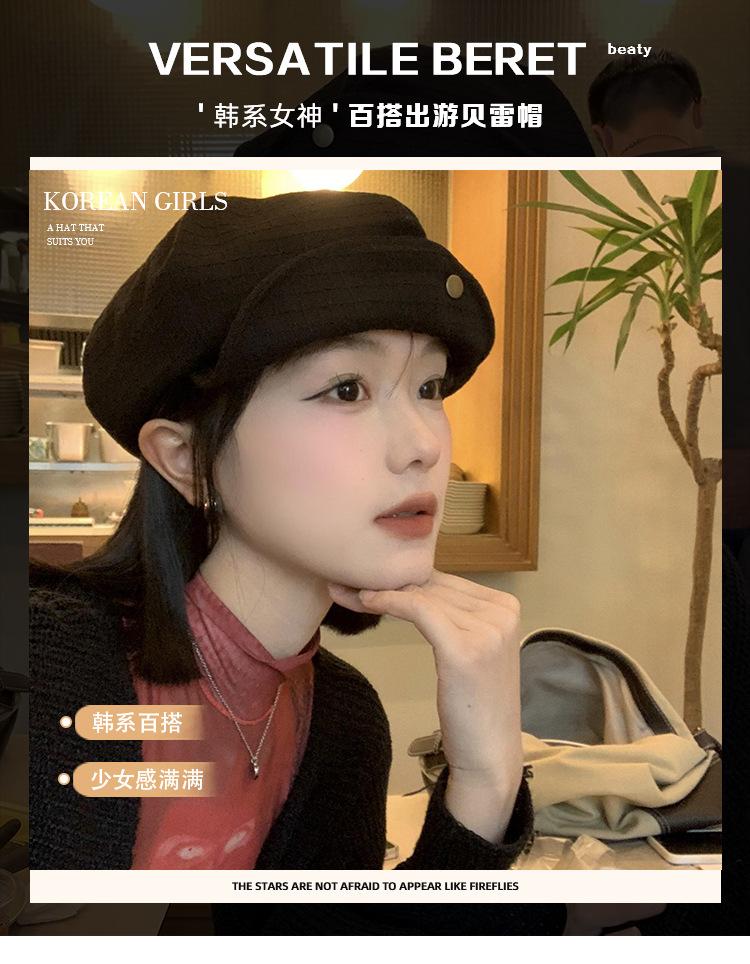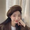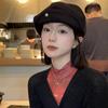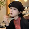 Boina negra versátil de estilo coreano para otoño e invierno, con diseño de cara pequeña, sombrero de pintor Beilei, sombrero artístico de gran circunferencia de cabeza para mujer
