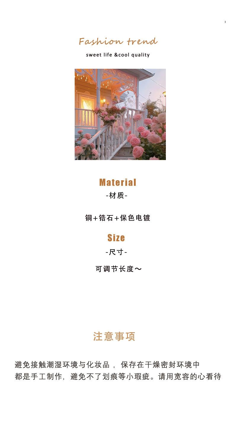 Explicación del uso PrecaucionesNuestro galvanizado es más grueso que el galvanizado convencional, el color es más duradero y la textura es mejor. Evite el contacto con el agua durante el uso y con productos químicos (cosméticos, perfumes, etc.). Manténgalo seco y sellado cuando no lo use. Las joyas son frágiles, así que no las frote y cuídelas bien.