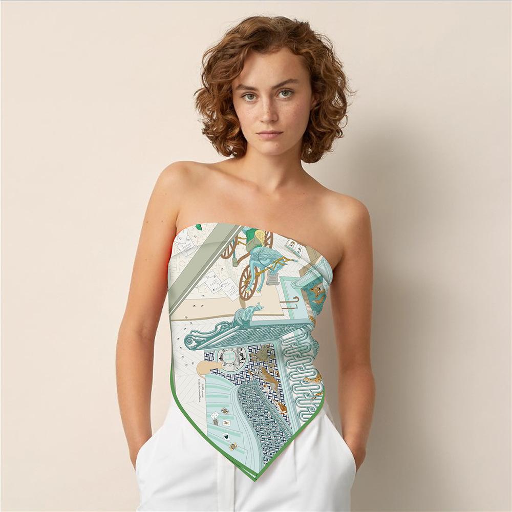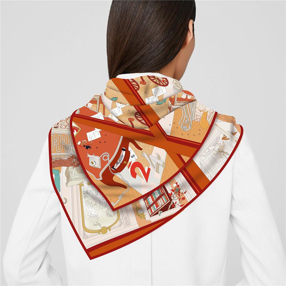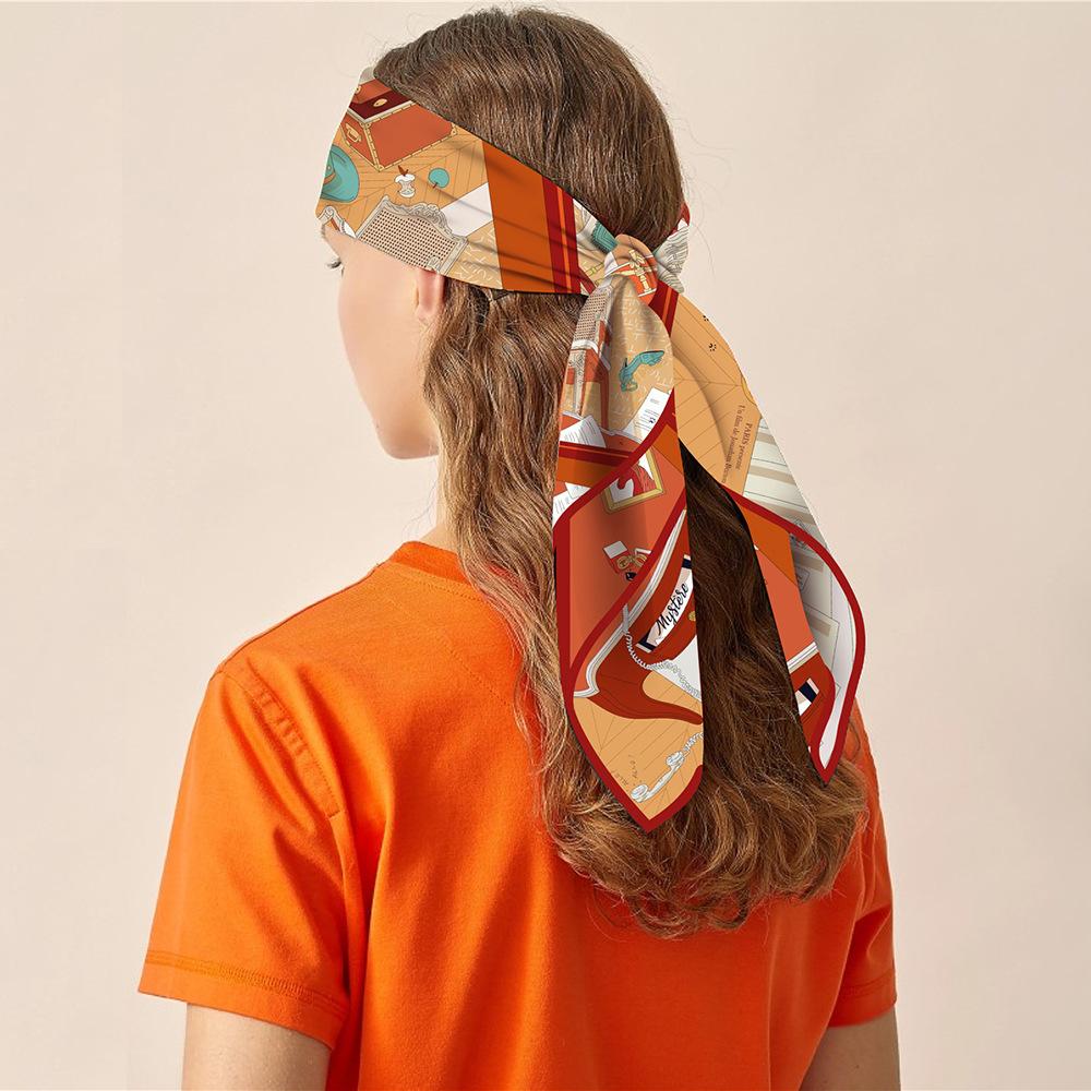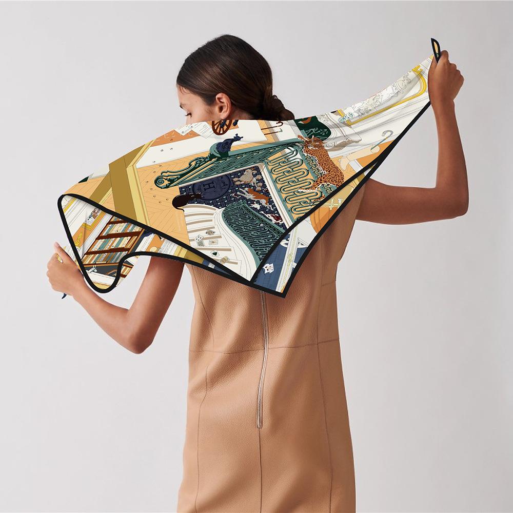 Estilo Coreano Verano 90cm Chal Delgado Bufanda Cuadrada Grande Sarga Máquina Lado Mujer Moda Todo-combina Pañuelo Bufanda