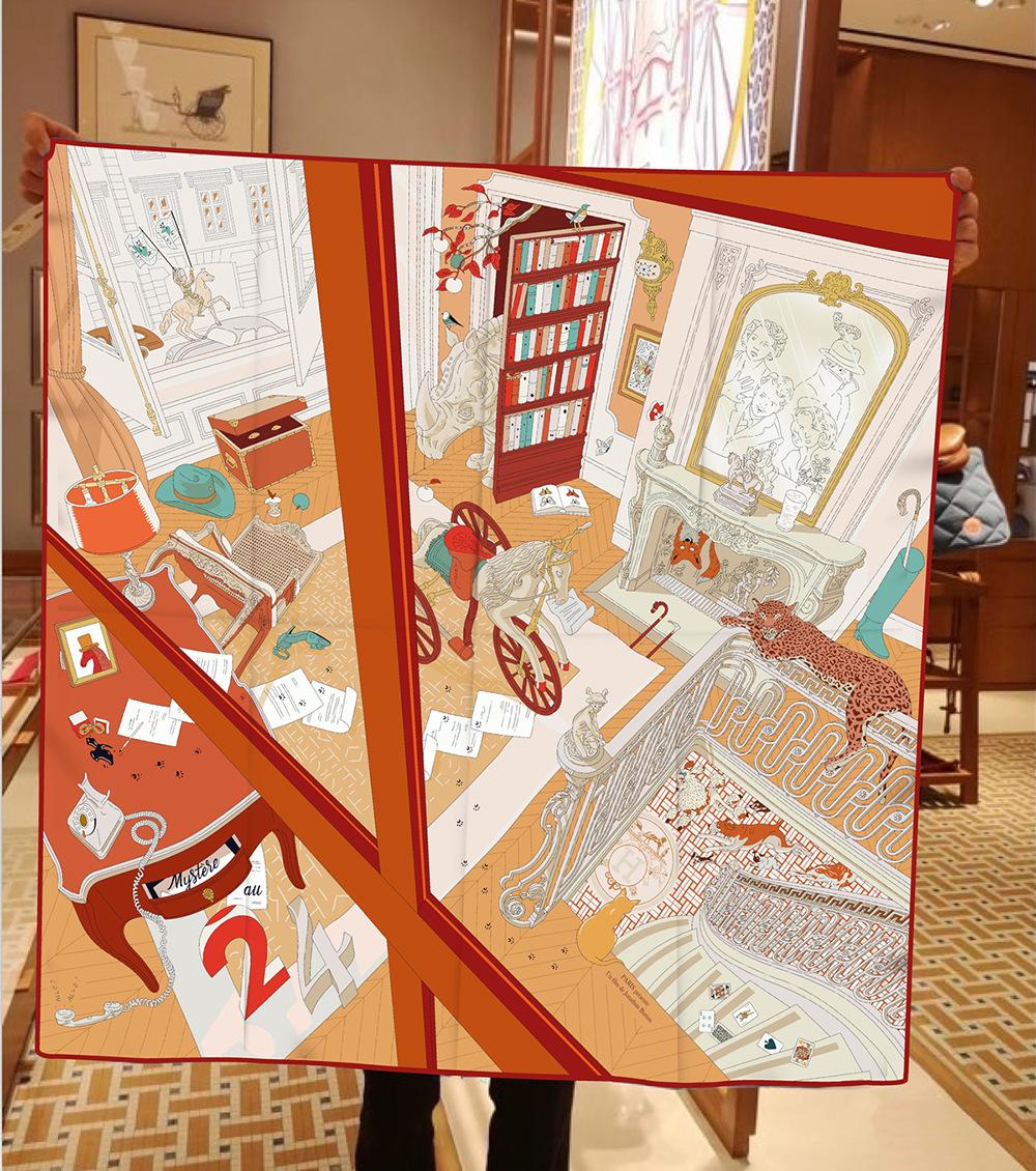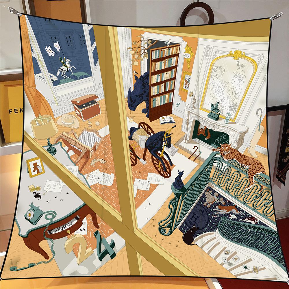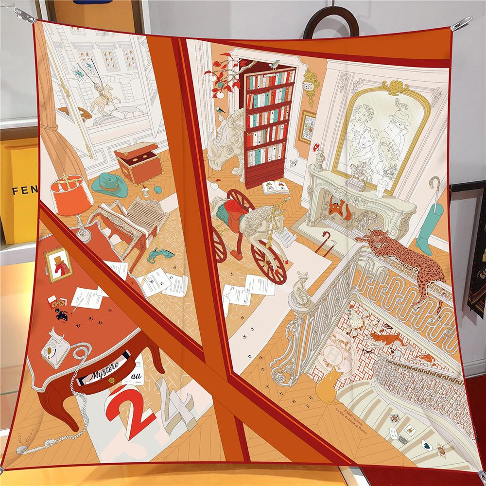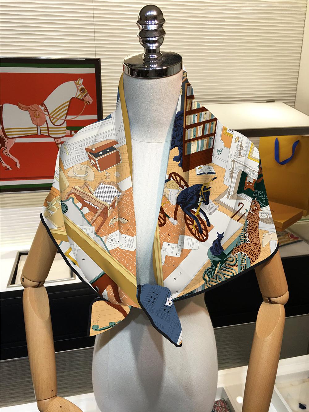 Estilo Coreano Verano 90cm Chal Delgado Bufanda Cuadrada Grande Sarga Máquina Lado Mujer Moda Todo-combina Pañuelo Bufanda