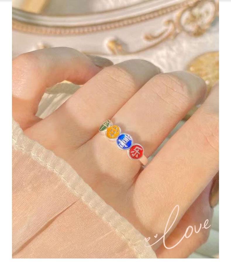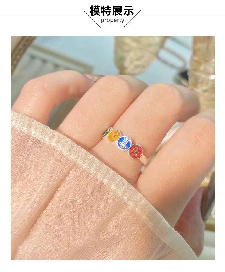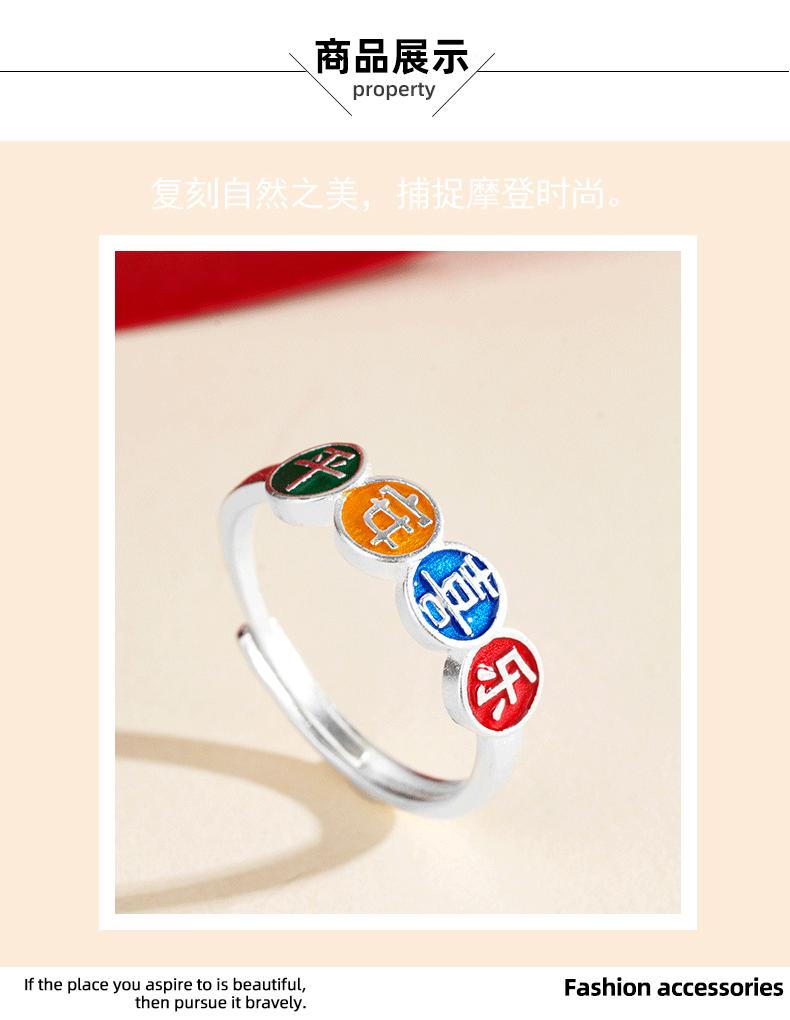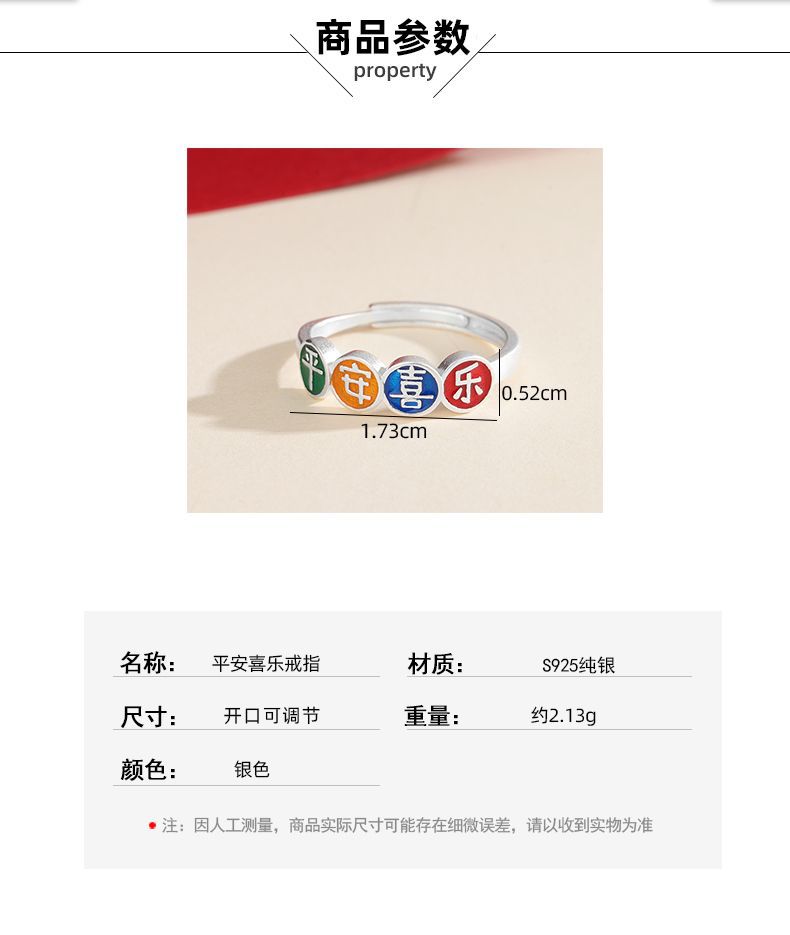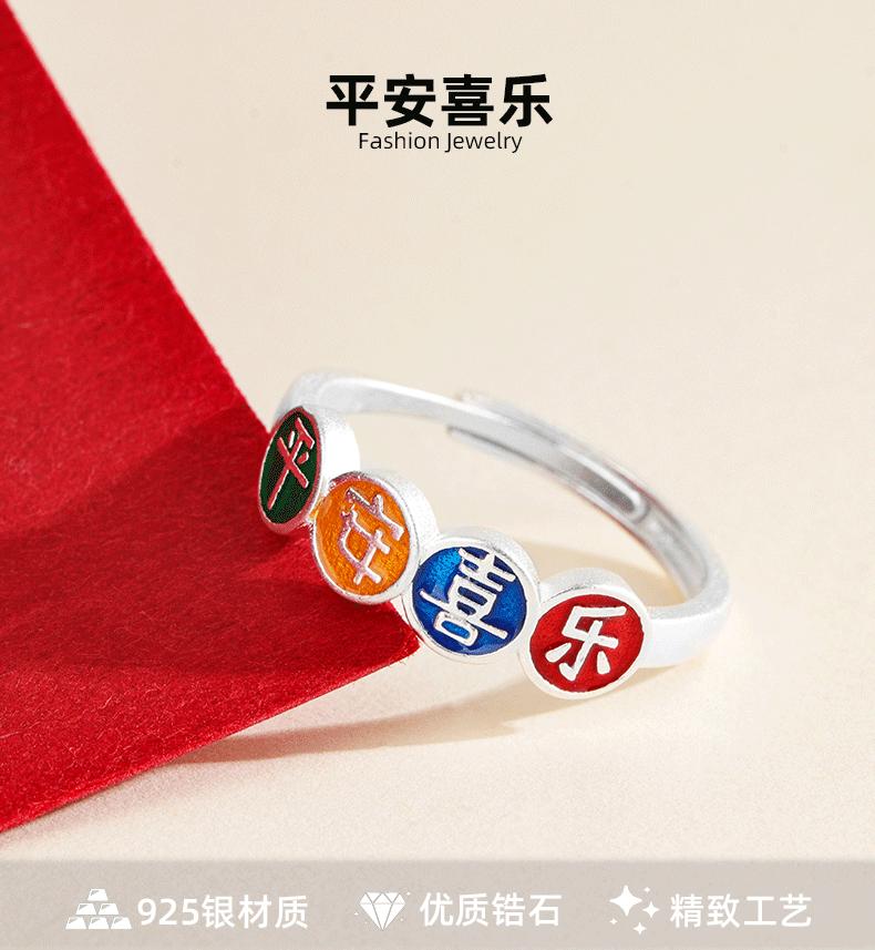 Anillo de plata esterlina s925 para mujer, estilo nacional, con diseño de paz y alegría, abierto, estilo antiguo, estilo patrimonial, joyería de diseño de nicho.