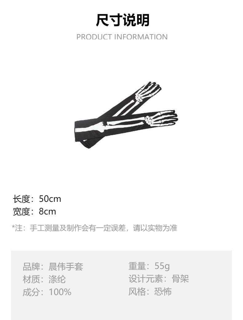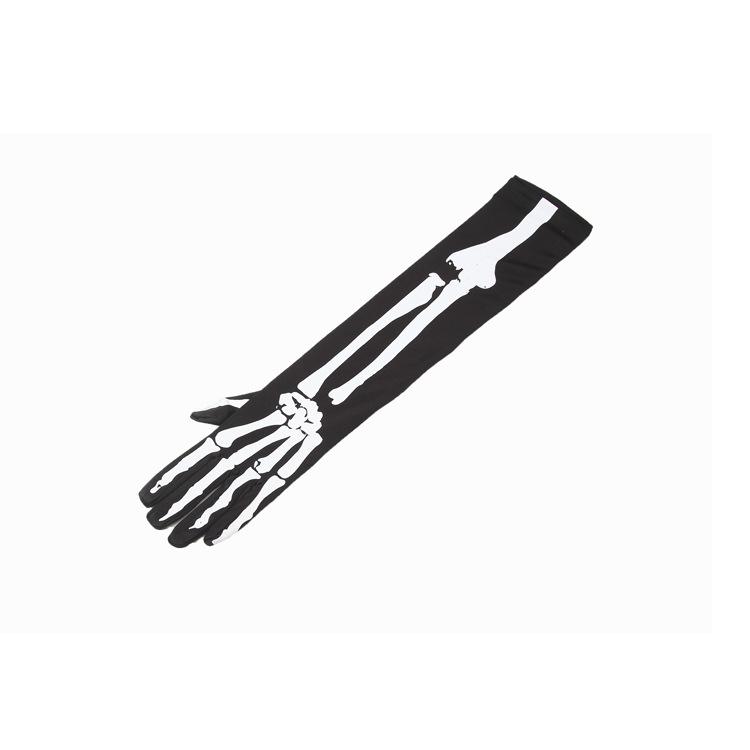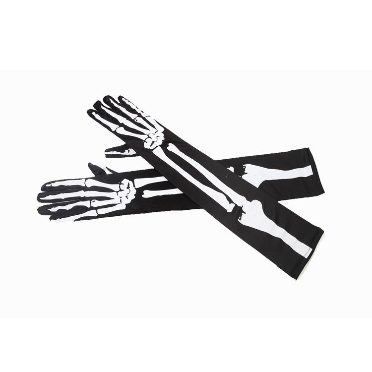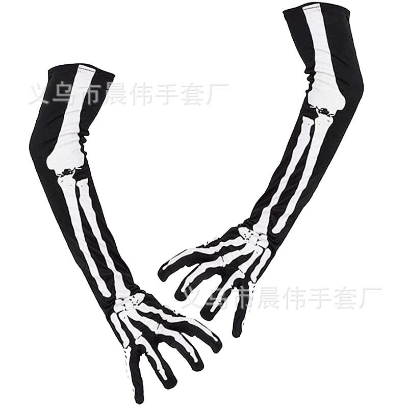 Guantes de Halloween de esqueleto de fábrica, de poliéster, de 50 cm de manga larga, decorativos y con efecto truco.