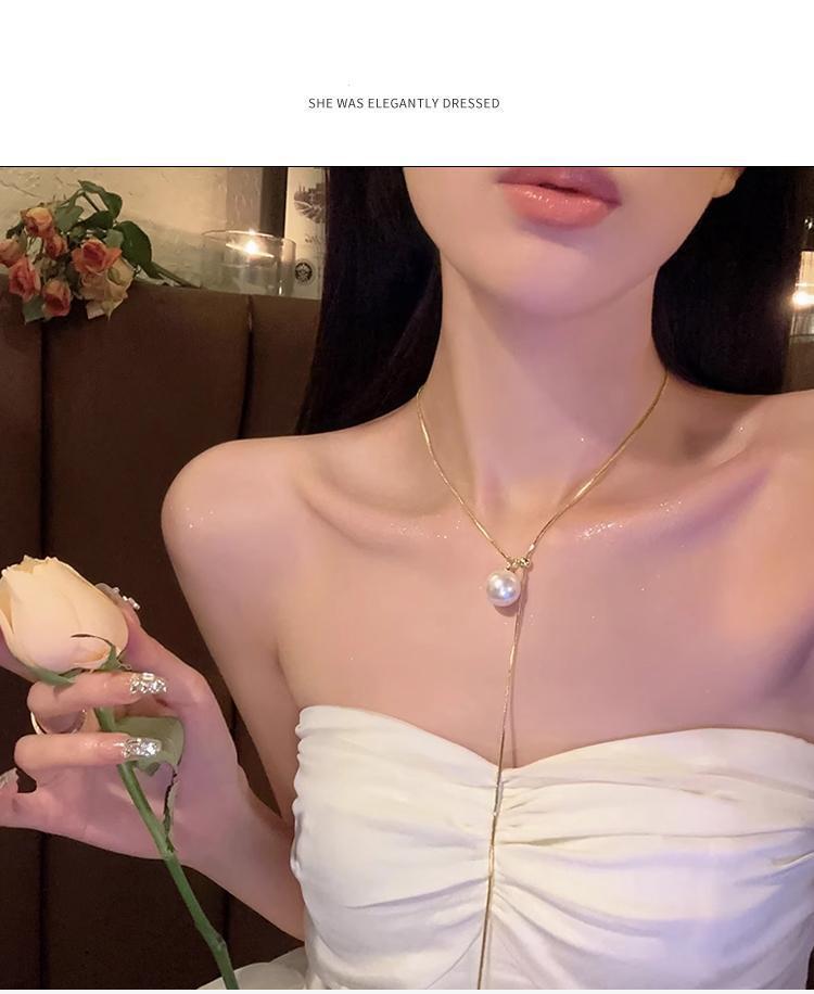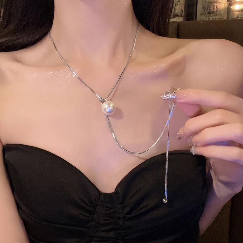 Collar largo de perlas dibujables, ligero, de lujo, de nicho, 2023, nuevo diseño de principios de otoño, sentido avanzado, collar de cadena de clavícula de moda