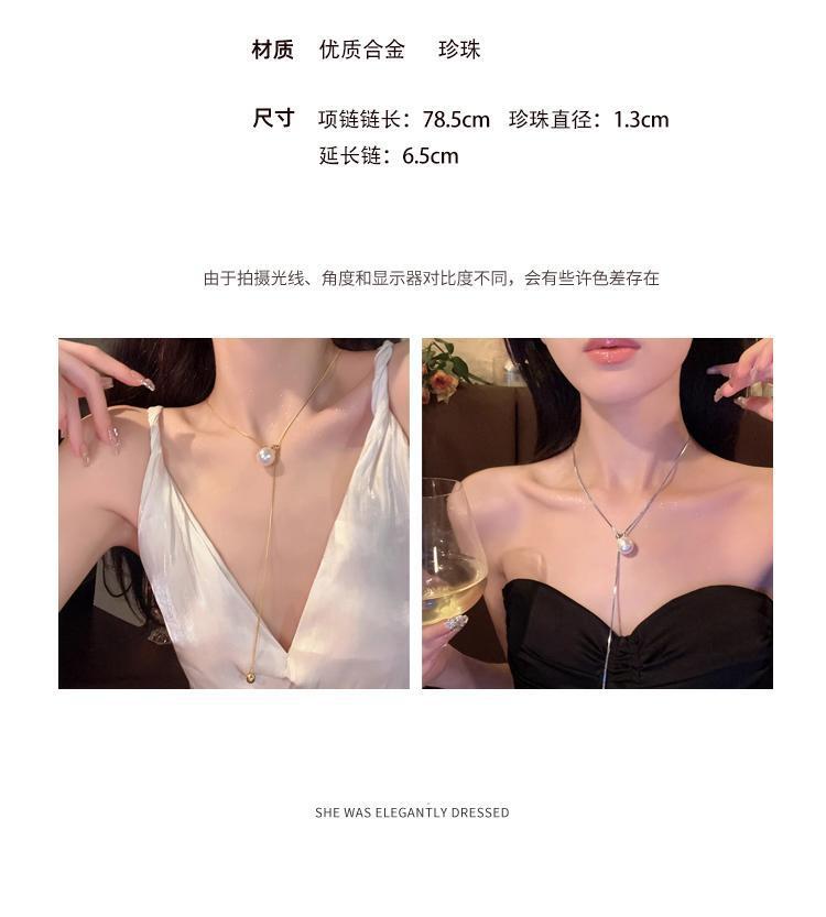 Silver drawable Pearl long necklace