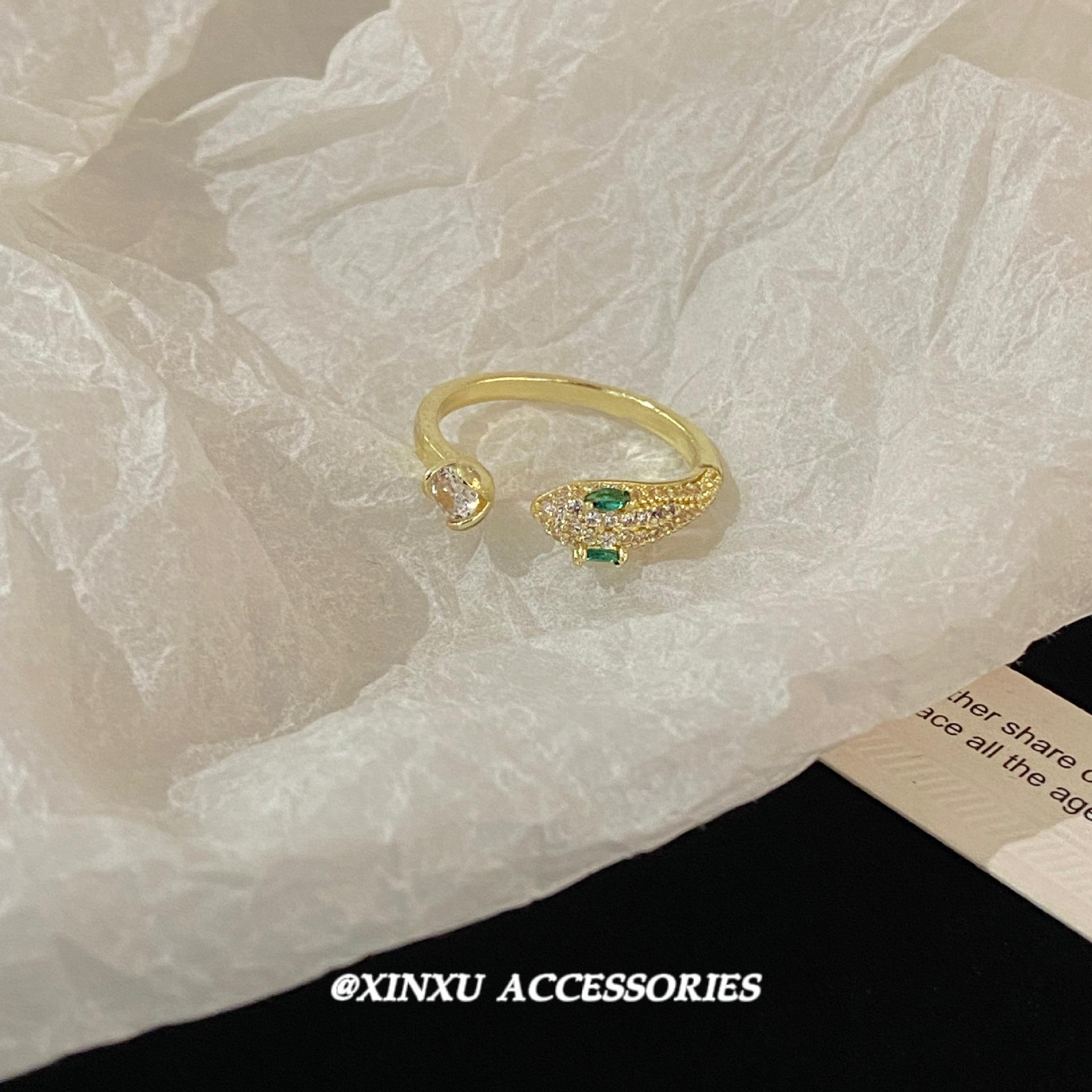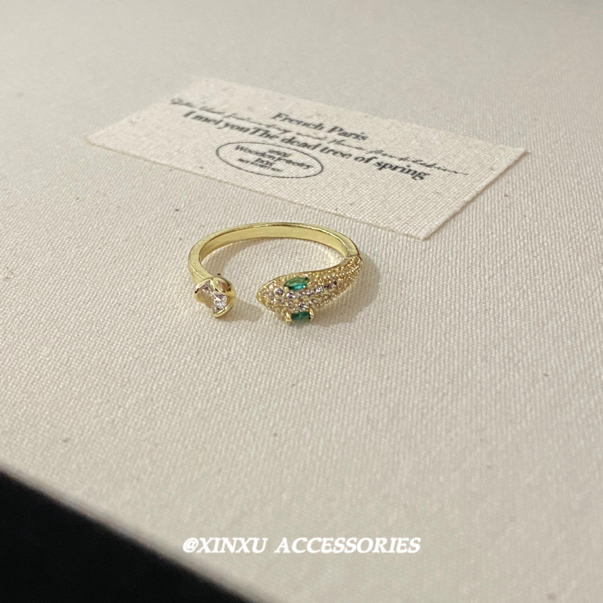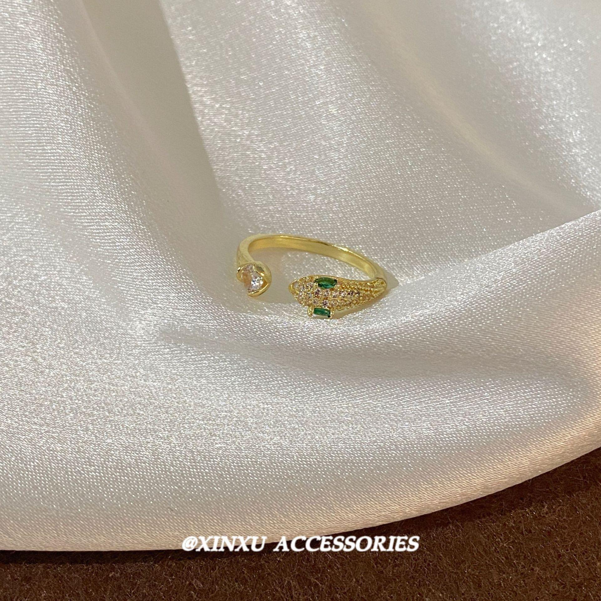 Anillo abierto de serpiente pequeña con circonitas micro incrustadas, personalidad simple de nicho, alto sentido, anillo de serpiente ajustable, temperamento versátil
