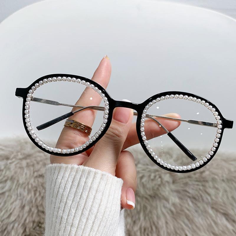 Gafas de sol de moda con incrustaciones de diamantes brillantes, gafas de montura redonda de diamante grande para hombres y mujeres, gafas de sol de moda para actuación, hip hop